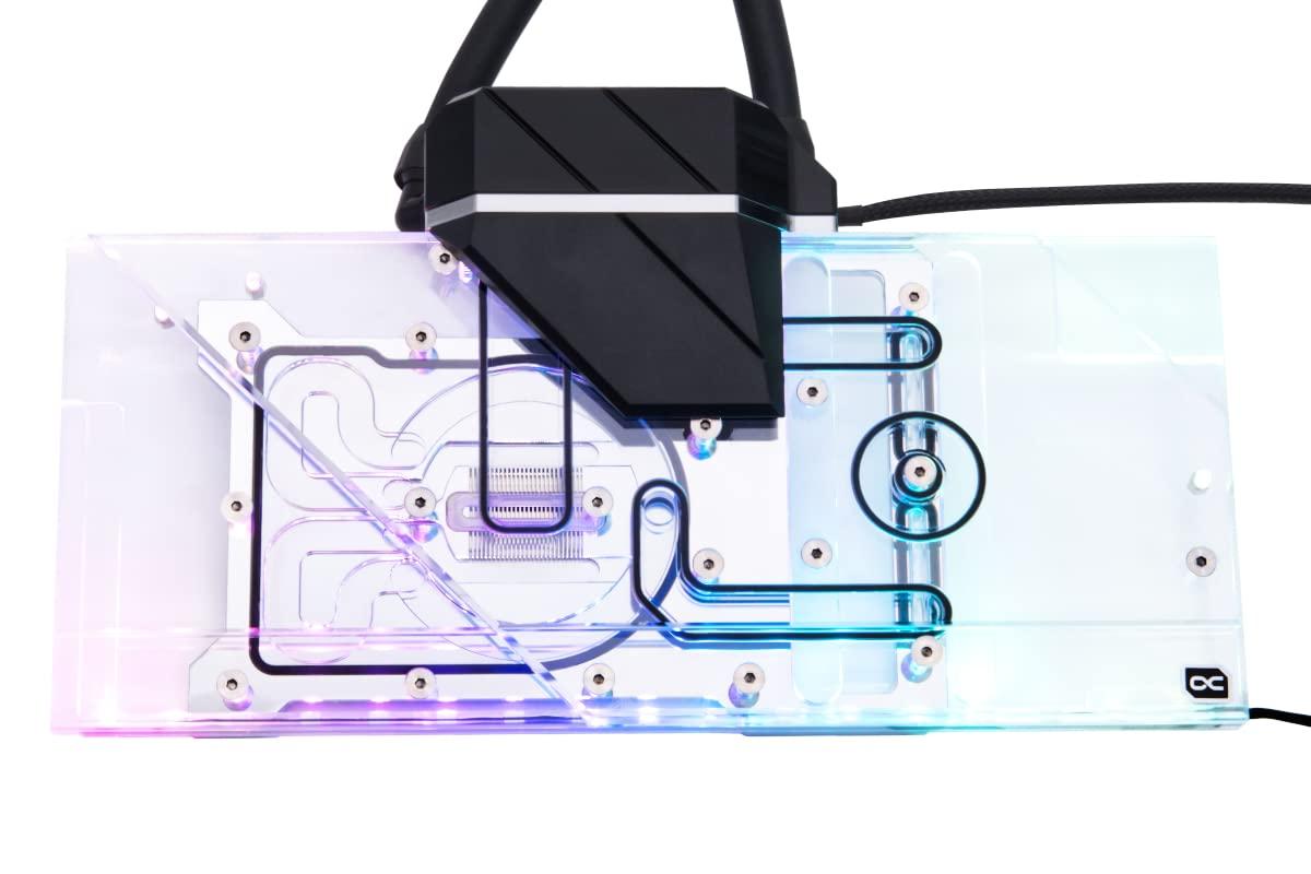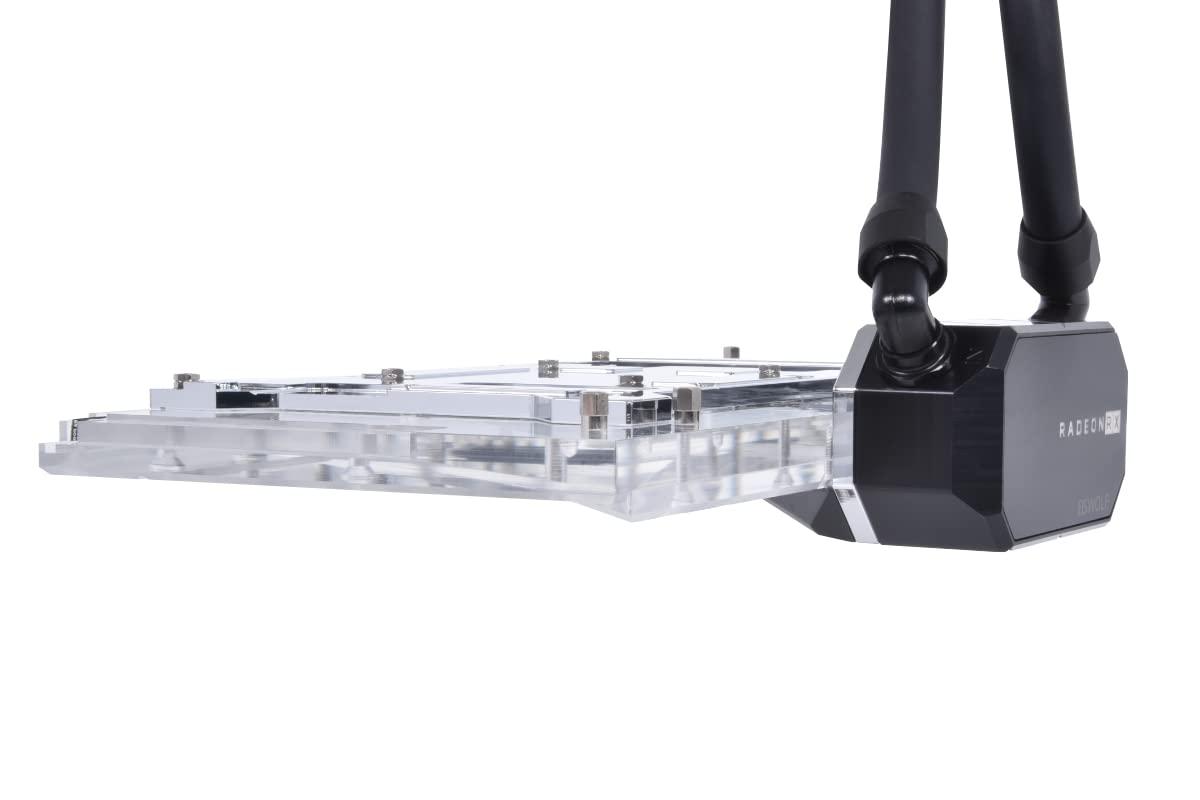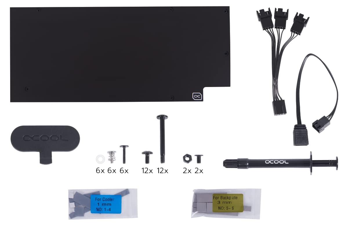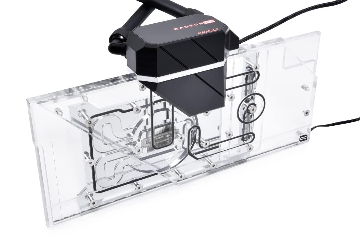 - Refrigeratore Full Cover Il refrigeratore d'acqua AIO della scheda video Eiswolf 2 raffredda non solo la GPU con acqua, ma tutti i componenti rilevanti che richiedono un raffreddamento attivo. Ciò include la memoria grafica, i convertitori di tensione e se ci sono altri componenti che richiedono un raffreddamento diretto.