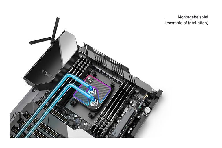 - ✅ Dati tecnici: compatibilità: AMD: AM4/AM5 Intel: LGA 1700/LGA 1851. Dati tecnici: dimensioni (L x P x A) 72 x 72 x 26,50 mm. Materiale radiatore: rame nichelato, materiale alloggiamento: ottone, materiale carbonio, connettori in ottone nichelato, 2 connettori di alimentazione G1/4" digitale aRGB a 3 pin 5 V, numero digitale aRGB LED 18 Fine. Spessore 0,4 mm, distanza delle pinne 0,4 mm, test di pressione 0,8 bar, temperatura massima di lavoro 60 °C, peso 500 g, colore nero, carbonio