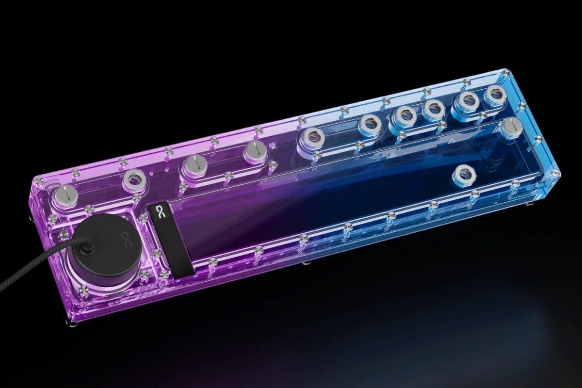La piastra Alphacool Core Distro con pompa integrata è un must assoluto per tutti i sistemi di raffreddamento ad acqua personalizzati! Con il suo design centrale, non è solo un vero e proprio colpo d'occhio, ma anche un capolavoro funzionale che semplifica la costruzione e la pianificazione di complessi anelli d'acqua e offre un'installazione semplice. La piastra Distro è realizzata in acrilico di alta qualità e dotata di connessioni in ottone cromato G1/4'. Questi sono stati incassati e volutamente non avvitati per ridurre al minimo il rischio di crepe e perdite aumentando la stabilità. I collegamenti sono costituiti da due parti, hanno un O-ring e si contrappongono quando montati in acrilico. Ciò non solo garantisce l'assoluta tenuta di ogni connettore, ma consente anche l'aspetto pulito e funzionale della serie Core Design di Alphacool. La disposizione delle connessioni è progettata non solo per ottimizzare il routing dei tubi, ma anche per fornire un aspetto attraente. Questo è completato dalla sua illuminazione aRGB integrata, che fornisce effetti visivi impressionanti. L'illuminazione può essere controllata tramite un header aRGB digitale sulla scheda madre o opzionalmente tramite il controller Alphacool Aurora Eiscontrol aRGB (articolo n. : 15360). Il kit di montaggio Alphacool Core Push è incluso nella fornitura, il che semplifica notevolmente l'installazione della piastra di distribuzione. I perni metallici sono fissati a un radiatore o al pannello del case del PC e le maniche femmina corrispondenti sono attaccate alla piastra di distribuzione in modo da doverle solo spingere sui perni. Questo sistema garantisce un montaggio sicuro della piastra di distribuzione e consente un facile smontaggio per manutenzione o estensioni. Una descrizione dettagliata si trova nelle istruzioni allegate. Dati tecniciDimensioni (L x P x A)480,00 x 125,00 x 42,00 mmDimensioni (L x P x A) con pompa480,00 x 125,00 x 61,00 mmDimensioni (L x P x A) con montaggio a spinta480,00 x 122,00 mm 5,00 x 72,80 mmDimensioni (L x P x A) con pompa + montaggio a spinta480,00 x 125,00 x 8