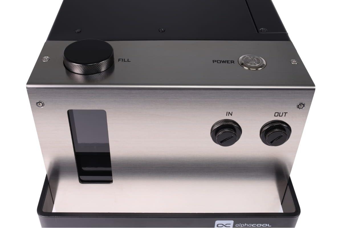 - La stazione di riempimento Alphacool ES è facile da riempire utilizzando il tappo di riempimento G1 leggermente rialzato