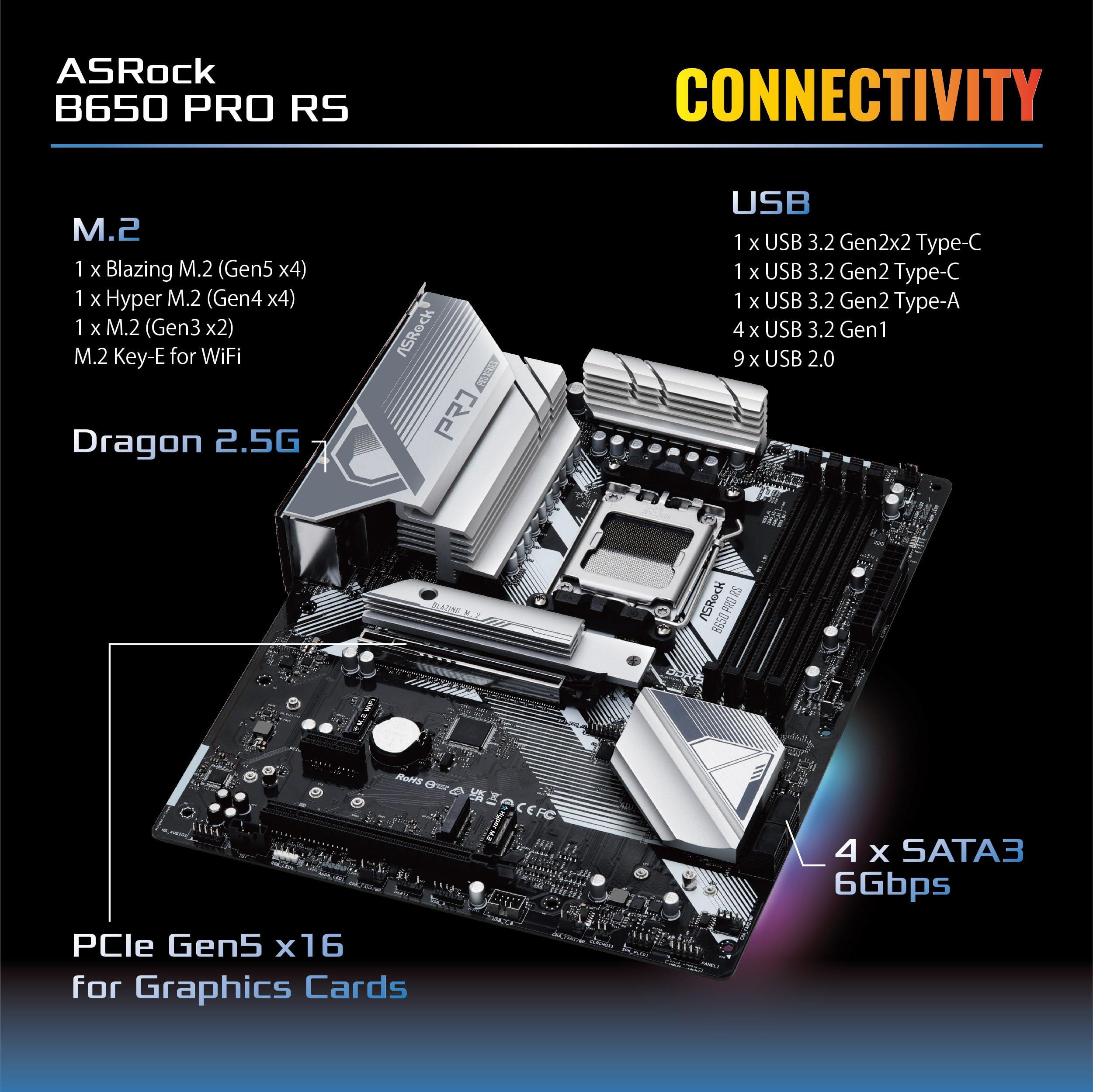 - Asrock B650 Pro RS AMD B650 Socket AM5 ATX