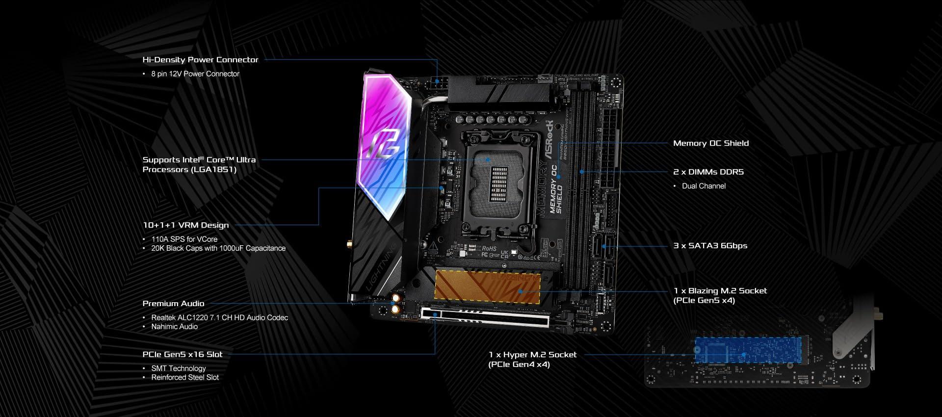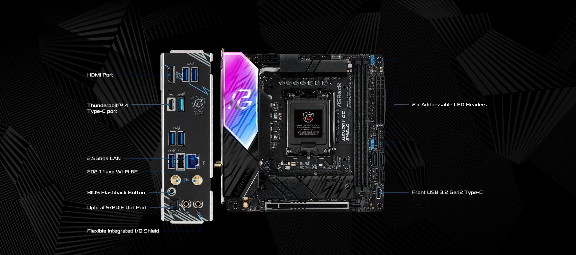 ASRock B860I Lightning WiFi 1851 mITX HDMI DDR5 - DDR5 - HDMI (90-MXBRZ-A0UAYZ)