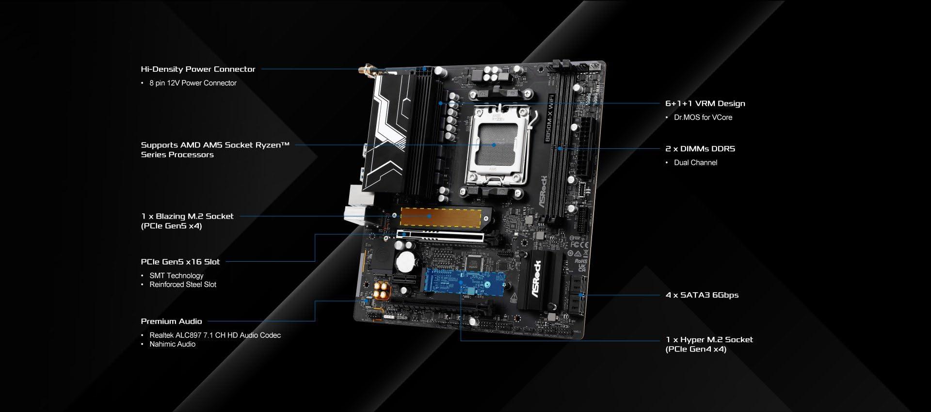 ASRock Placa Base B850M-X WiFi B850 AM5 Micro ATX WiFi R2.0 PCIe 4.0