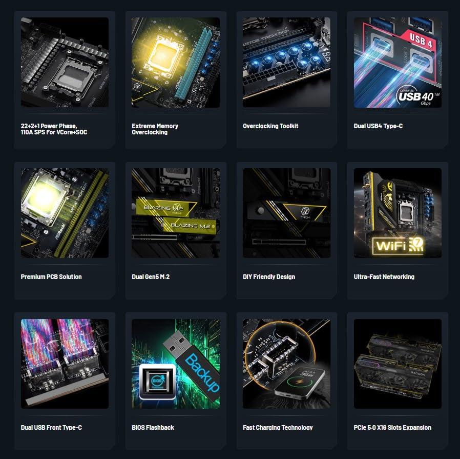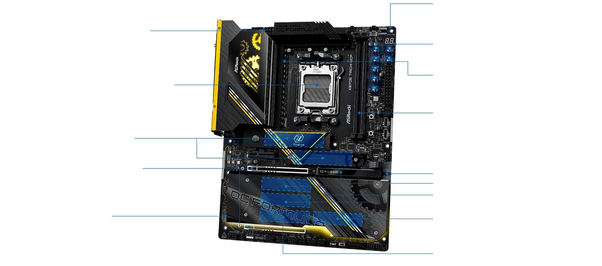 - Piattaforma di overclock AMD AM5 di punta: progettata per prestazioni estreme, supportando processori AMD Ryzen serie 9000, 8000 e 7000 sul chipset X870E premium.