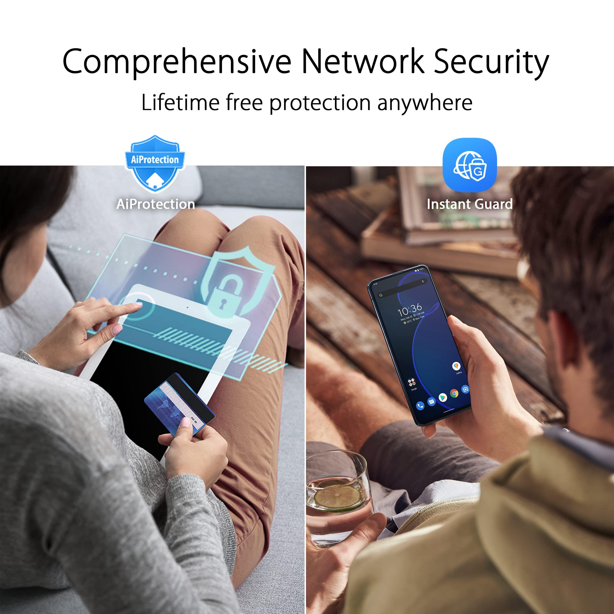 - Sicurezza Internet gratuita con AiProtection e ASUS Instant Guard, che proteggono la tua linea WiFi e i tuoi dispositivi ovunque tu sia