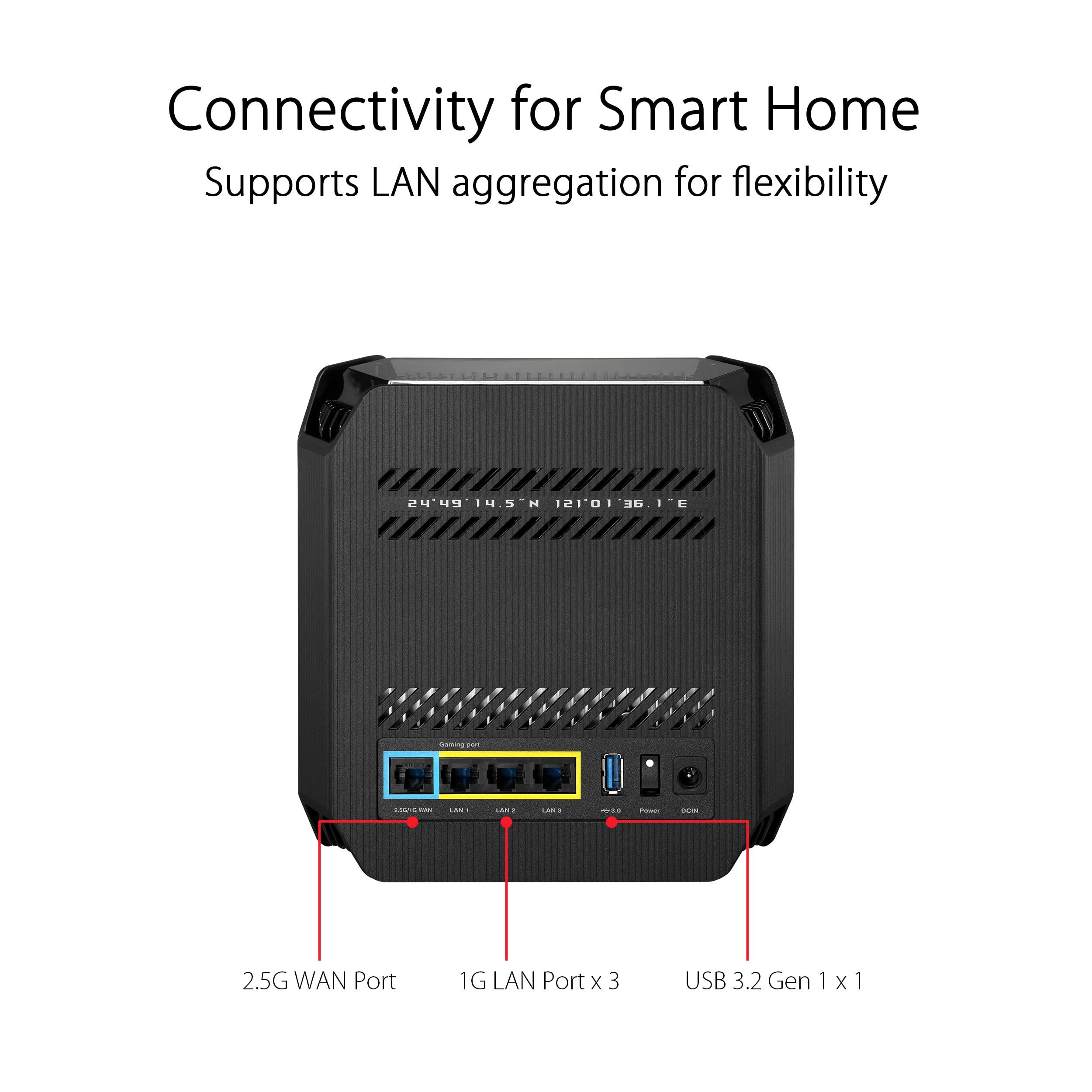 Asus - ASUS ROG Rapture GT6 Noir - Routeur sans fil Wi-Fi AX Tri Band 10000 Mbps (2x AX4804 + AX574) MU-MIMO 4x4:2x2 Mesh avec 3 ports LAN 10/100/1000 Mbps + 1 port WAN 2.5 GbE