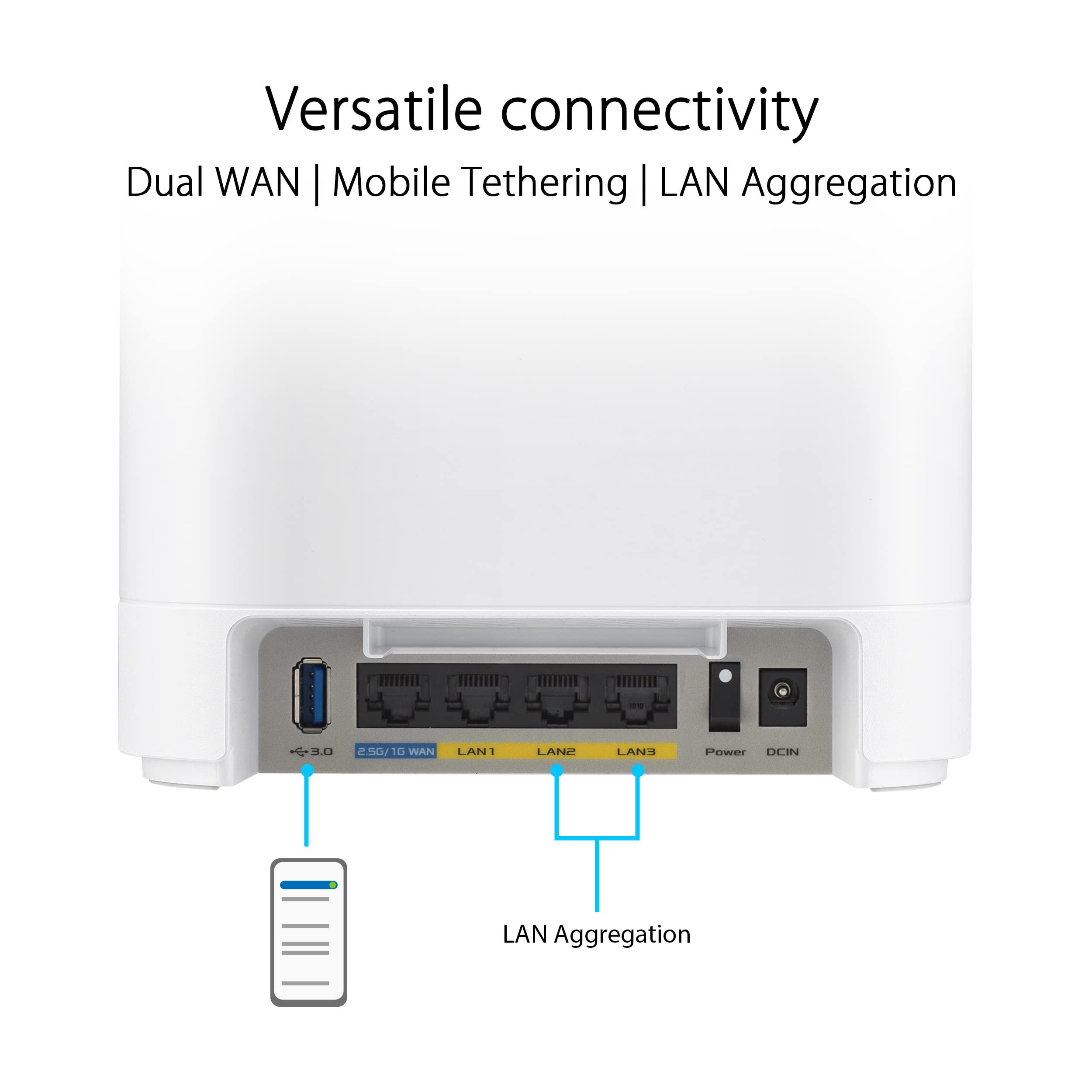 ASUS ExpertWiFi EBM68 Sistema Tri-Band WIFI 6 Mesh, Business, supporta fino a 5 SSIDs, Guest Portal, 2.5 Gbps, Sicurezza Network Enterprise, ExpertWiFi app, Bianco, confezione da 1 pezzo