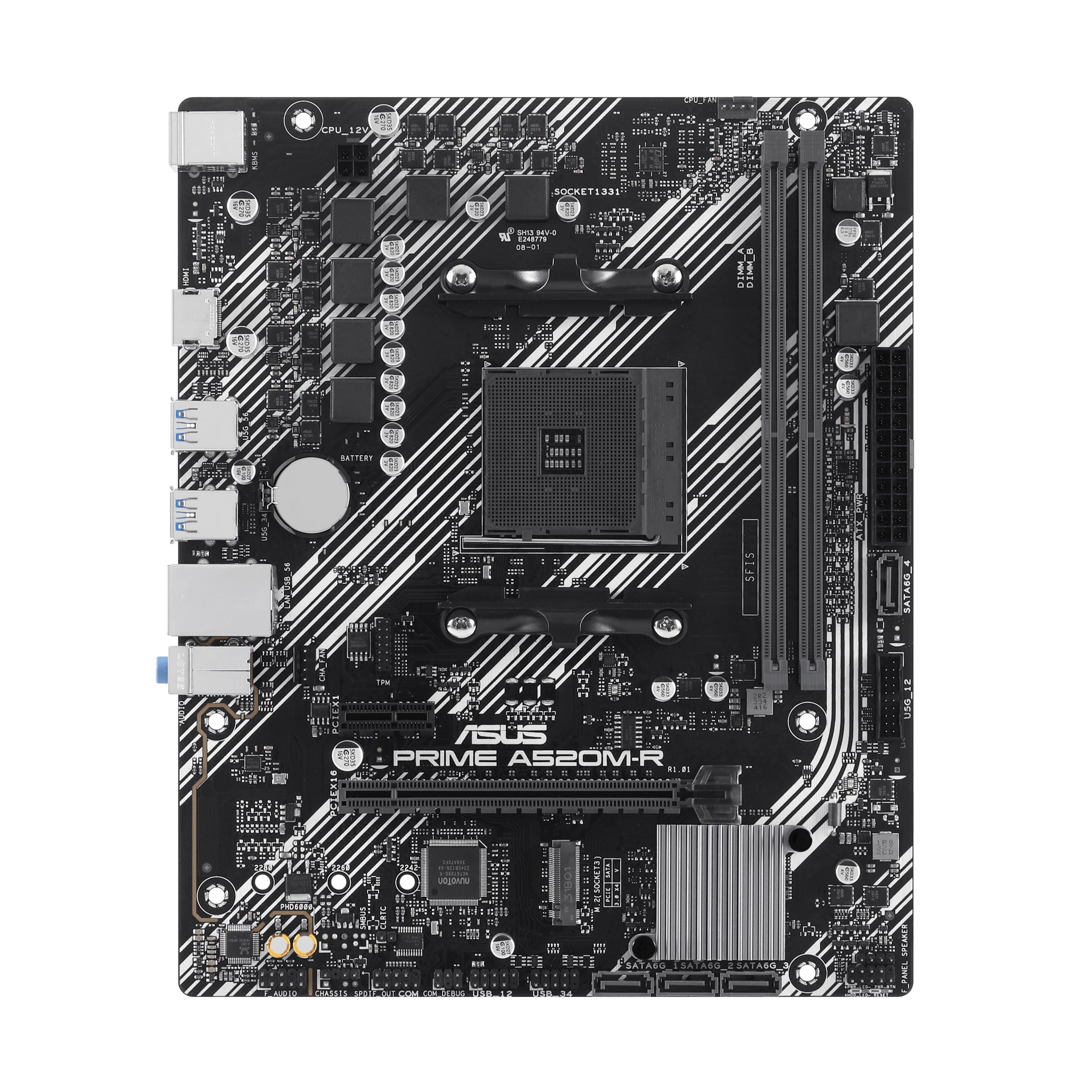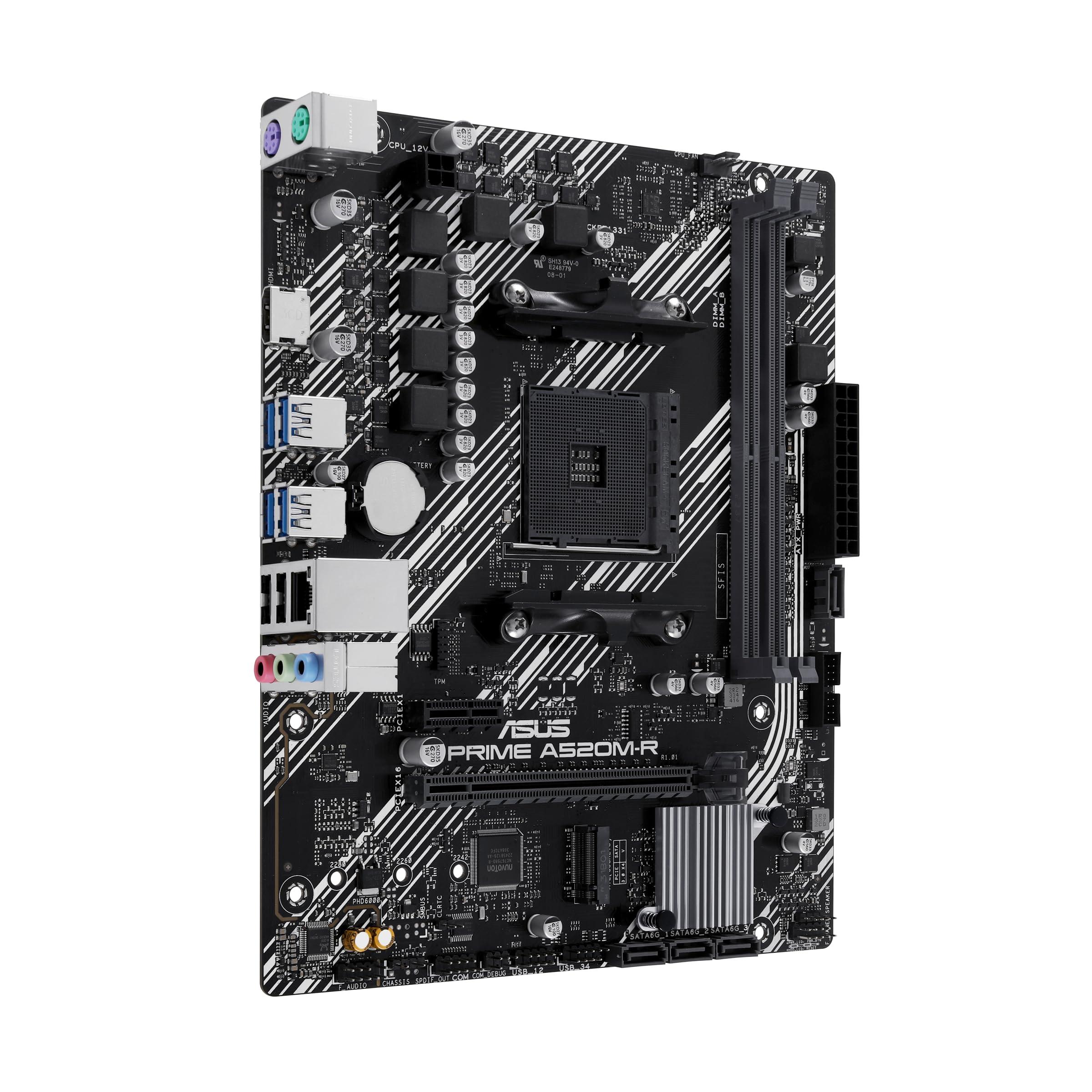 ASUS Prime A520M-R Scheda madre AMD Ryzen AM4 mATX con supporto M.2, Realtek 1Gb Ethernet, HDMI, SATA 6 Gbps, supporto USB 5Gbps posteriore e anteriore, Nero