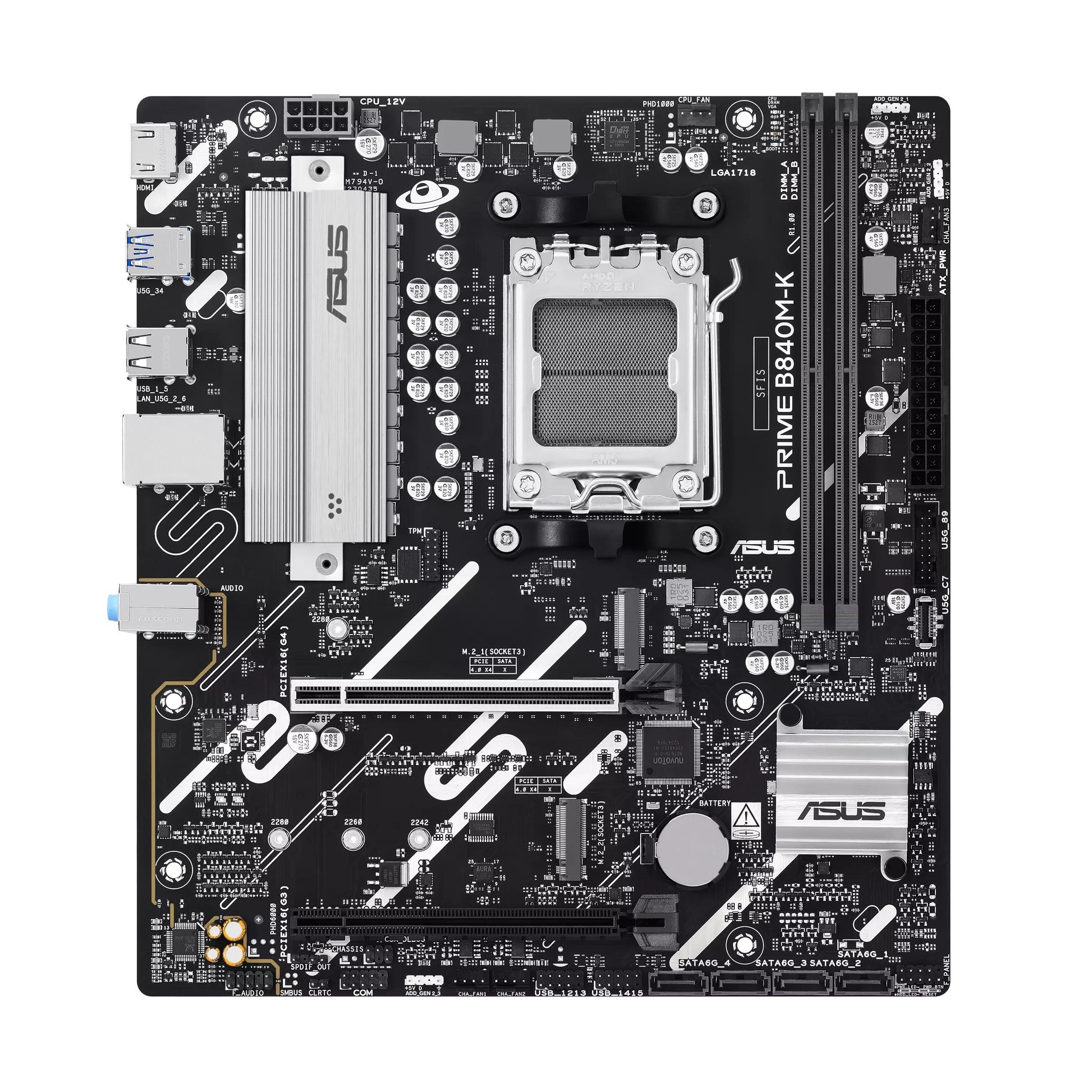 ASUS PRIME B840M-K, Scheda Madre AMD micro-ATX, 8+2+1 Stadi di Alimetazione, Slot DDR5, PCIe 4.0 Ready, 2 slot M.2, Ethernet Realtek 2,5 GB, HDMI, USB-C Anteriore da 5 Gbps, Aura Sync