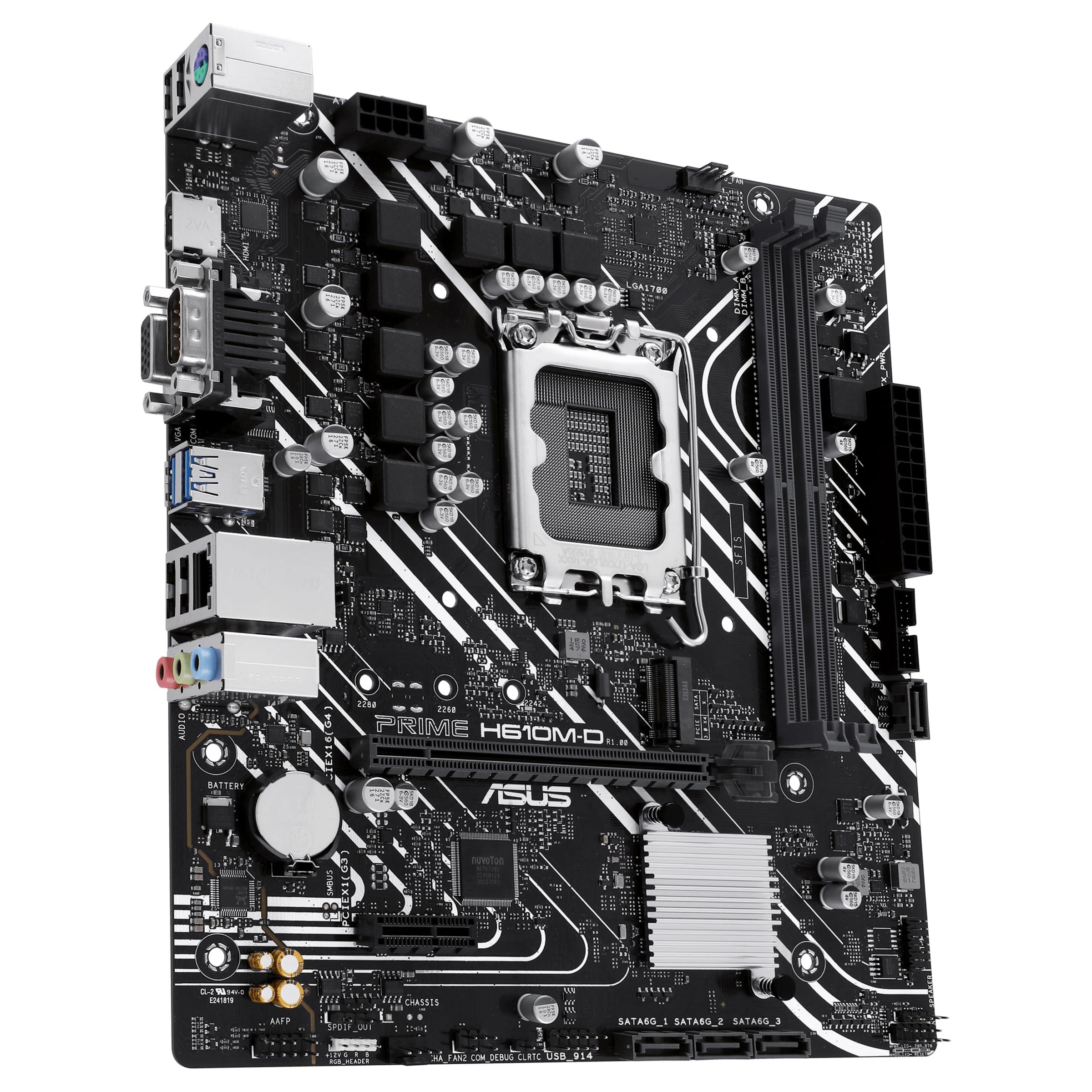 ASUS PRIME H610M-D Scheda Madre mATX Intel H610 (LGA 1700), DDR5, PCIe 4.0, slot M.2, Realtek 1 Gb Ethernet, HDMI, VGA, USB 3.2 Gen 1, SATA 6 Gbps, Header RGB
