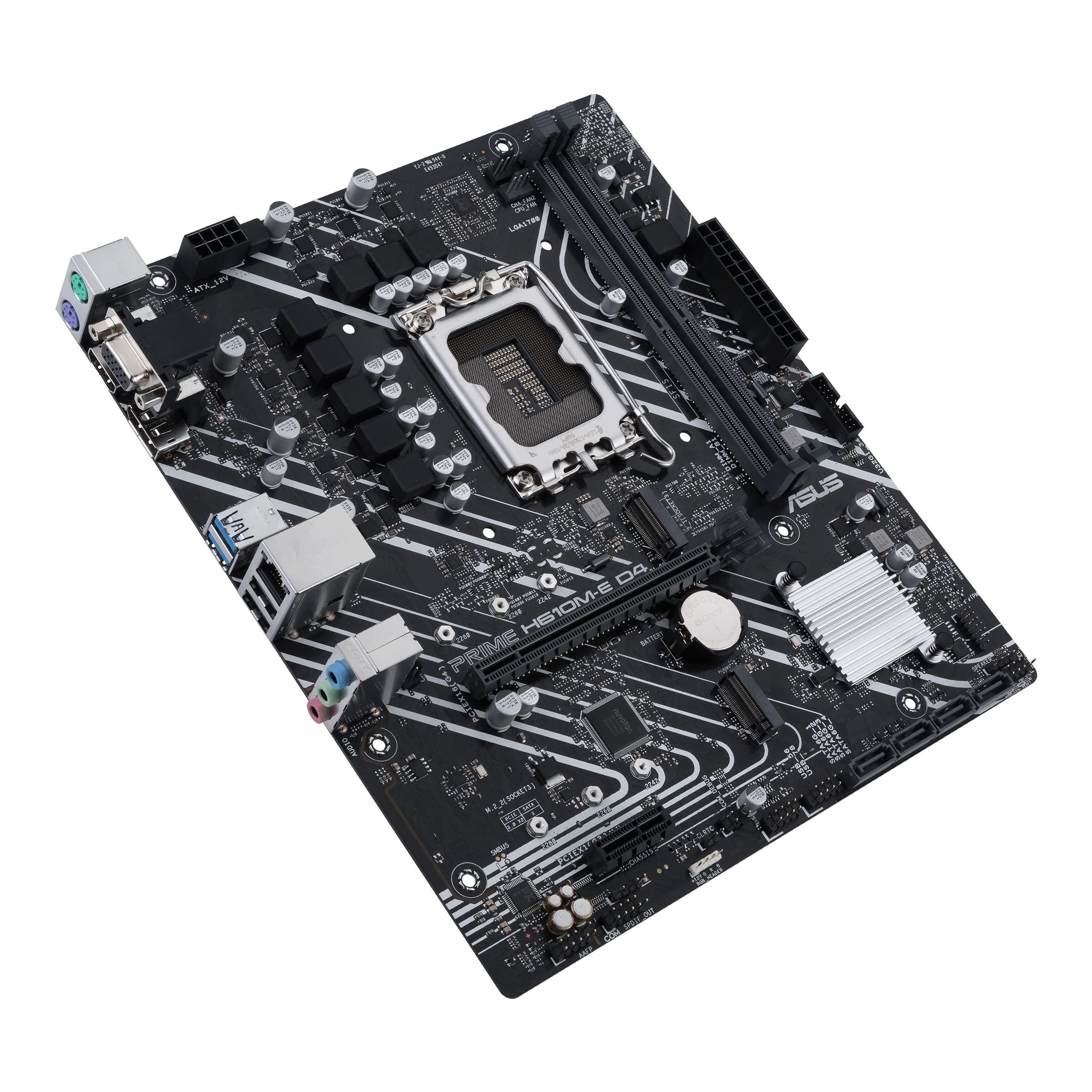 ASUS PRIME H610M-E D4-CSM Scheda Madre mATX, Intel H610, LGA1700, DDR4, PCI 4.0, Realtek 1Gb Ethernet, Realtek 7.1 Surround, 2xM.2, 4xSATA 6GB/s, USB 3.2 Gen 1, Armoury Crate, Nero