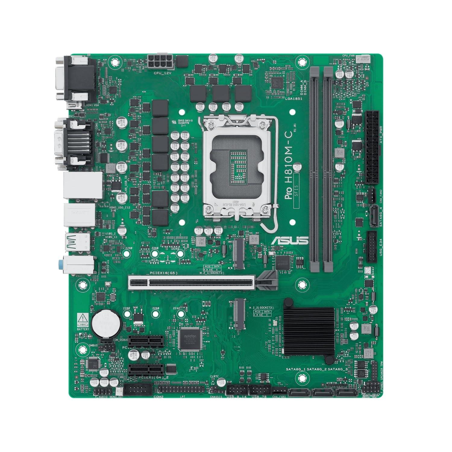 ASUS PRO H810M-C-CSM, Scheda Madre Intel, 6+1+1+1 Fasi di Alimentazione, Slot DDR5, PCIe 5.0, Adatta per PC AI-Advanced, 2 Slot M.2, DisplayPort, VGA, HDMI, USB-A e USB-C 10Gbps, Nera
