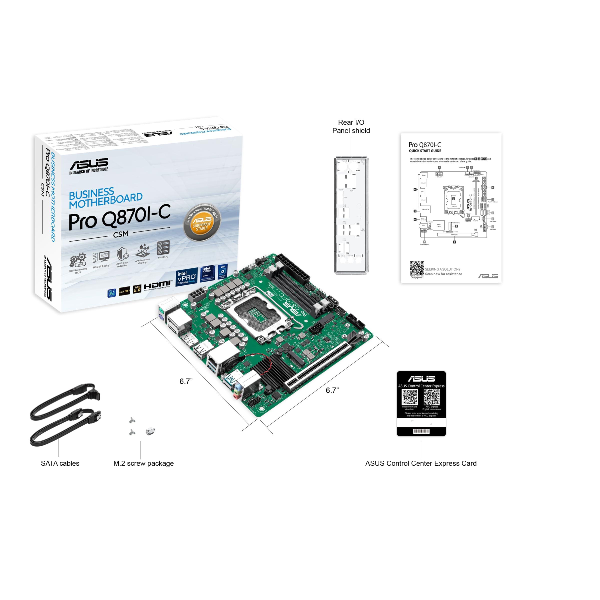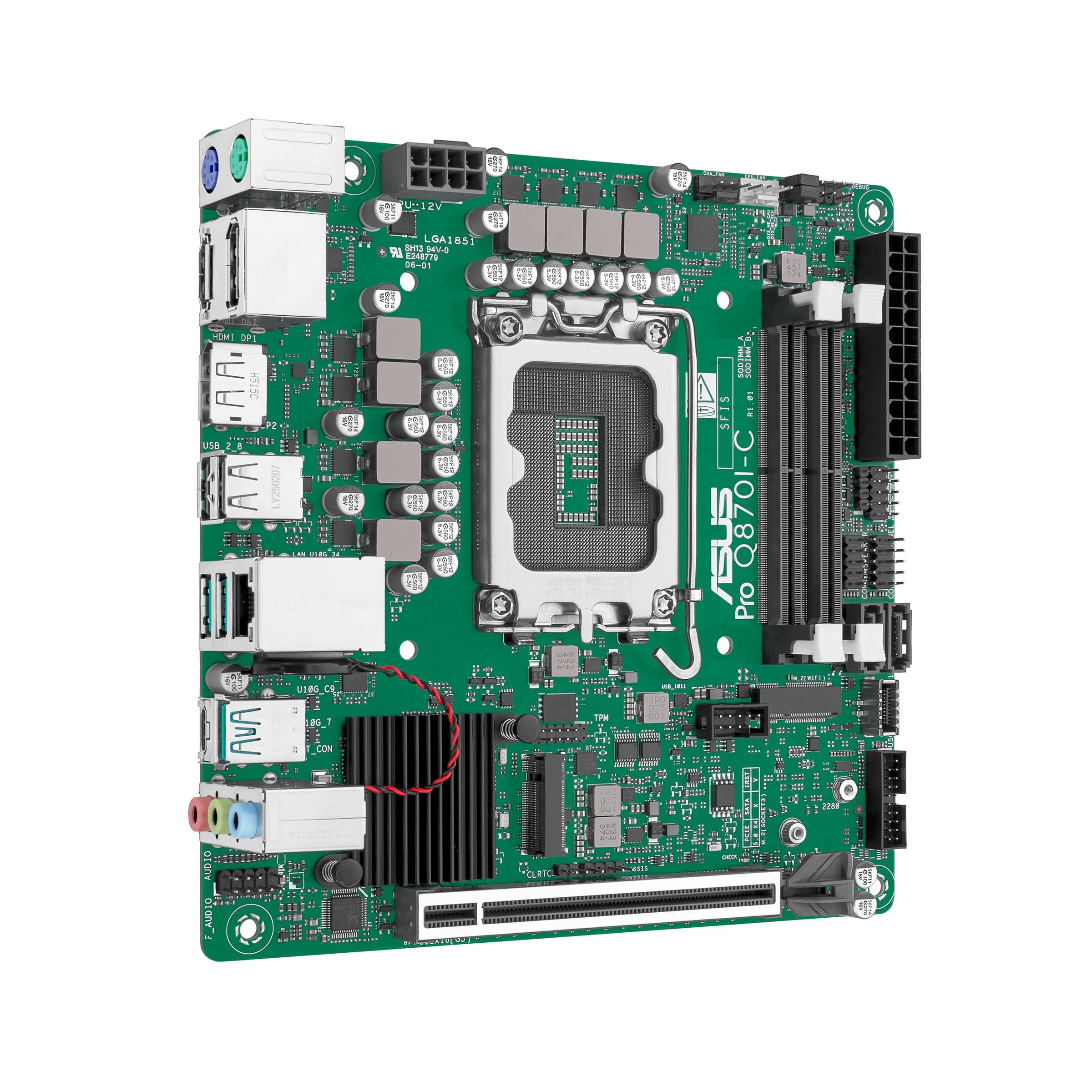 ASUS PRO Q870I-C-CSM Business - Scheda madre mini ITX, Intel LGA 1851 (mini-ITX, Intel VPro, memoria DDR5, PCIe 5.0, Q-LED Core, ASUS Control Center Express, SafeSlot)