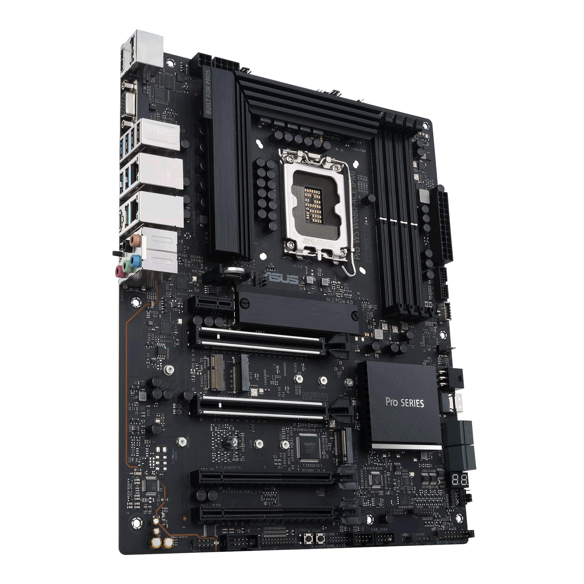 ASUS Pro WS W680-ACE IPMI - Motherboard - ATX - LGA1700-Sockel - W680 Chipsatz - USB-C 3,2 Gen2, USB 3,2 Gen 1, USB-C 3,2 Gen 2x2, USB 3,2 Gen 2 - 2 x 2,5 Gigabit LAN - Onboard-Grafik (CPU erforderli