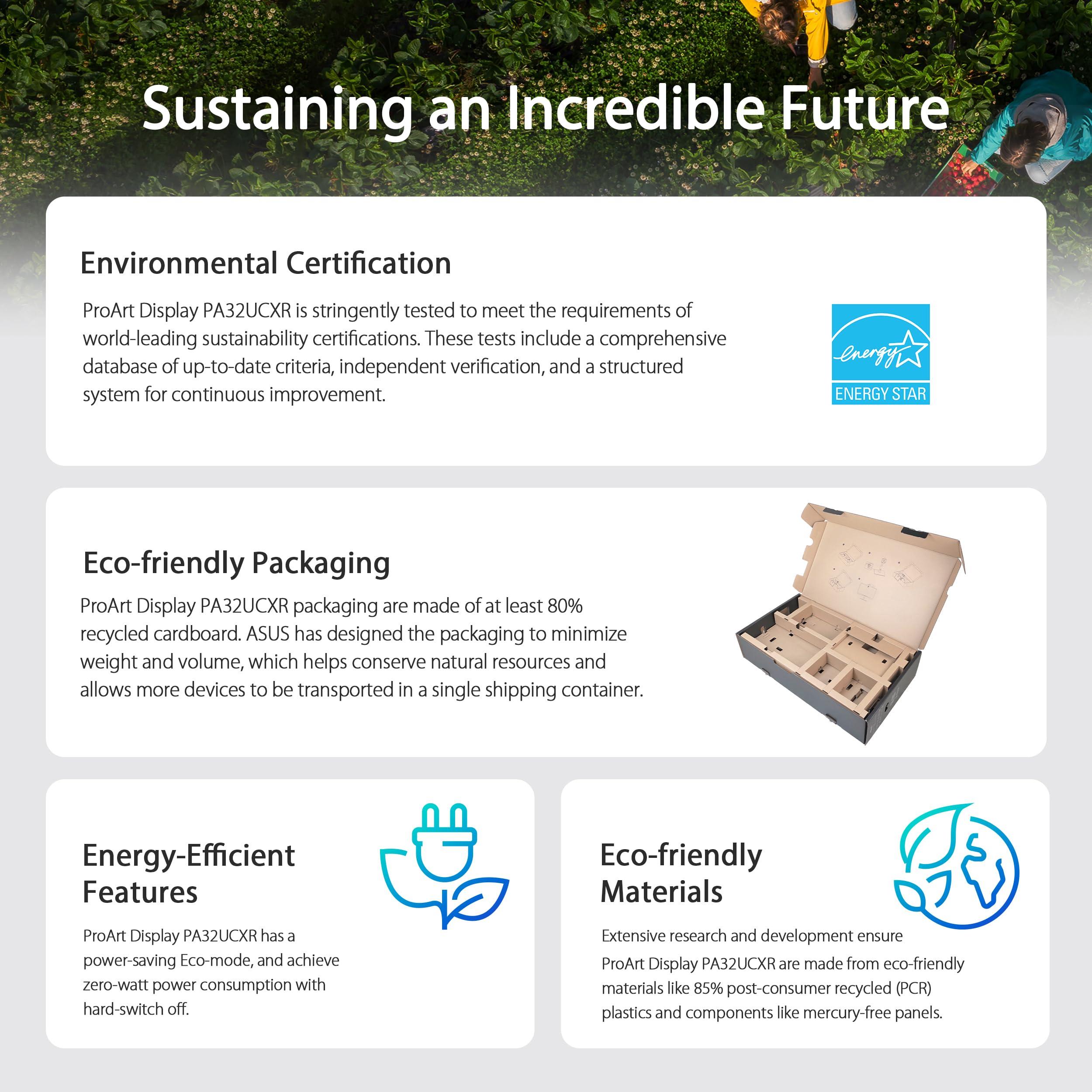 ASUS ProArt Display PA32UCXR Monitor Professionale da 32” pollici, 4K UHD (3840x2160) Mini LED, Calibrazione automatica, HDR-10, HLG, 99% Adobe RGB, 97% DCI-P3, ΔE<1, USB-C, Calman, ColourSpace, Nero