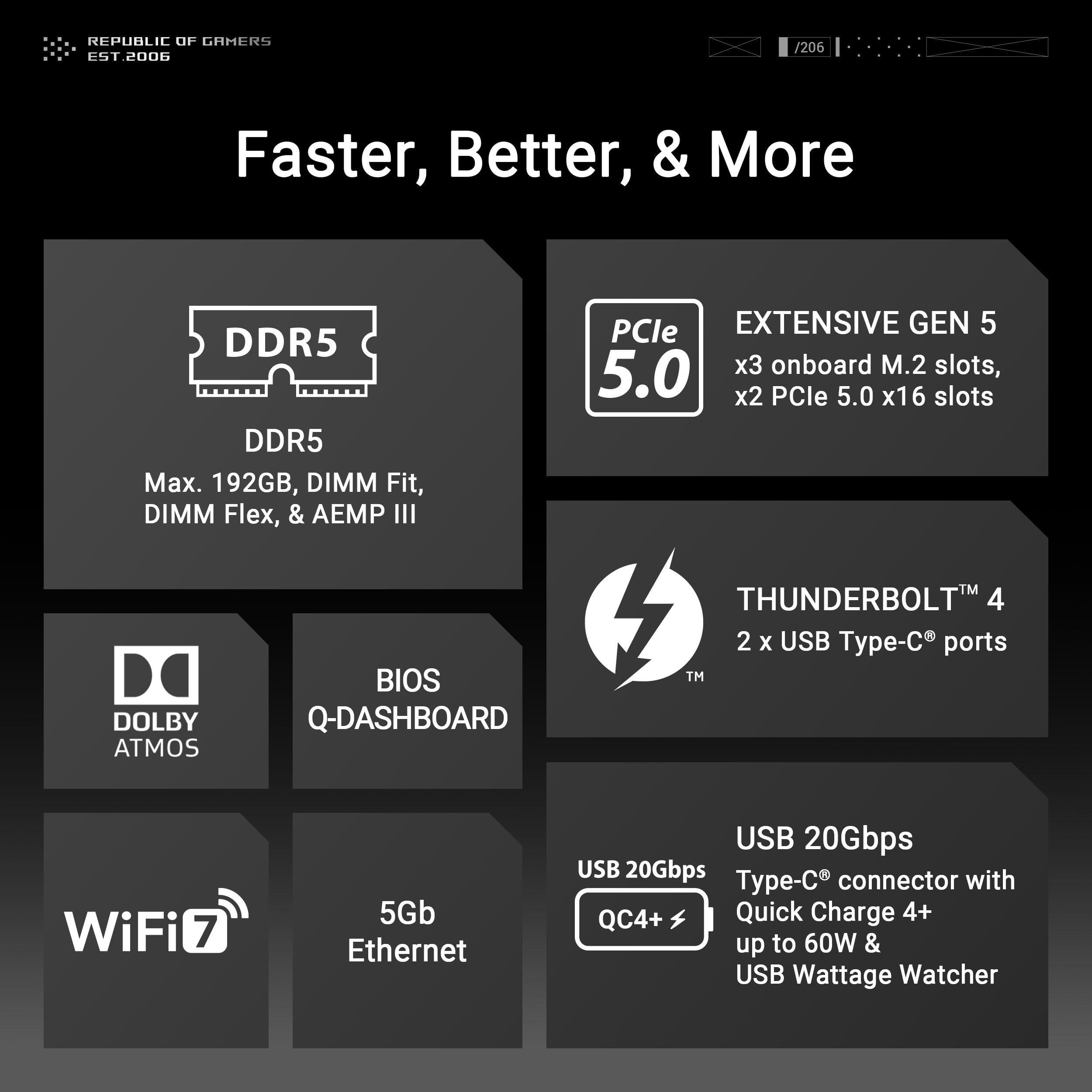 - Rete ad alte prestazioni: Wi-Fi 7 (802.11be) on-board con ASUS WiFi Q-Antenna e Realtek 5 Gb Ethernet