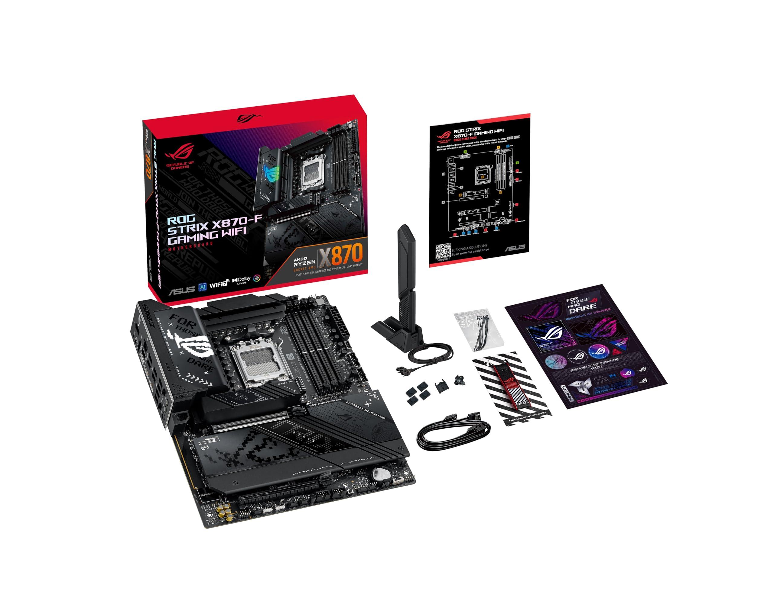 ASUS ROG Strix X870-F Gaming WiFi Scheda madre AMD, 16+2+2 stadi di alimentazione, slot DDR5, quattro slot M.2, PCIe 5.0, GPU di nuova generazione, WiFi 7, USB 10G con PD 3.0 fino a 30W e Aura Sync