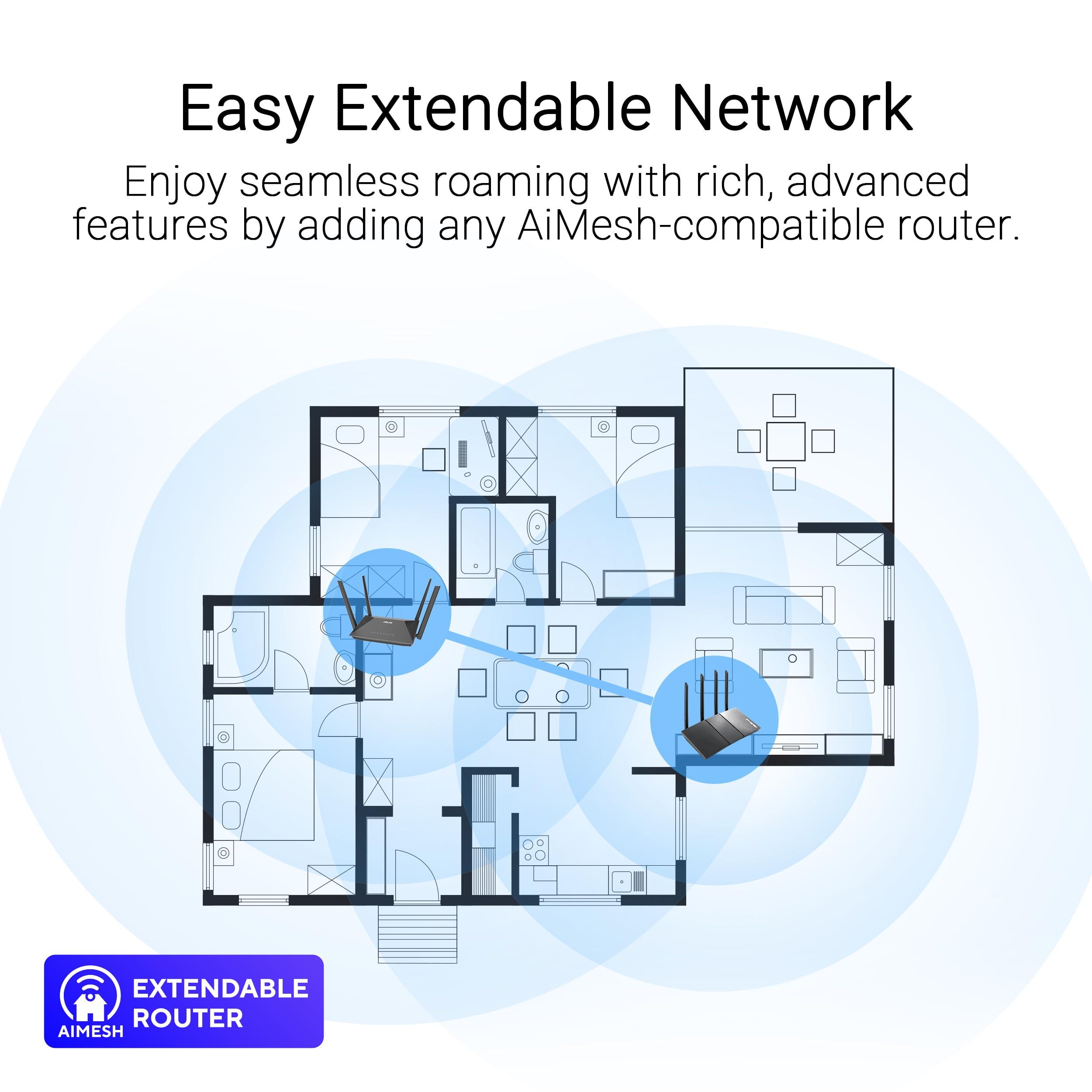 ASUS RT-AX52 Pro (AX3000), Router Estensibile Dual Band WiFi 6, Dotato di Instant Guard e dei Parental Control, VPN Integrata, Compatibile con AiMesh, Adatto per Gaming e Streaming, Smart Home, Nero