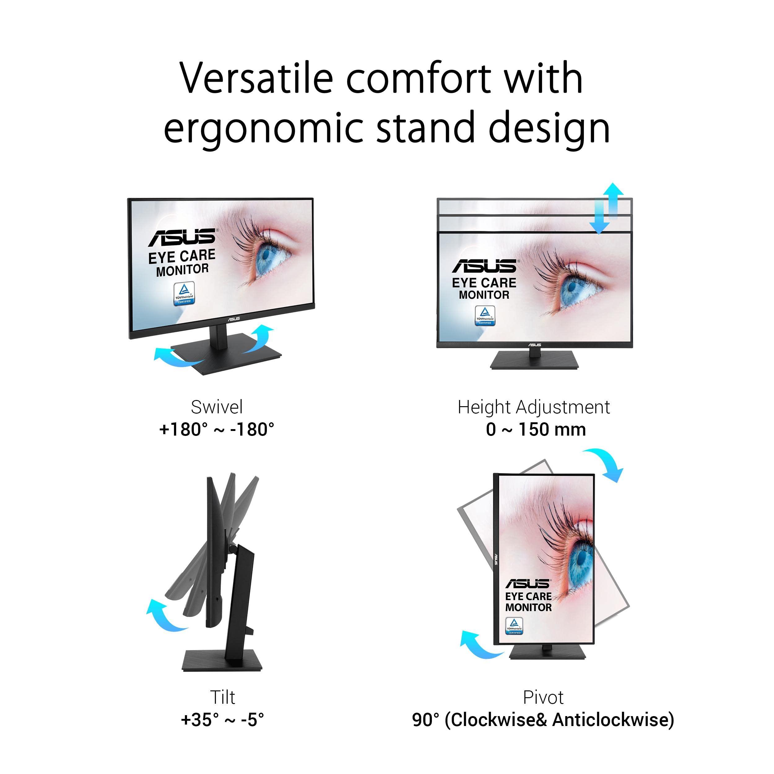 ASUS VA27AQSB Eye Care Monitor – 27", WQHD (2560 x 1440), IPS, Frameless, 75Hz, Adaptive-Sync, DisplayPort, HDMI, Eye Care, Low Blue Light, Flicker Free, Wall Mountable, Stand Ergonomico