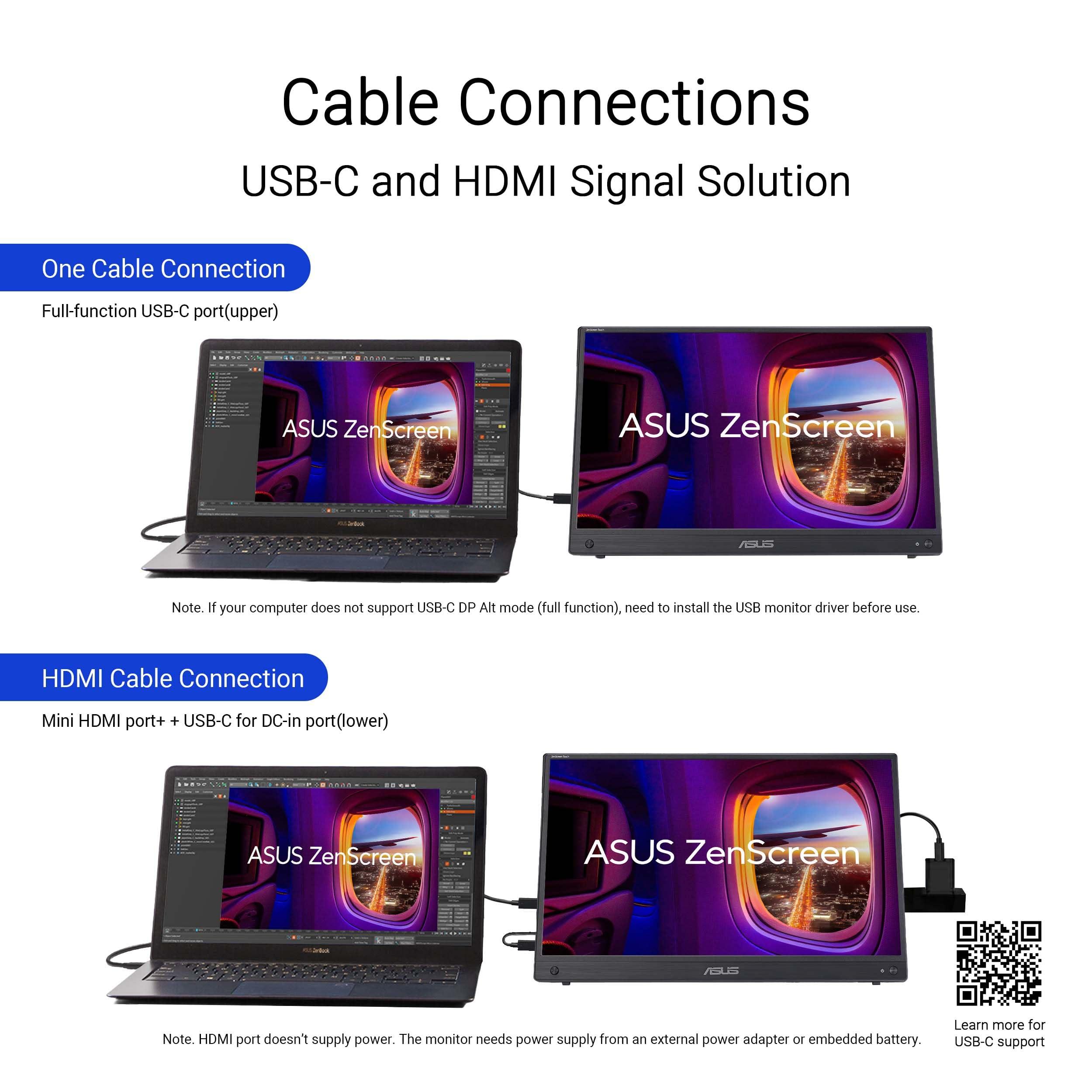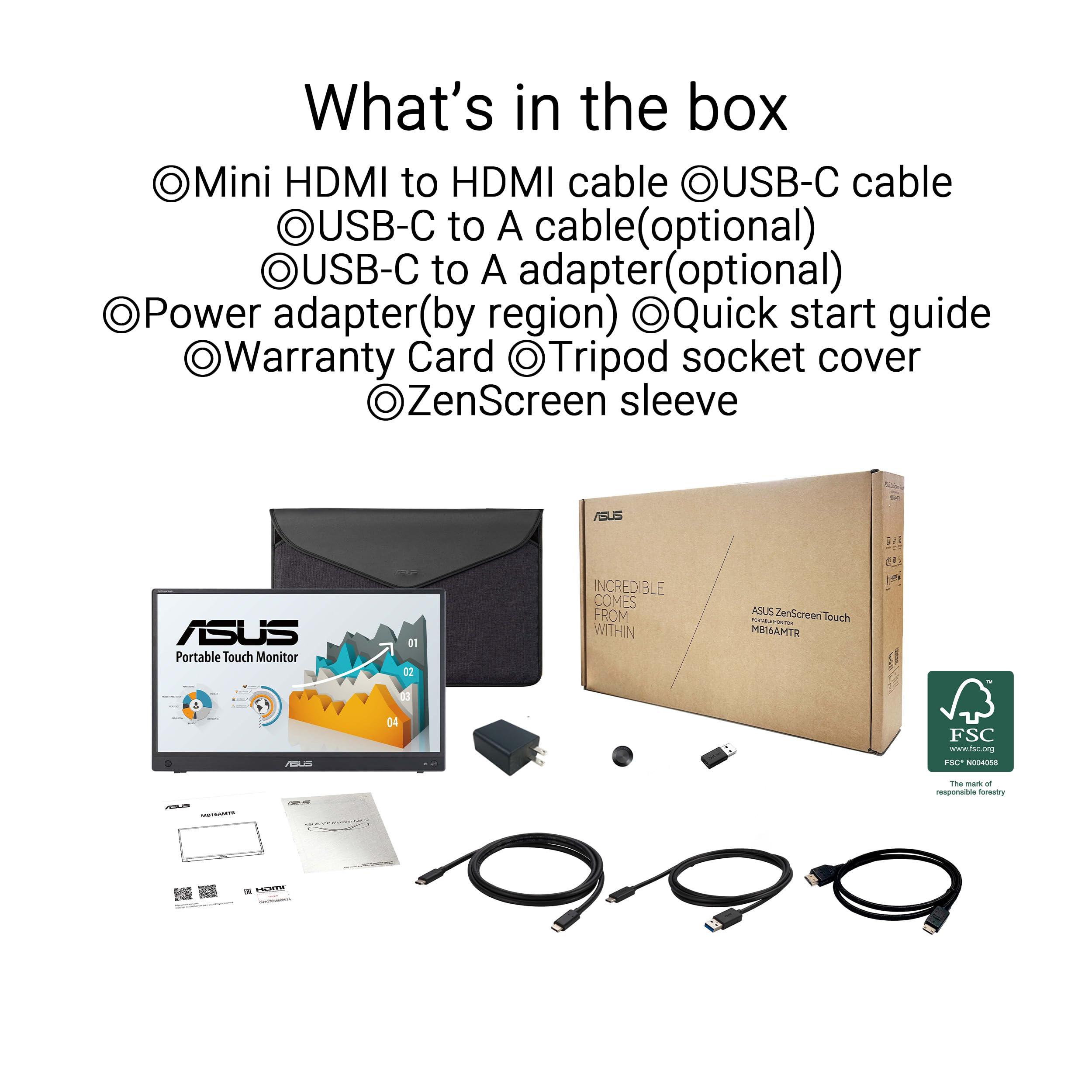 ASUS ZenScreen Touch MB16AMTR Monitor Portatile da 16” pollici (15,6) IPS FHD (1920x1080), Batteria Integrata, Mini-HDMI, Tecnologia Anti-sfarfallio e Filtro Luci Blu, Nero