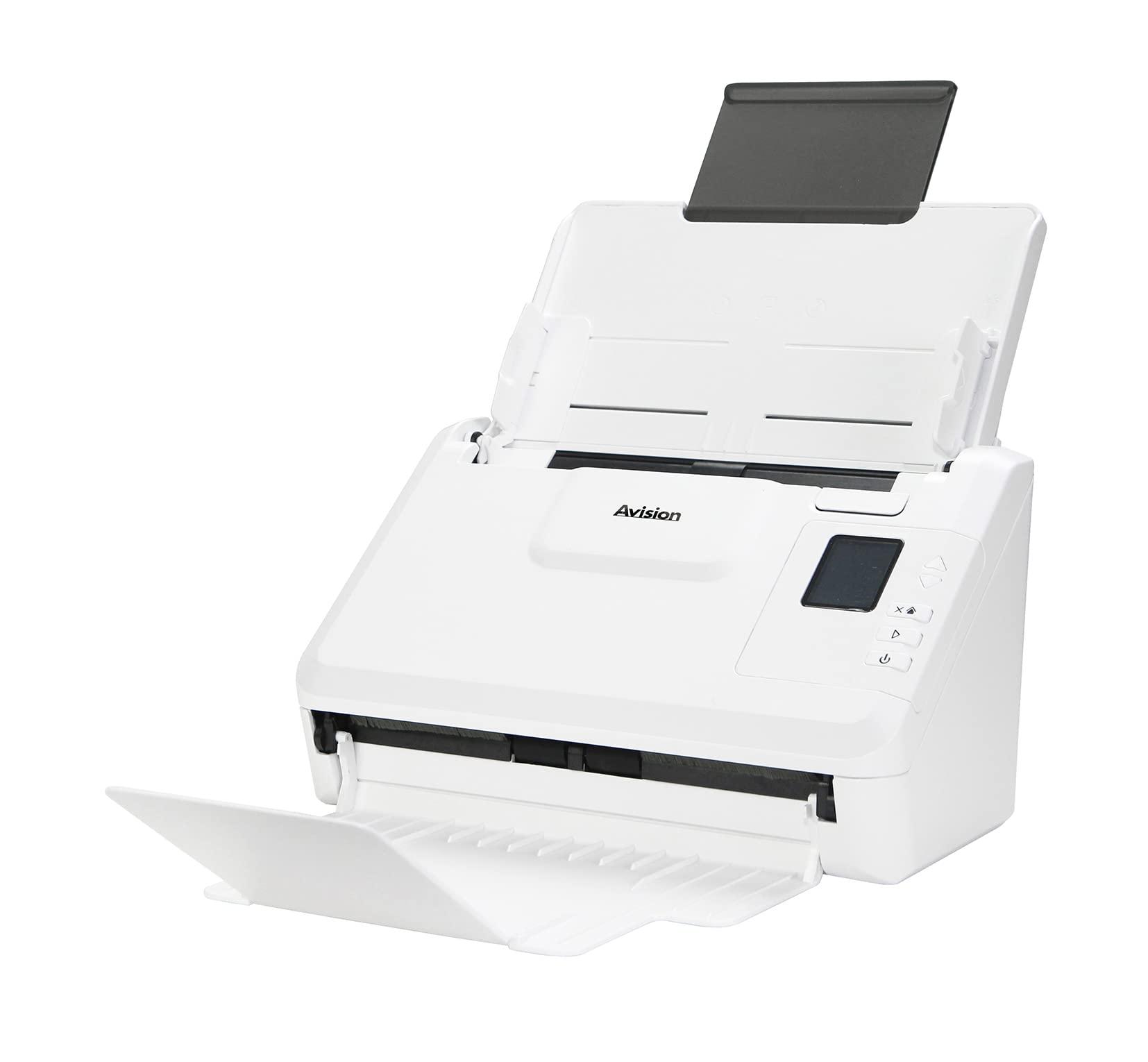 Avision AD340GN – A4 – Scanner di documenti duplex, 40 ppm/80ipm, 50 pagine ADF, USB 3.2, Ethernet, scansione di documenti lunghi fino a 600 cm, driver ISISIS, Twain, bianco