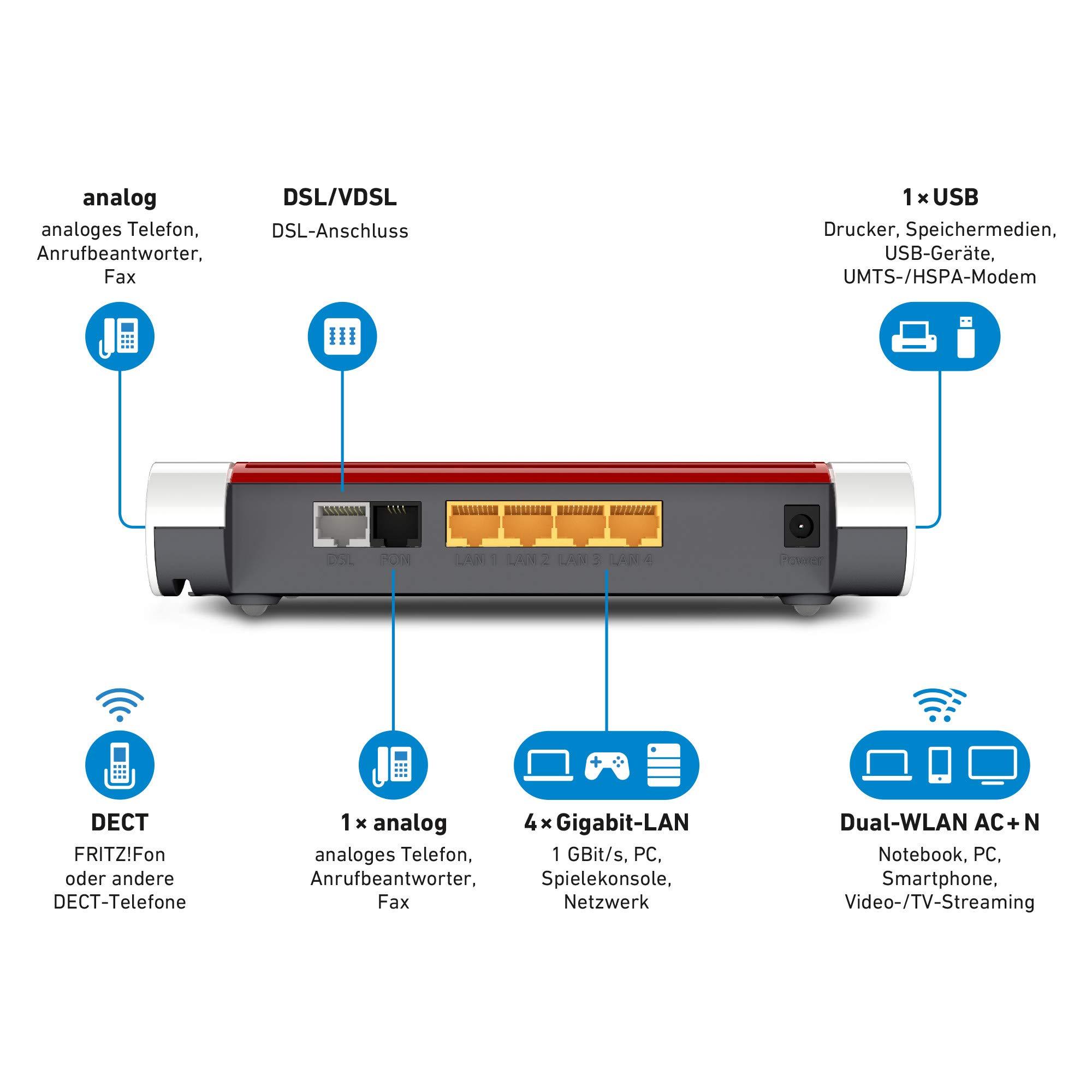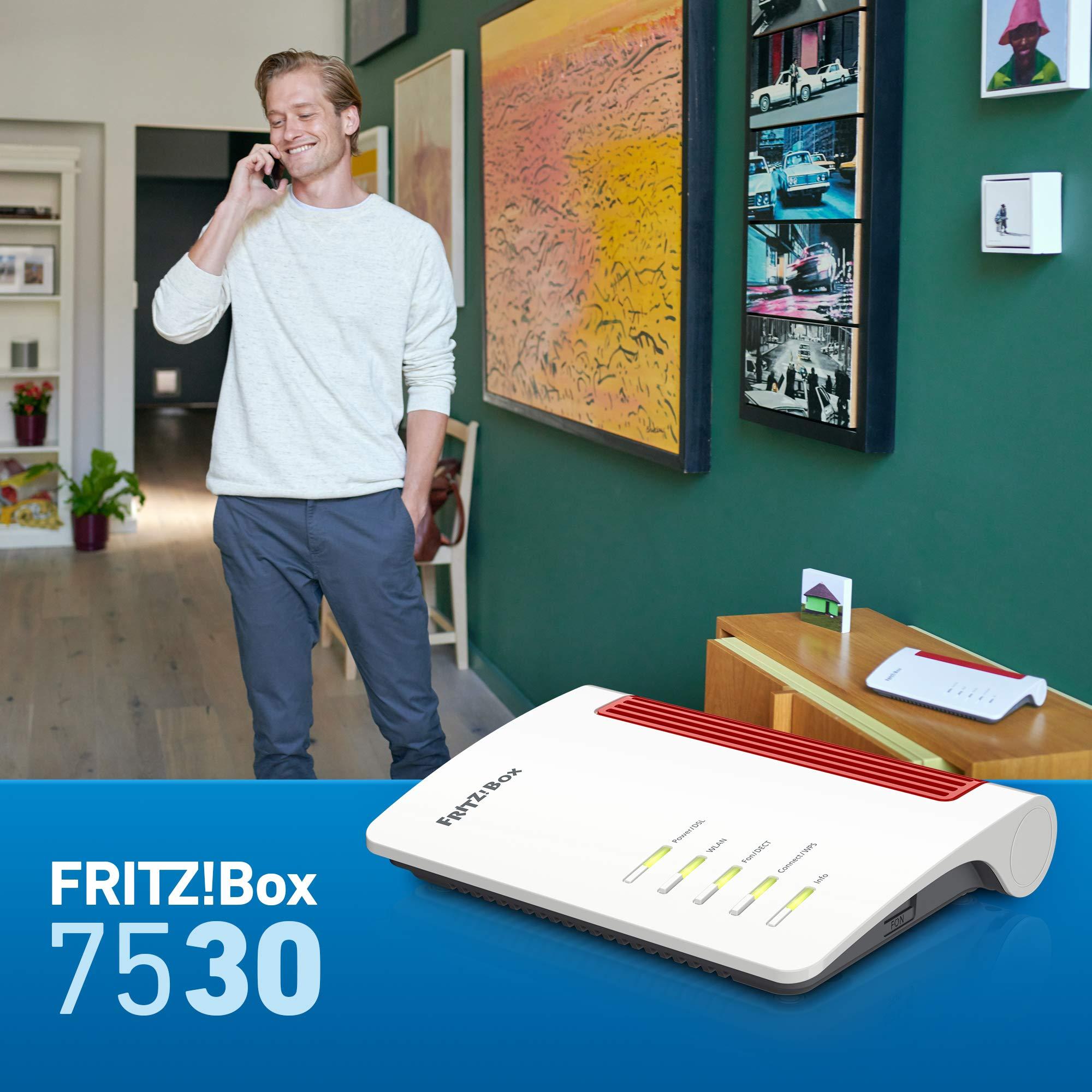 AVM FRITZ! Box 7530 High End WLAN AC + N Router DSL/VDSL, 866 Mbit/s (5 GHz) + 400 Mbit/s (2.4 GHz), fino a 300 Mbit/s Attraverso VDSL Supervecto Snello35B, Base DECT, Media Server, [Versione Tedesca]