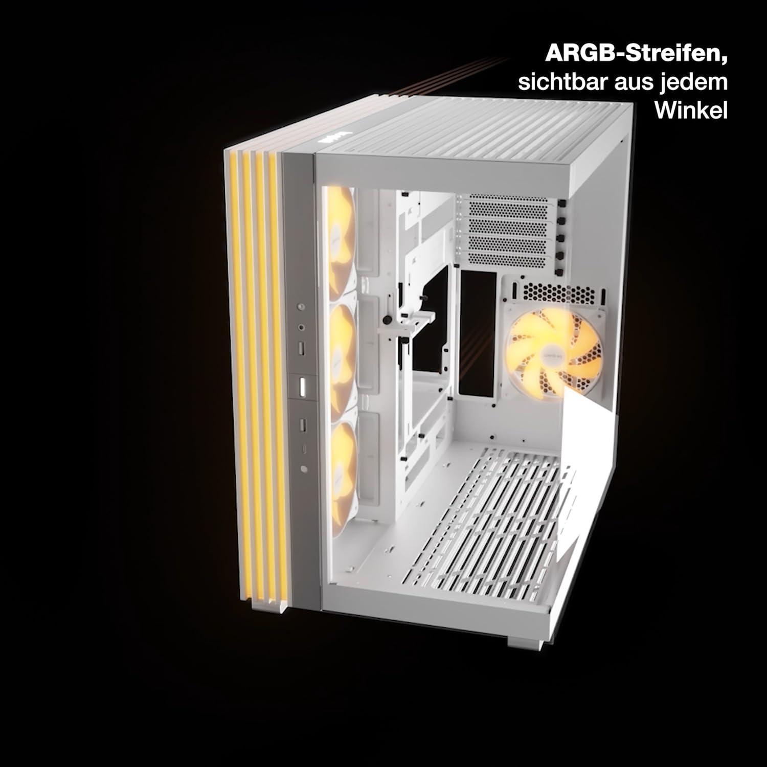 - Light Base 600 DX White è stato creato per il grande aspetto. Niente lo dimostra più della massiccia striscia LED ARGB, visibile da qualsiasi angolazione. Grazie al controllo ARGB e alla possibilità di sincronizzare l'illuminazione con la scheda madre, puoi trasformare Light Base 600 DX White in un case personalizzato. Mostra chi sei!