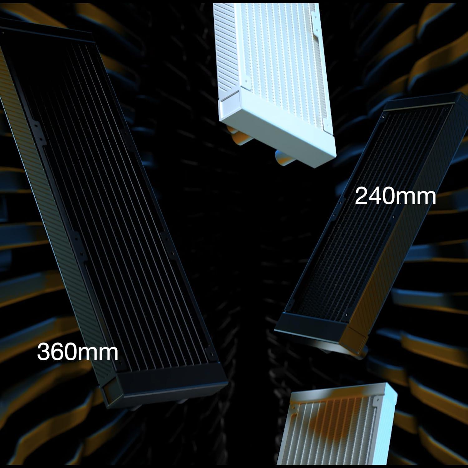 - Il Light Loop 240mm White monta 2 ventole Light Wings LX 120mm PWM high-speed. Esse presentano 16 LED che diffondono perfettamente la luce lungo le pale e sono la chiave della bellezza che Light Loop 240mm White offre. Le 9 pale della ventola ottimizzate per l’airflow non solo riducono le rumorose turbolenze, ma assicurano che le Light Wings LX 120mm PWM high-speed forniscano le prestazioni richieste, anche in situazioni impegnative.