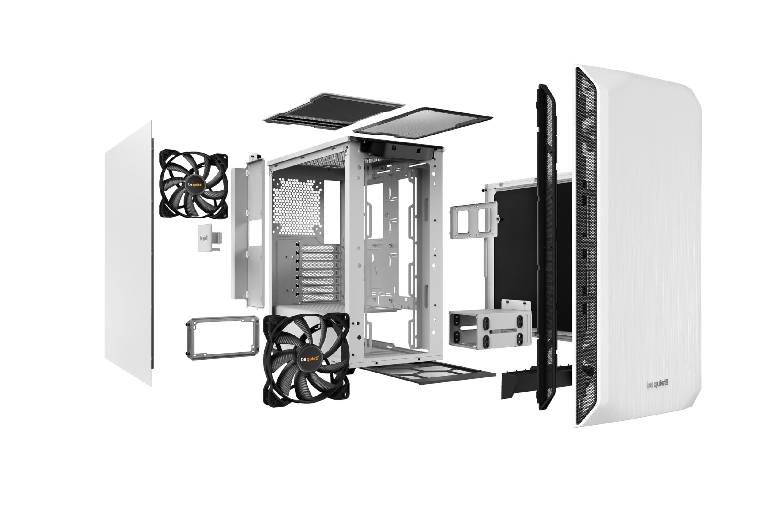 be quiet! Pure Base 500 White Case PC con 2 ventole Pure Wings 2 140mm, copertura superiore ottimizzata per silenzio e flusso d'aria, supporto radiatori fino a 360mm