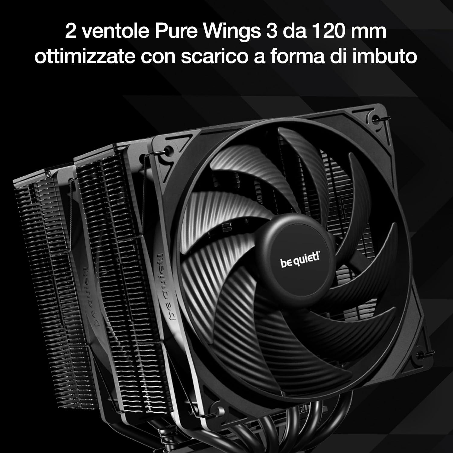 - Pure Wings 3 120 mm PWM e Pure Rock Pro 3 Silver sono un abbinamento perfetto. La ventola è dotata di pale ottimizzate per garantire le massime prestazioni. Gli angoli sono regolati in modo da ottenere una pressione d'aria ancora maggiore, contribuendo alle straordinarie prestazioni. Lo scarico dell'aria a forma di imbuto non è che la ciliegina sulla torta: esso massimizza infatti il flusso d'aria sulle alette.