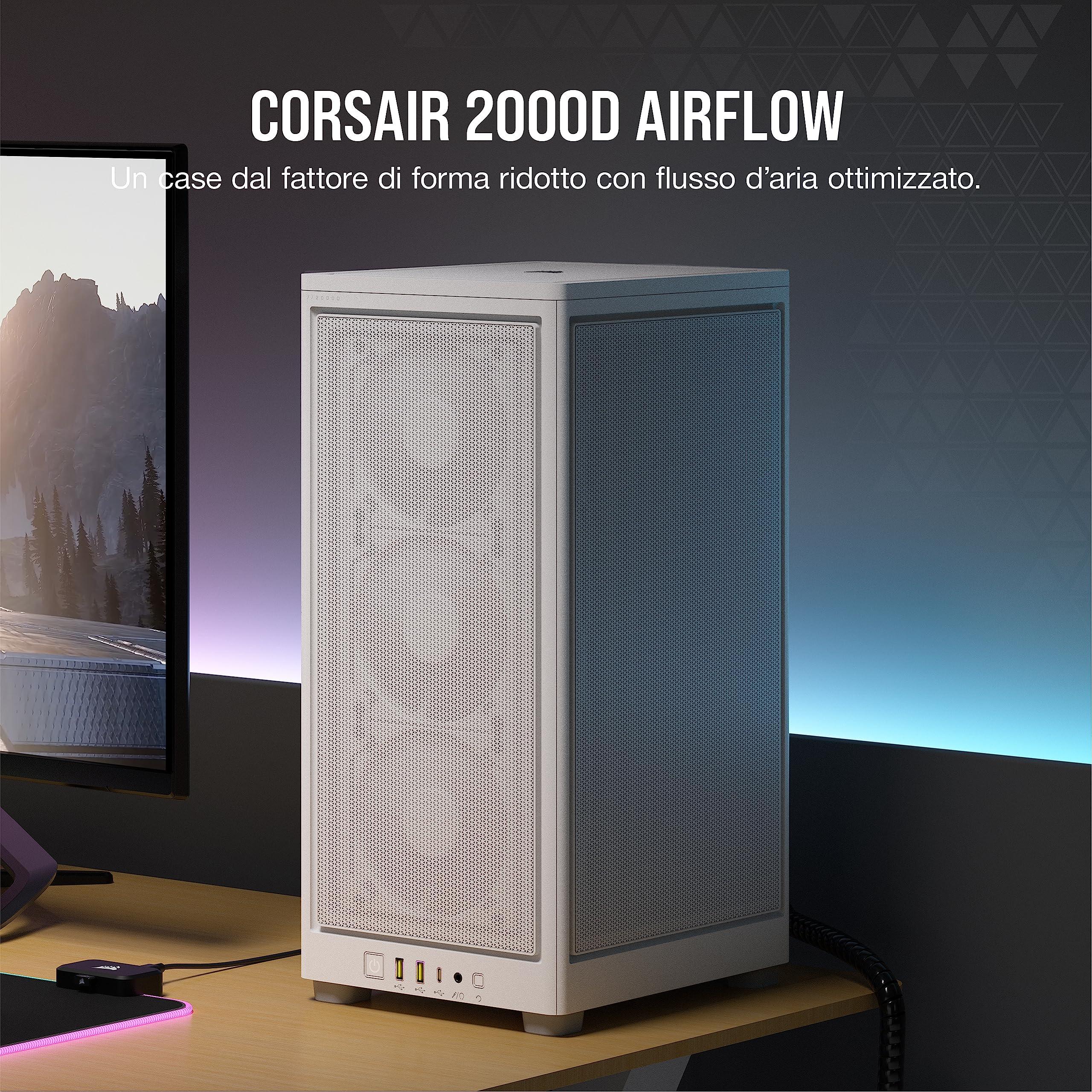 Boitier PC - CORSAIR - iCUE 2000D Airflow - Mini ITX - Panneaux en acier - Ventilateur AF120 SLIM inclus - Blanc - (CC-9011245-W