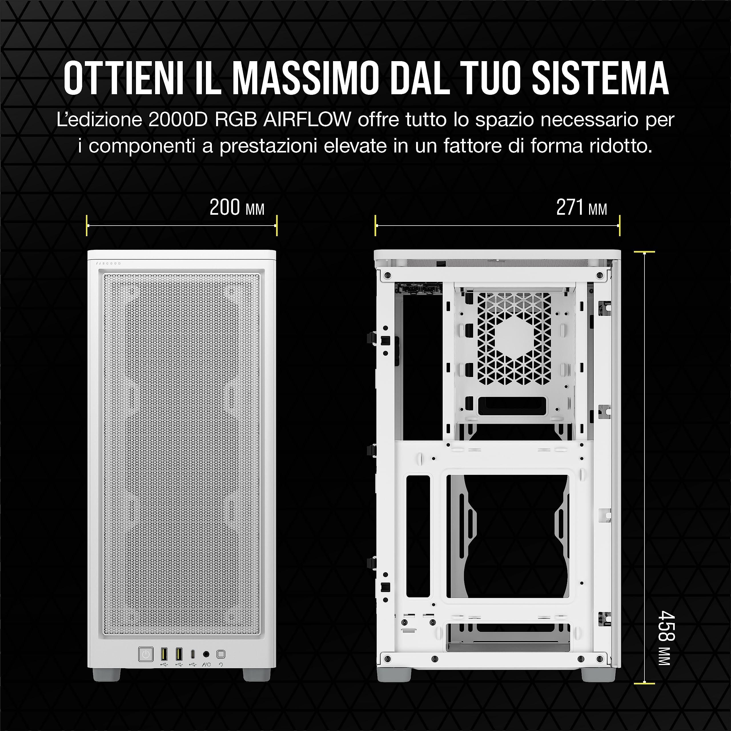 - Telaio compatto - Il formato Mini-ITX con un volume di soli 24,4 litri garantisce un ingombro minimo su o sotto la scrivania, con dimensioni di 271 mm x 200 mm x 450 mm