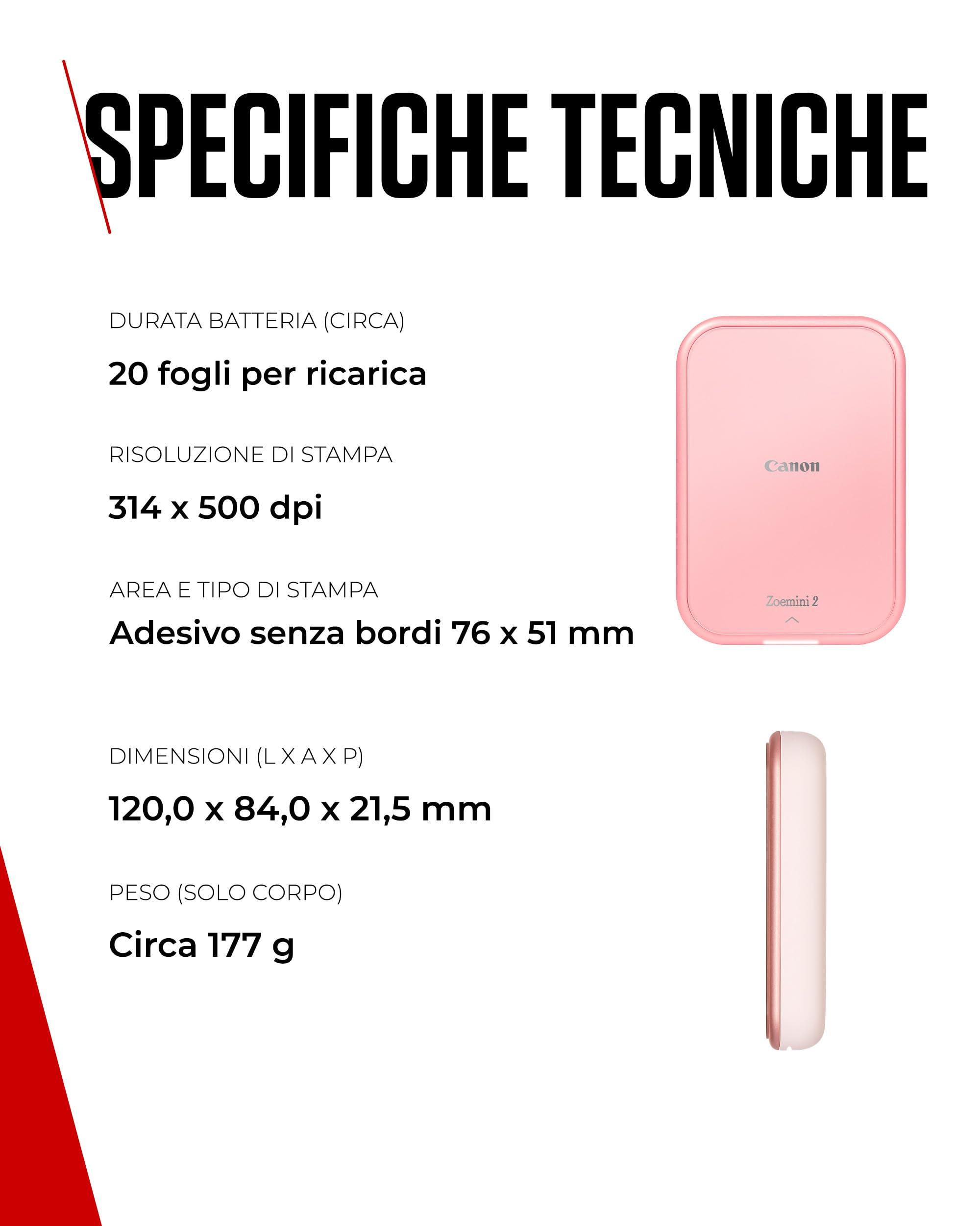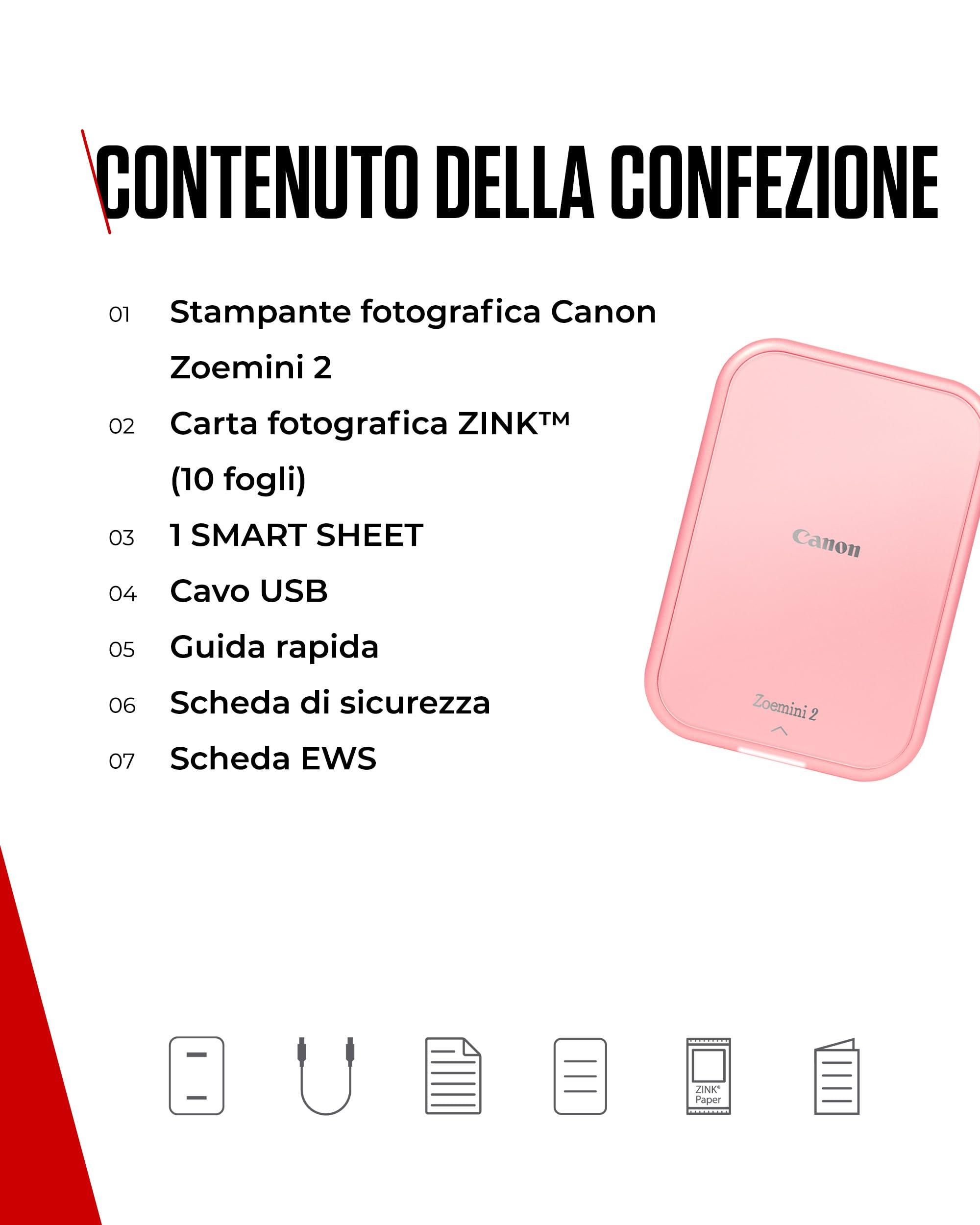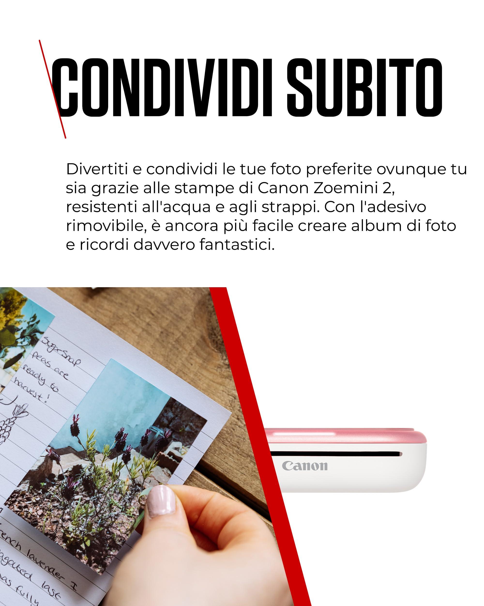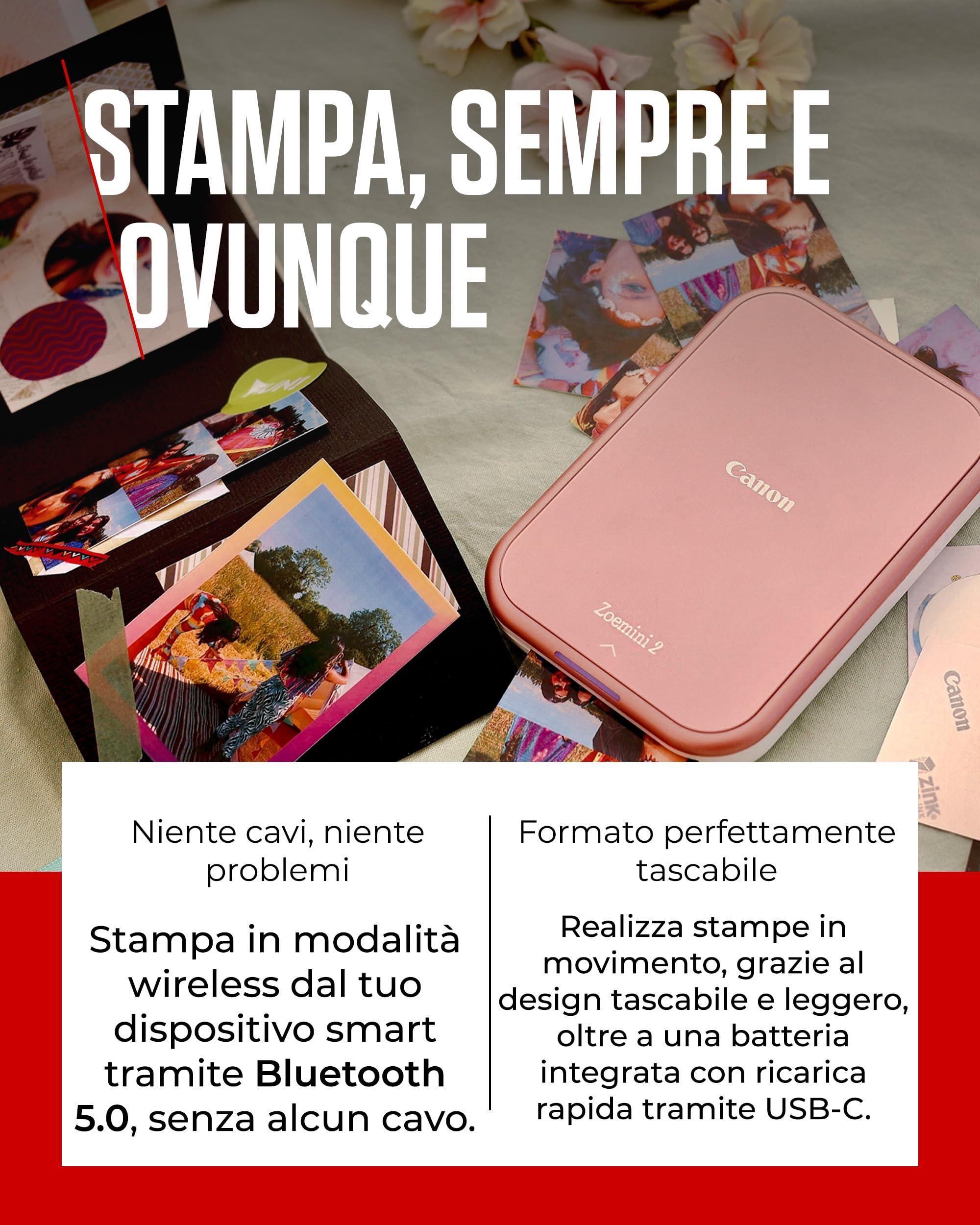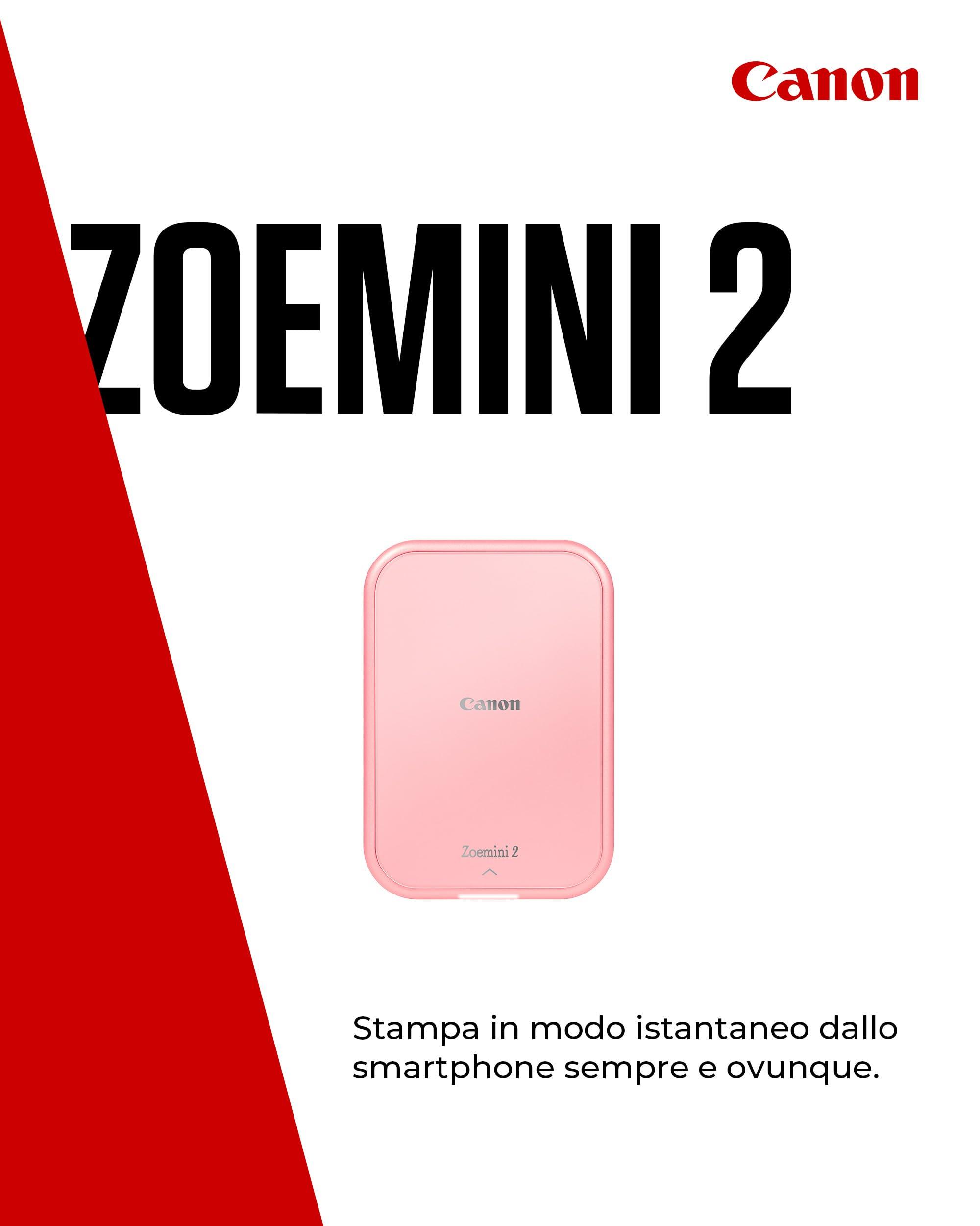 Canon Zoemini 2: Piccole Stampe, Grandi Risultati - Stampante Fotografica Portatile per Smartphone - Mini Stampante Fotografica Compatta e Wireless - Ricarica Rapida via USB C e Bluetooth - Oro Rosa