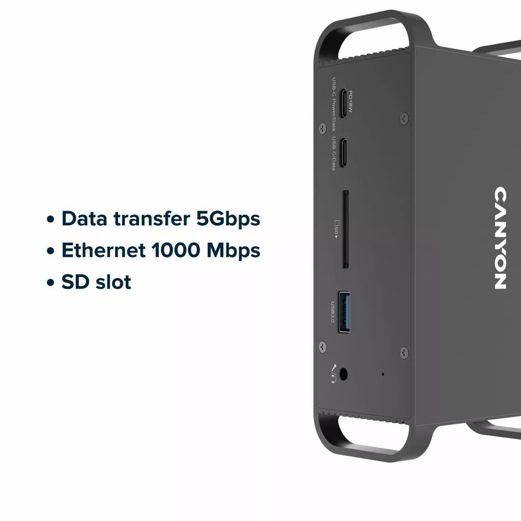 CANYON Docking station a 14 porte USB-C con 1 adattatore AC da 100 W