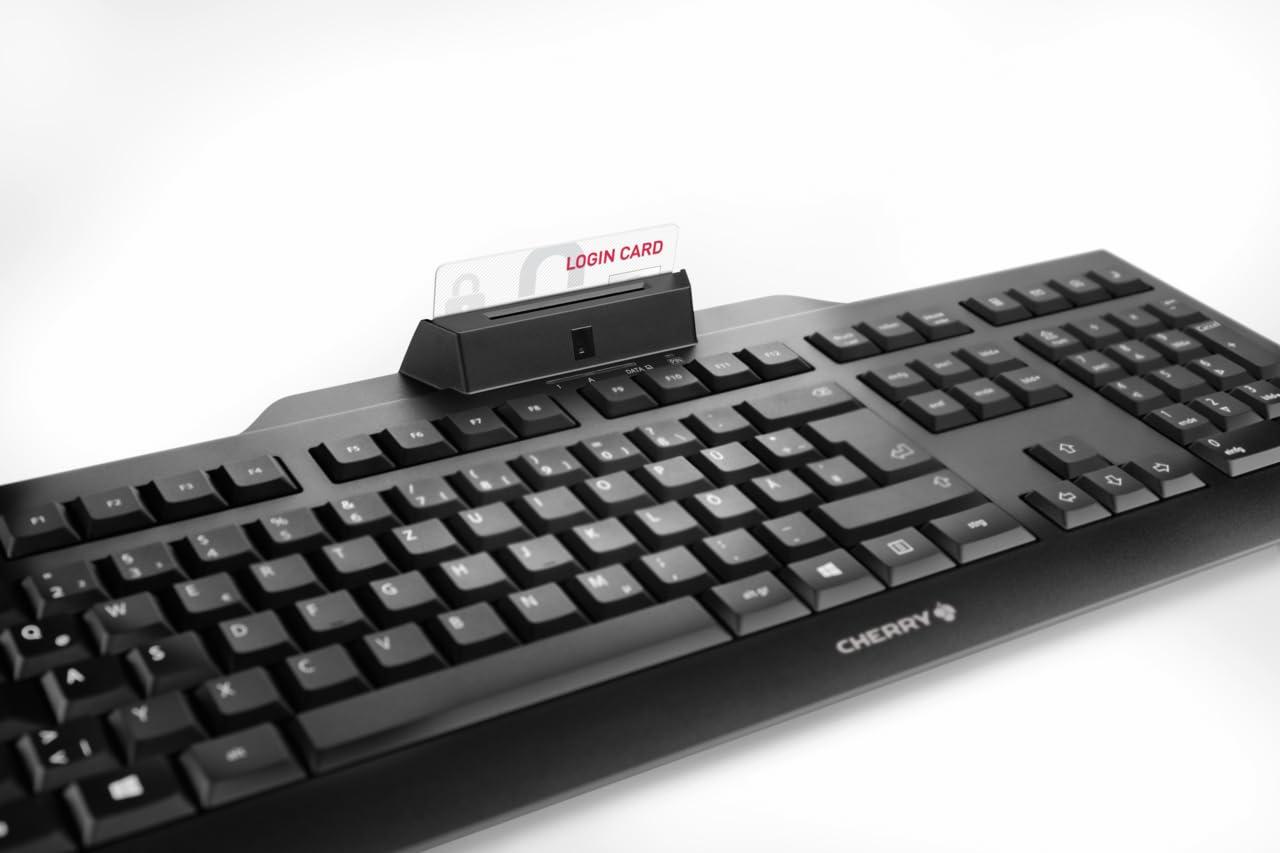 CHERRY KC 1000 SC, Tastiera di Sicurezza Cablata con Lettore di Carte Integrato, Layout EU (QWERTY), Plug & Play (Connettore USB-A), Design Piatto, Nero