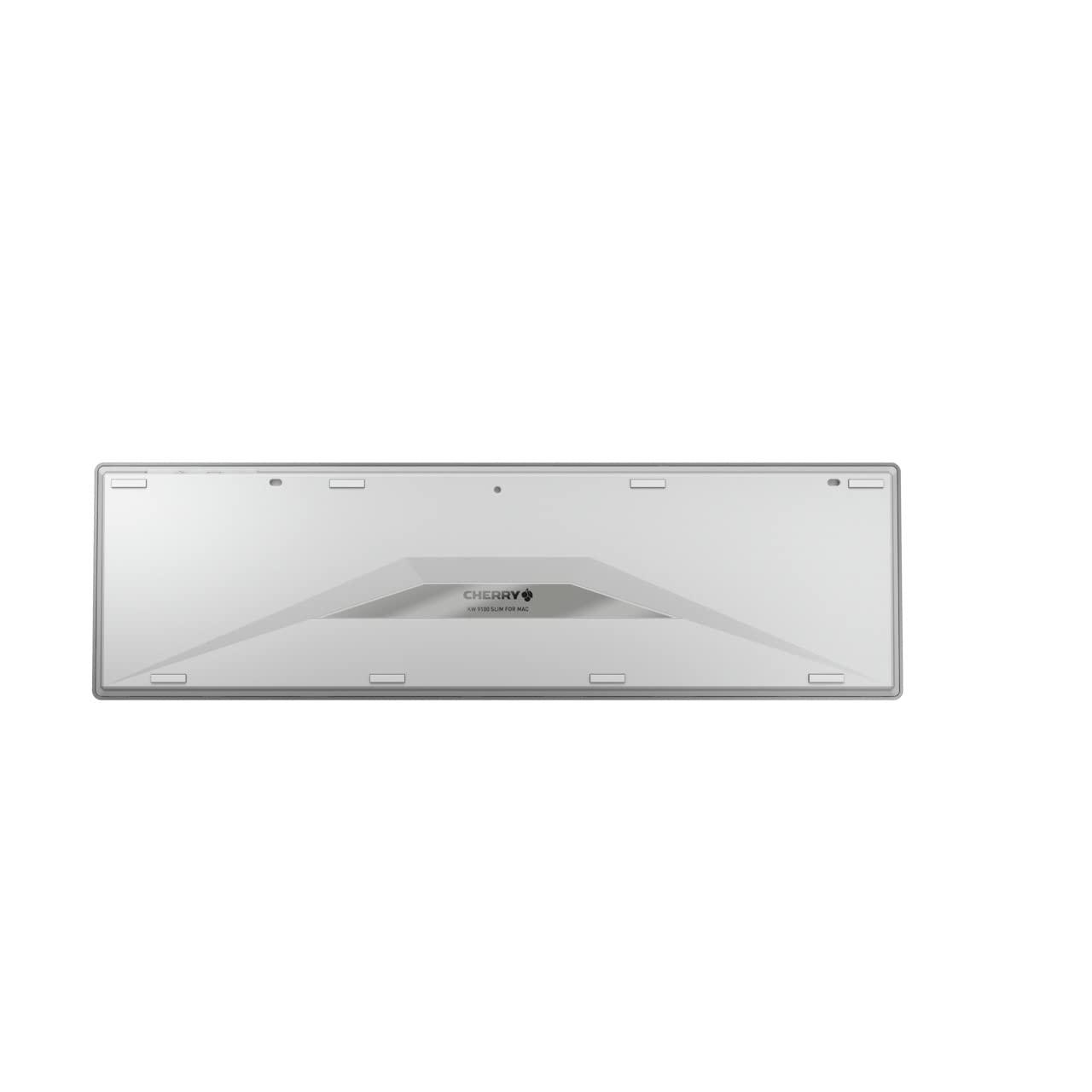 CHERRY KW 9100 SLIM FOR MAC, Tastiera Mac Senza Fili, Layout per la Francia (AZERTY), Connessione Bluetooth o Wireless 2,4 GHz, Tasti Piatti, Ricaricabile, Bianco-Argento
