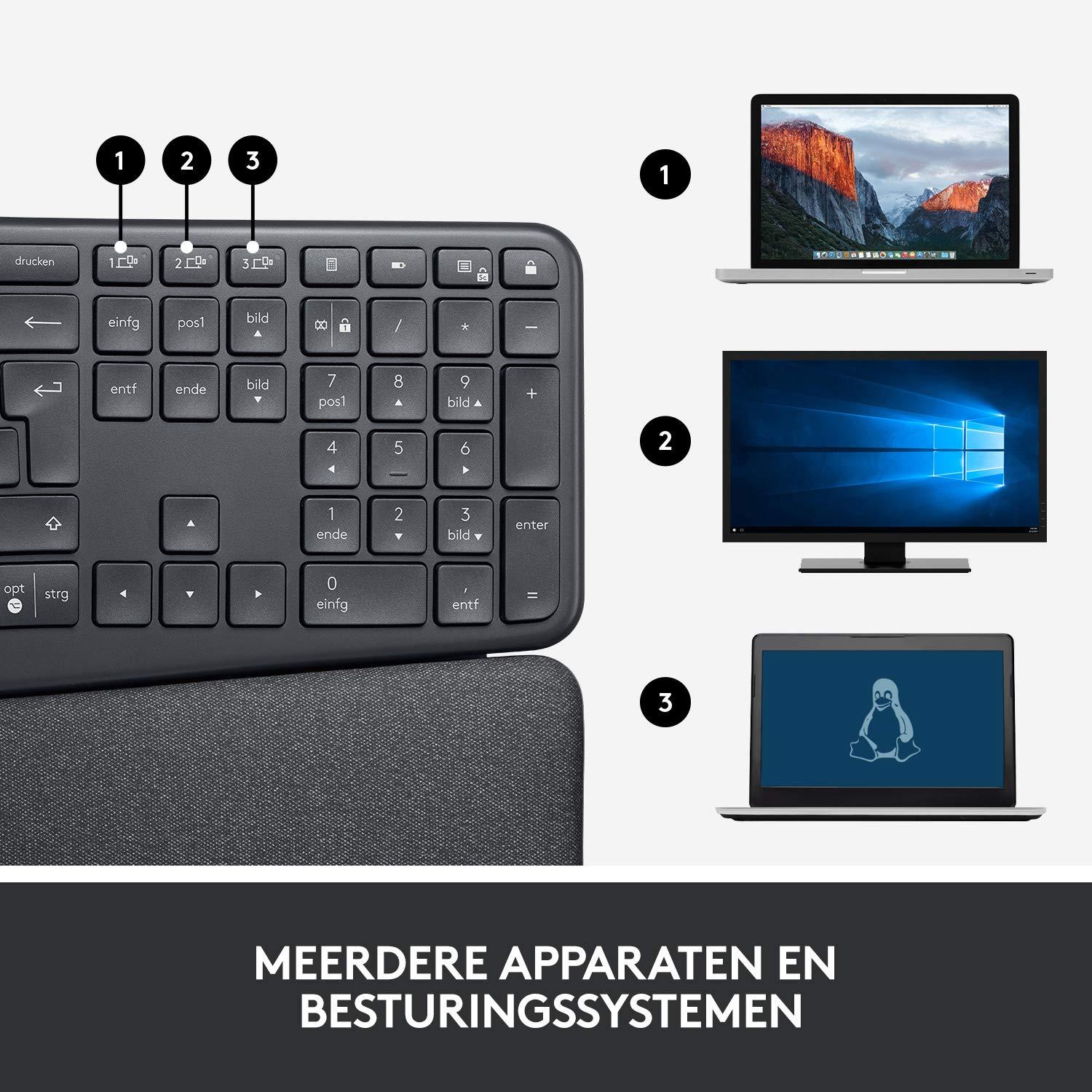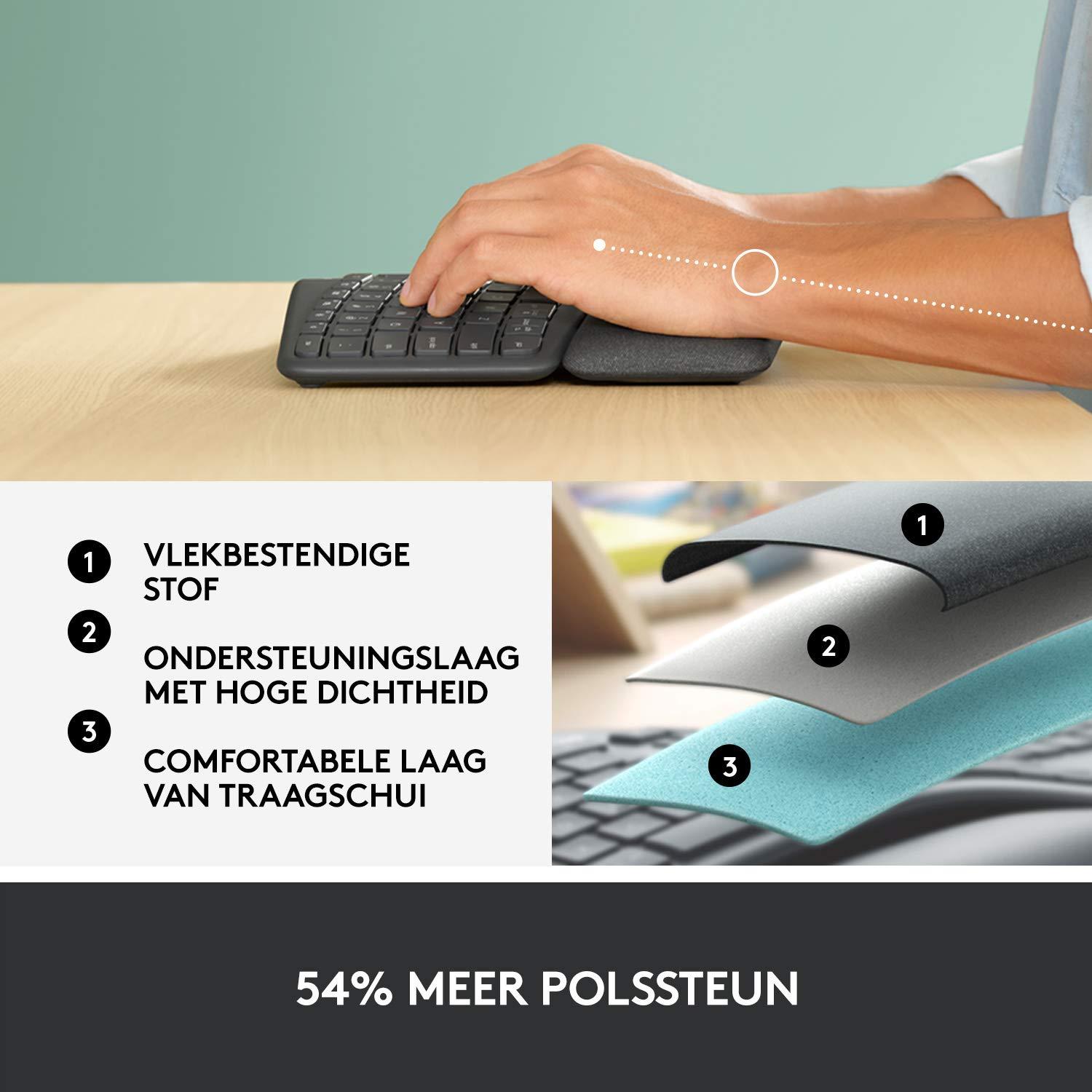 - Grazie al design curvo e diviso che favorisce la postura di digitazione, digiterai in modo naturale; la forma inclinata riduce lo sforzo muscolare sui polsi e sugli avambracci, mantenendo rilassate le mani e le spalle