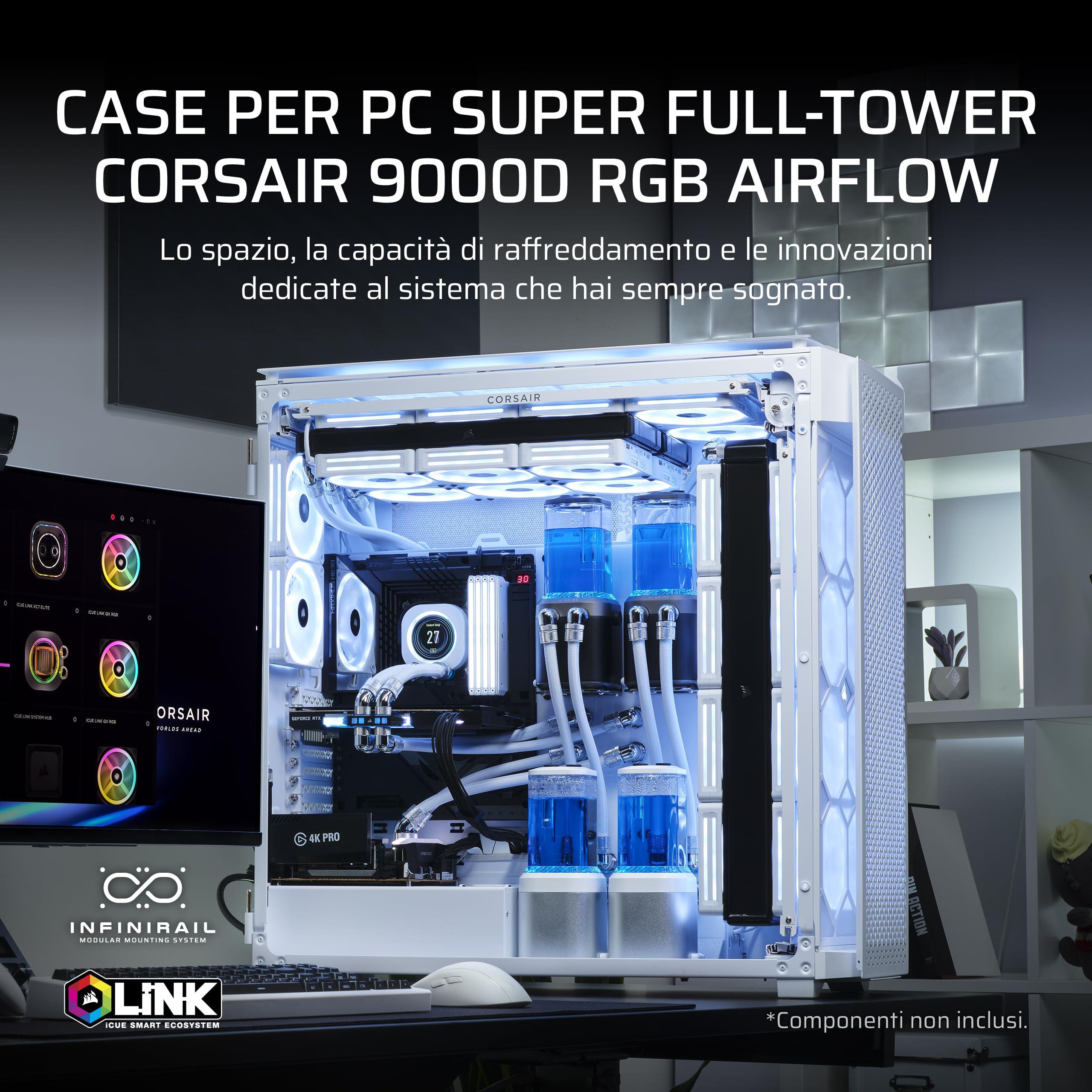 CORSAIR 9000D RGB AIRFLOW Case per PC Super Full-Tower – Spazio Mastodontico – Attacco ventole InfiniRail™ – Nessuna Ventola Inclusa – iCUE LINK System Hub Incluso – Bianco
