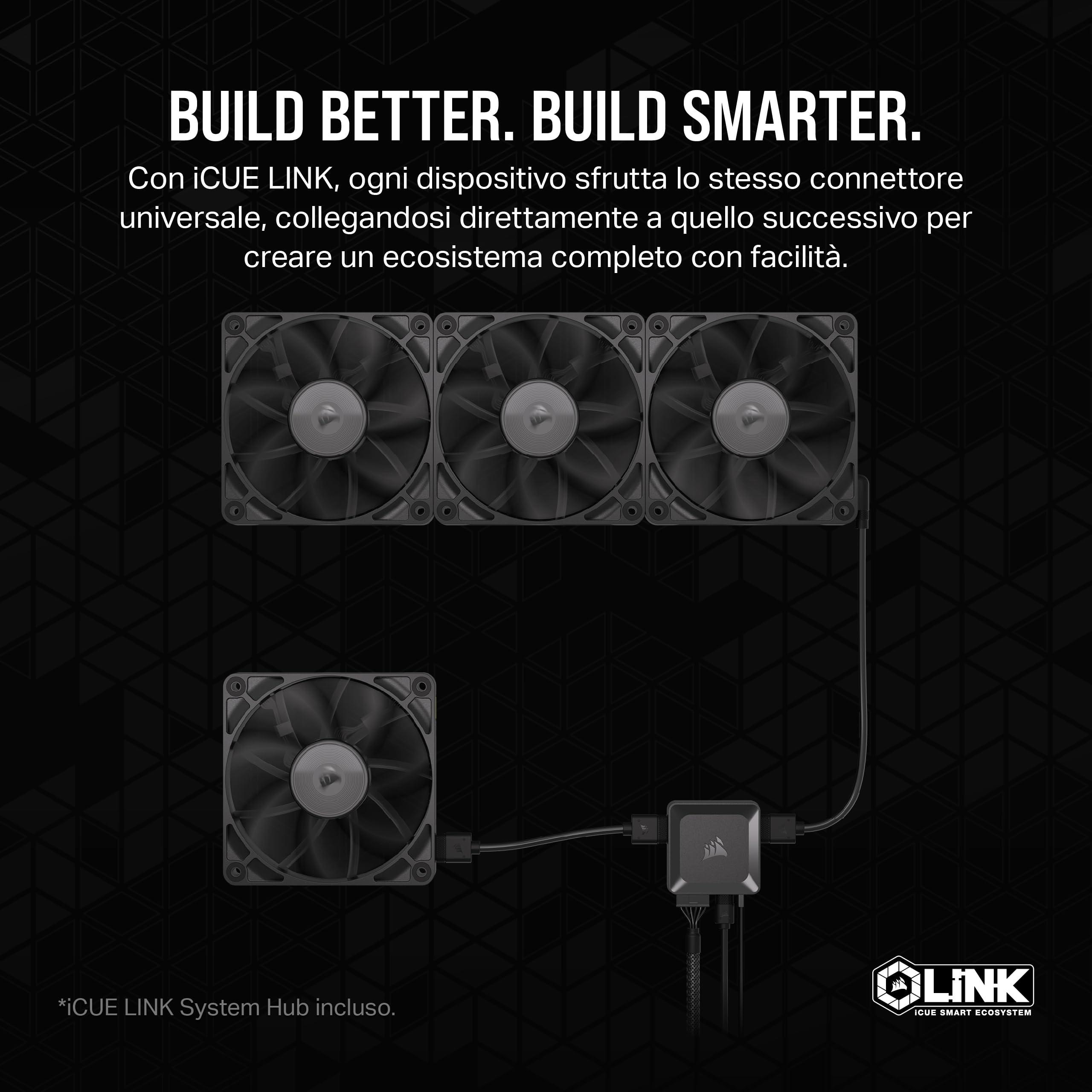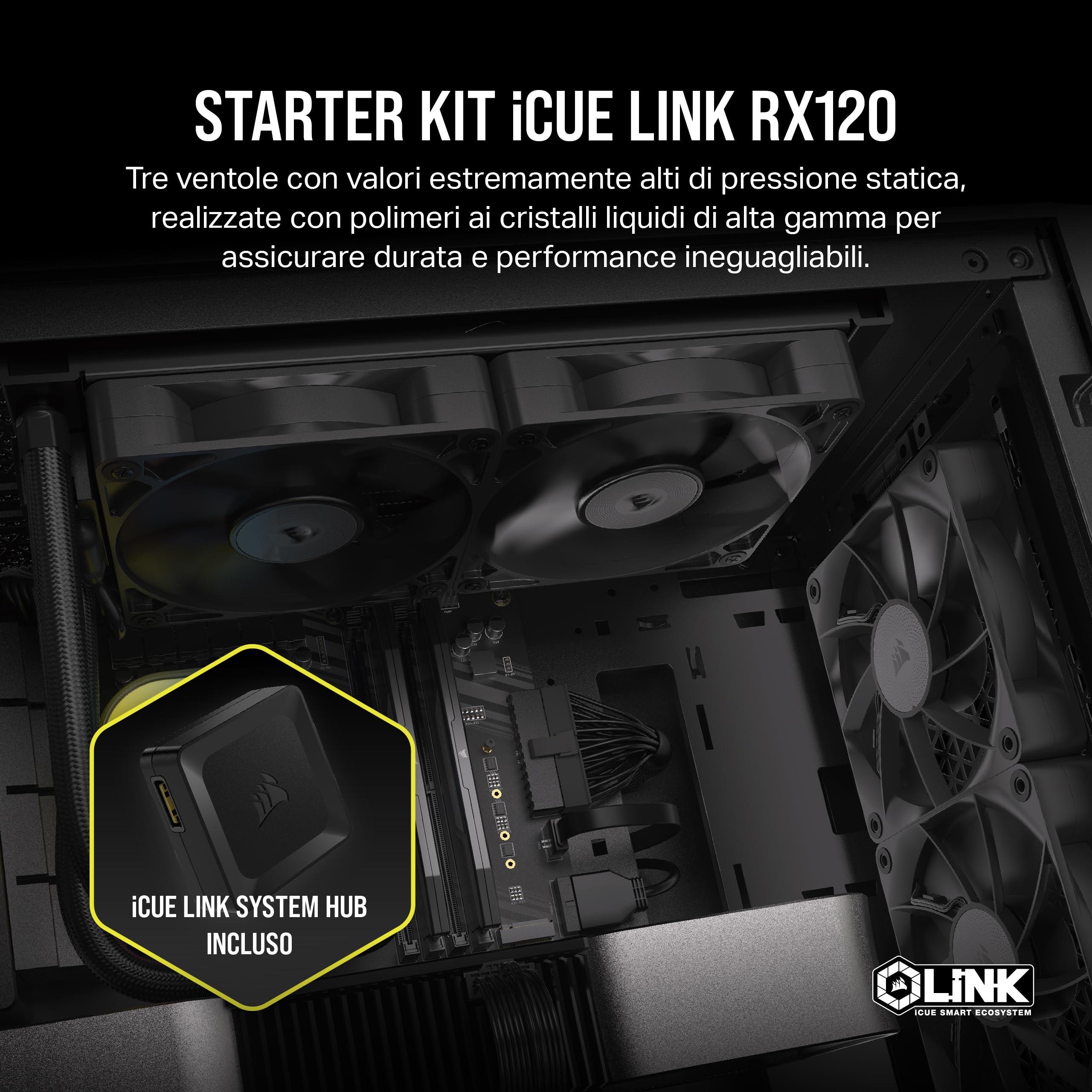 CORSAIR iCUE LINK RX120 120 mm Ventole PWM con Hub di Sistema iCUE LINK - Cuscinetto a Cupola Magnetica - Confezione Tripla - Nero