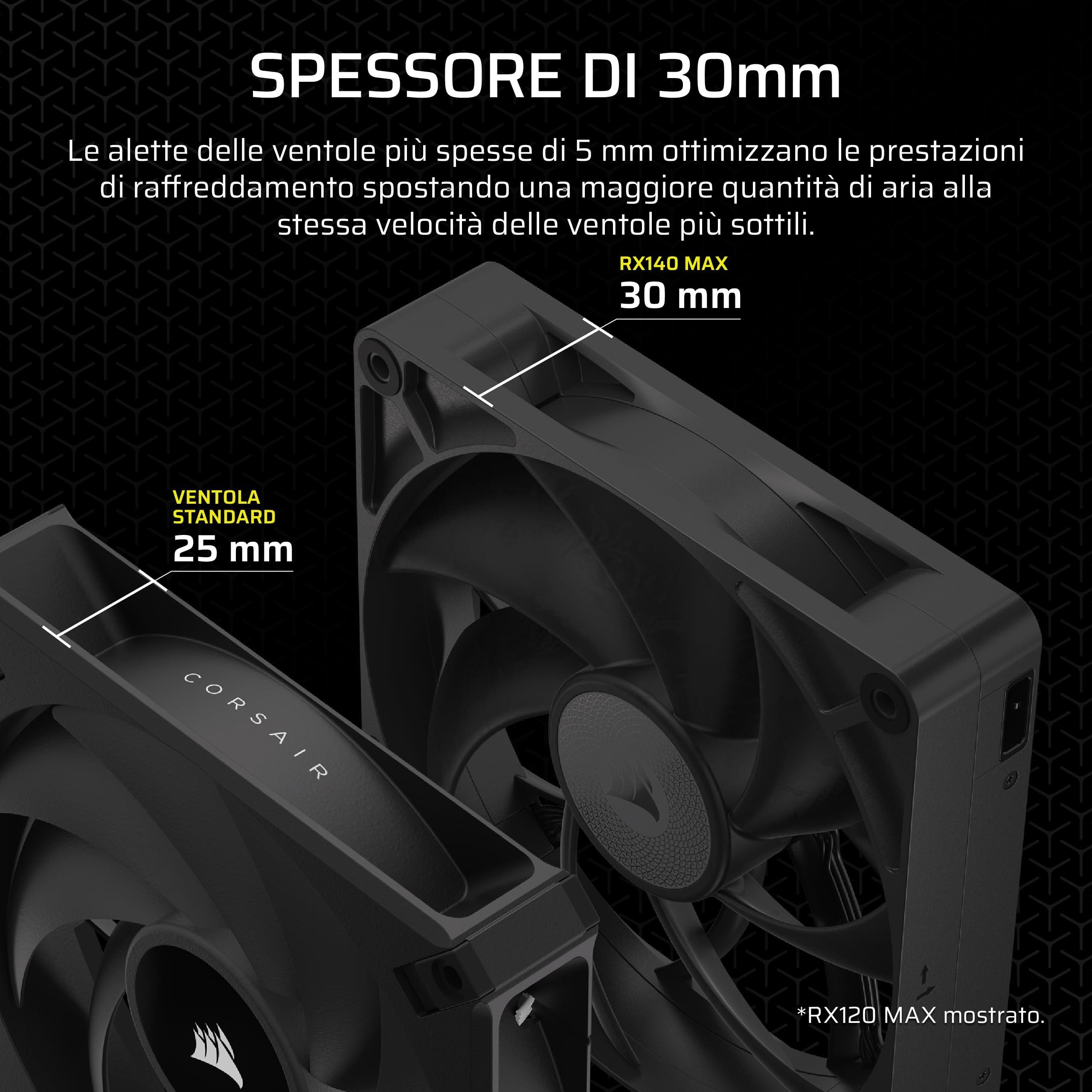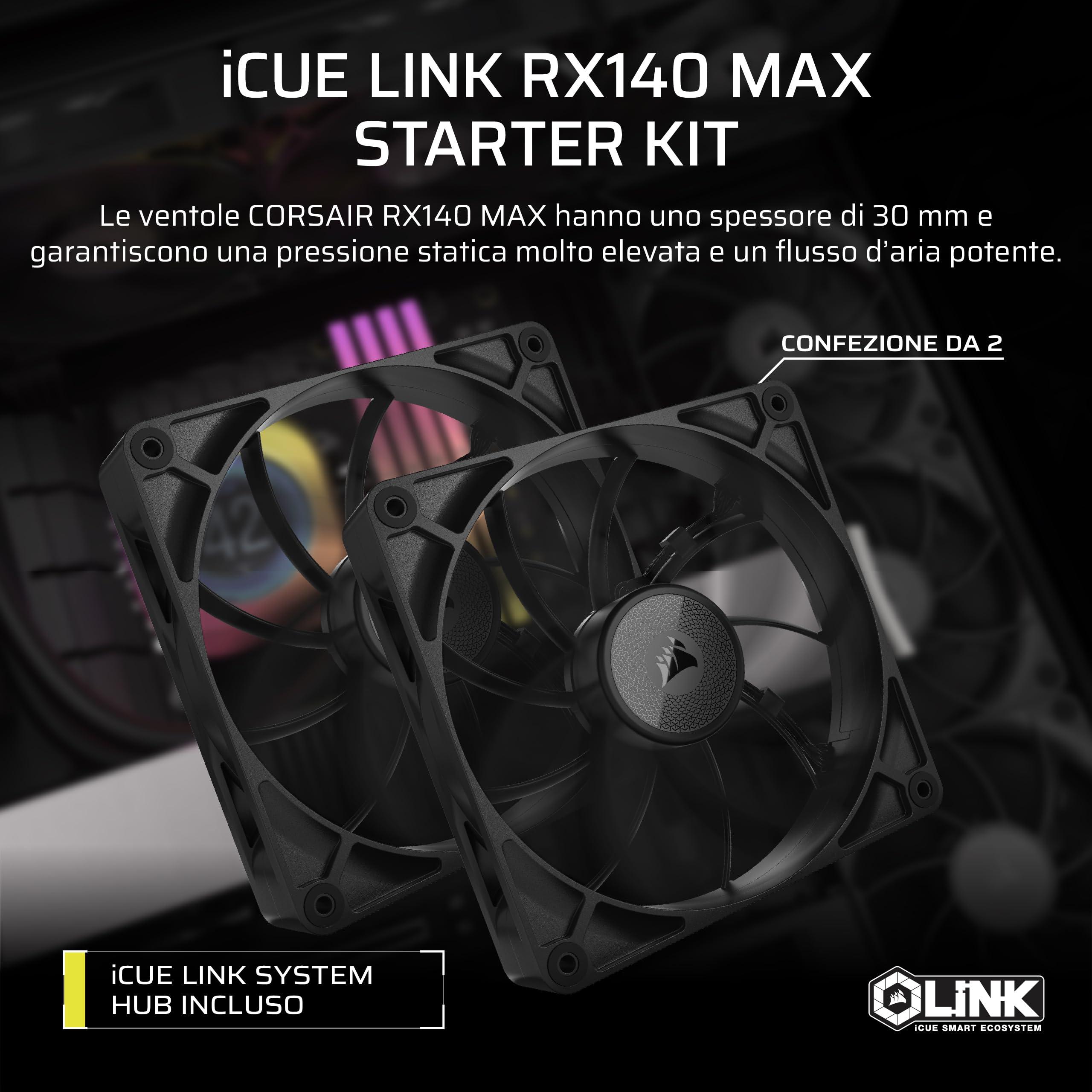 CORSAIR iCUE LINK RX140 MAX 140mm PWM Ventaglio Spessos con iCUE LINK System Hub – Alta Pressione Statica – Polimero a Cristalli Liquidi – Cuscinetto Magnetico a Cupola – Pacchetto Doppio – Nero