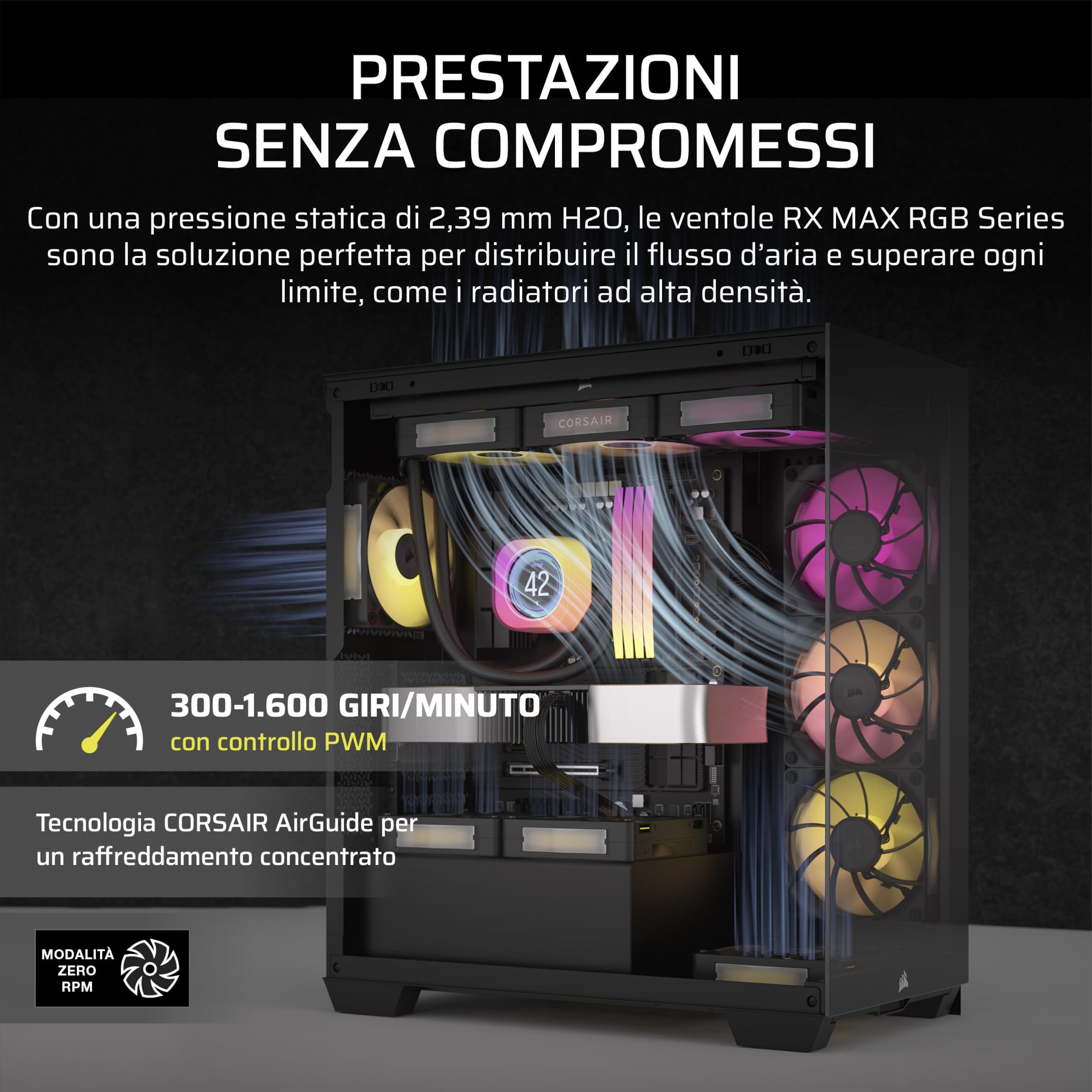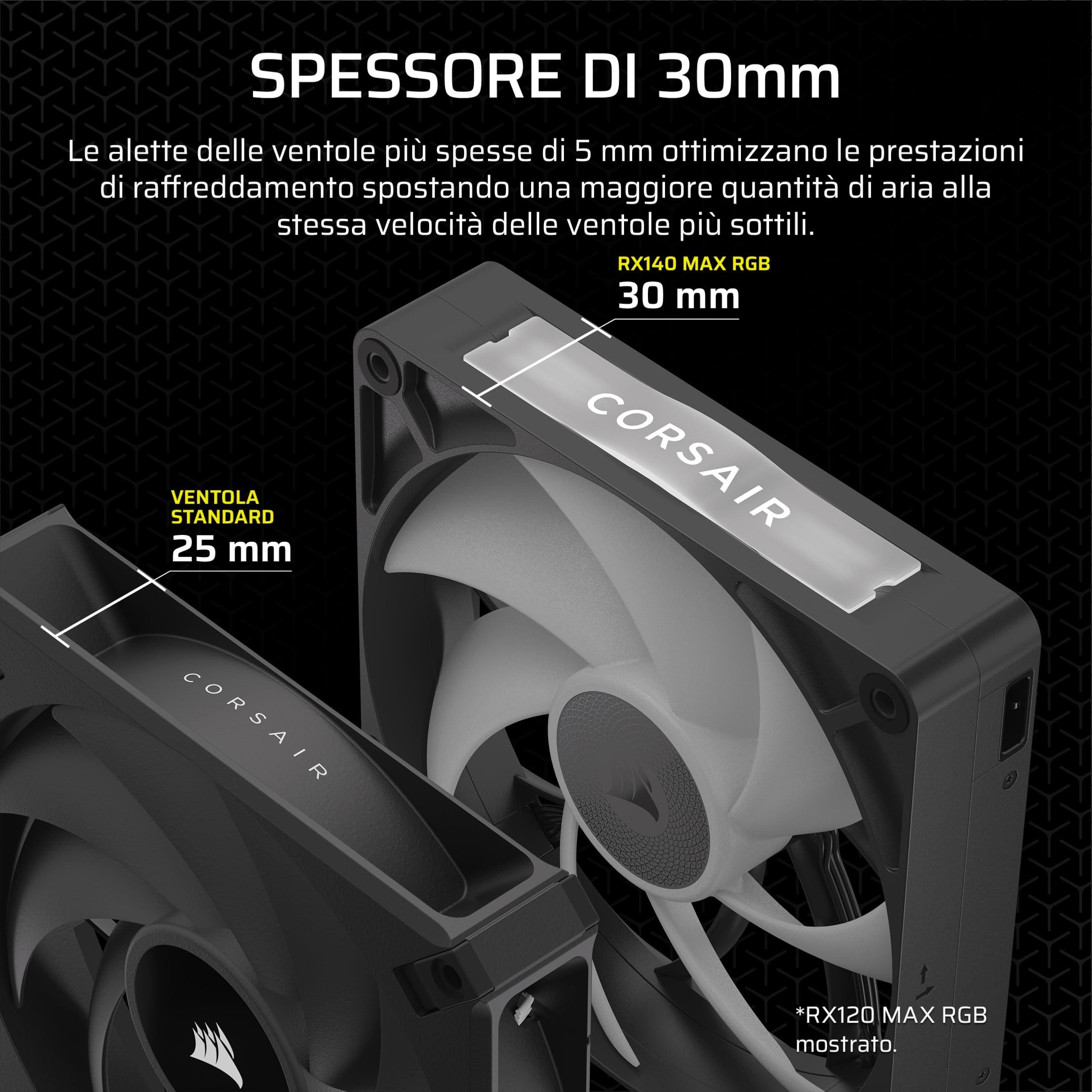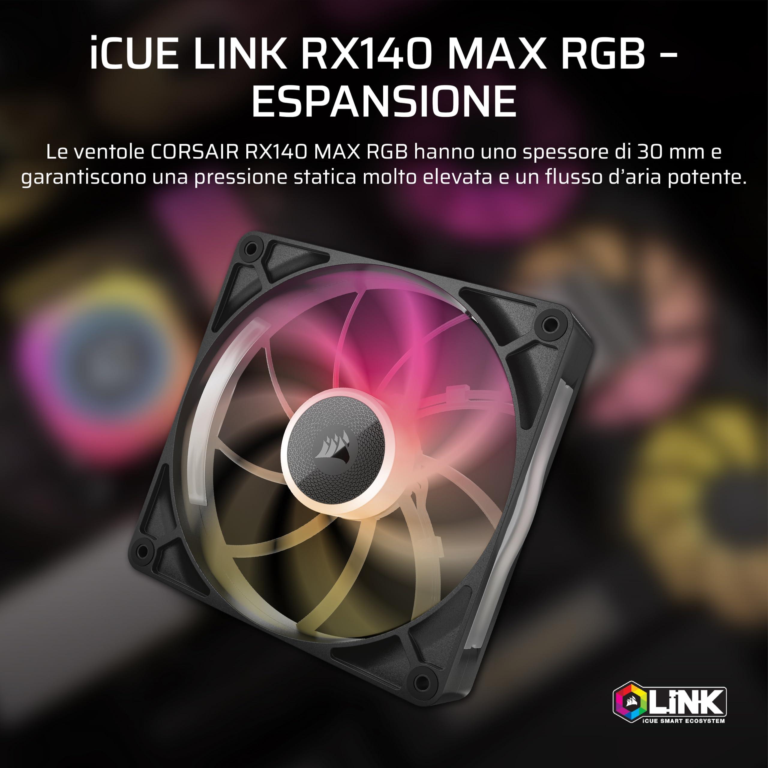 CORSAIR iCUE LINK RX140 MAX RGB 140mm PWM Ventaglio Spesso – Alta Pressione Statica – Cuscinetto Magnetico a Cupola – Ventola Singola – Nero