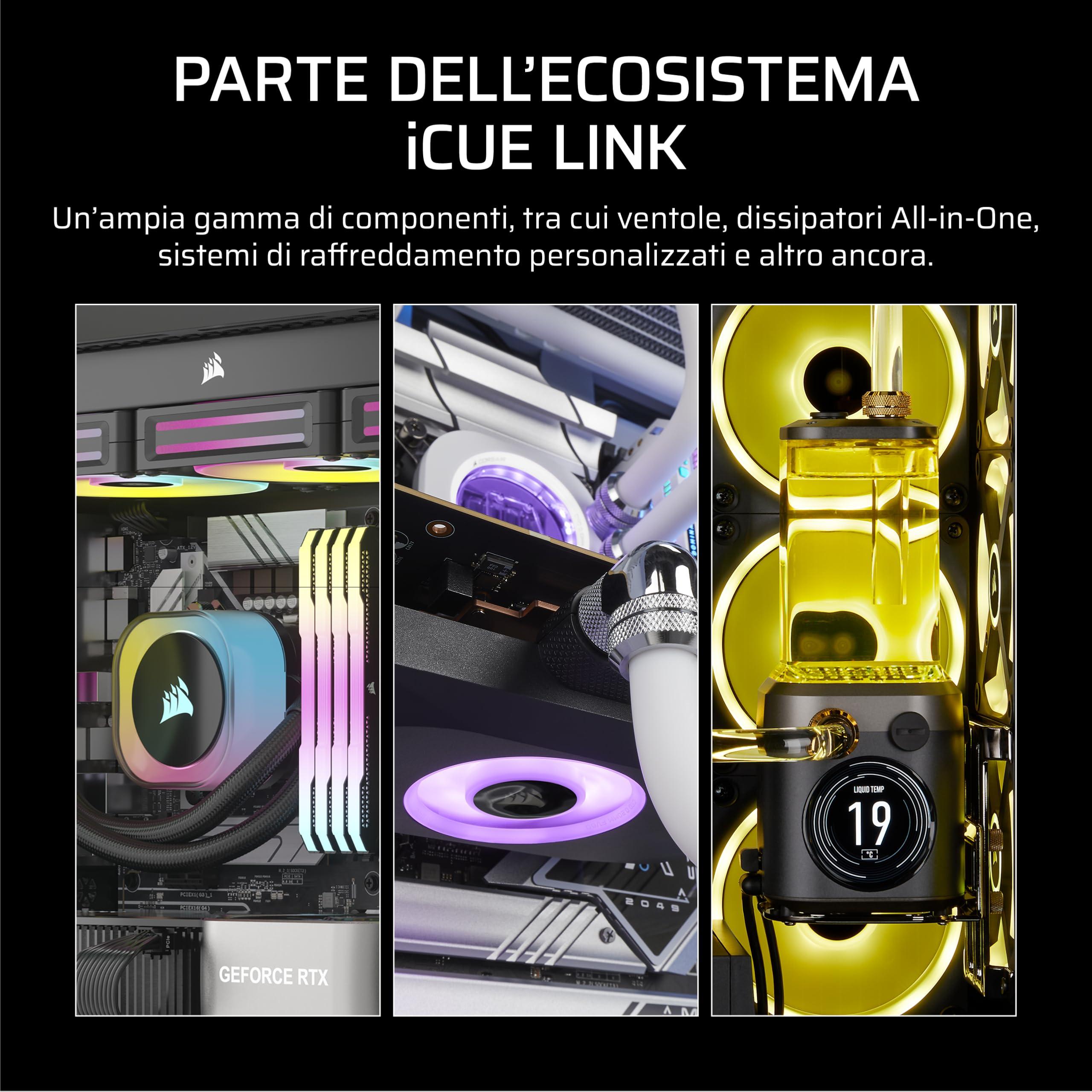 - Vitesses contrôlées par PWM via iCUE LINK : Définissez des vitesses de ventilation précises jusqu'à 1 600 tr/minute tout en fournissant un flux d’air de 102,9 CFM à votre système