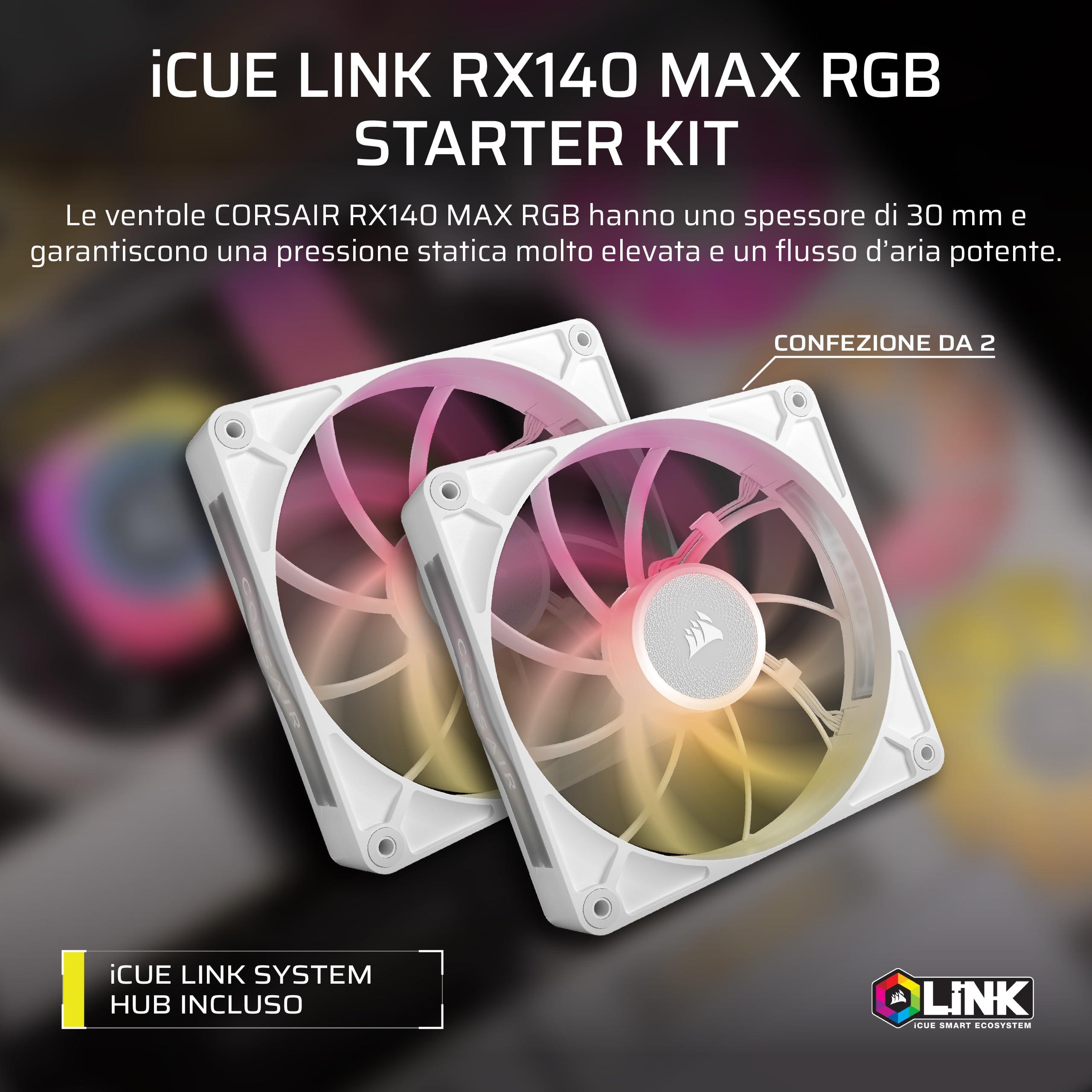 CORSAIR iCUE LINK RX140 MAX RGB 140mm PWM Ventaglio Spessos con iCUE LINK System Hub – Alta Pressione Statica – Cuscinetto Magnetico a Cupola – Pacchetto Doppio – Bianco