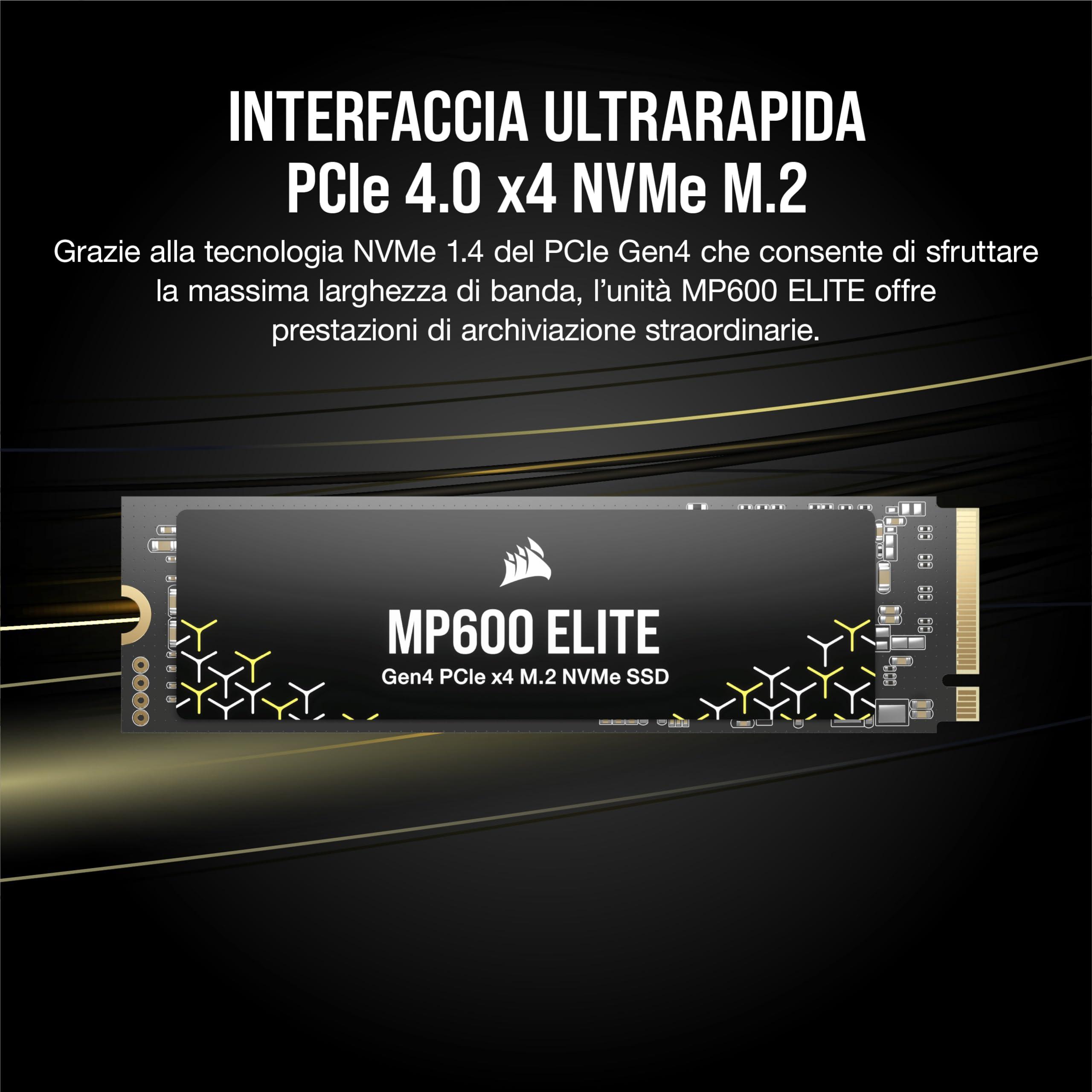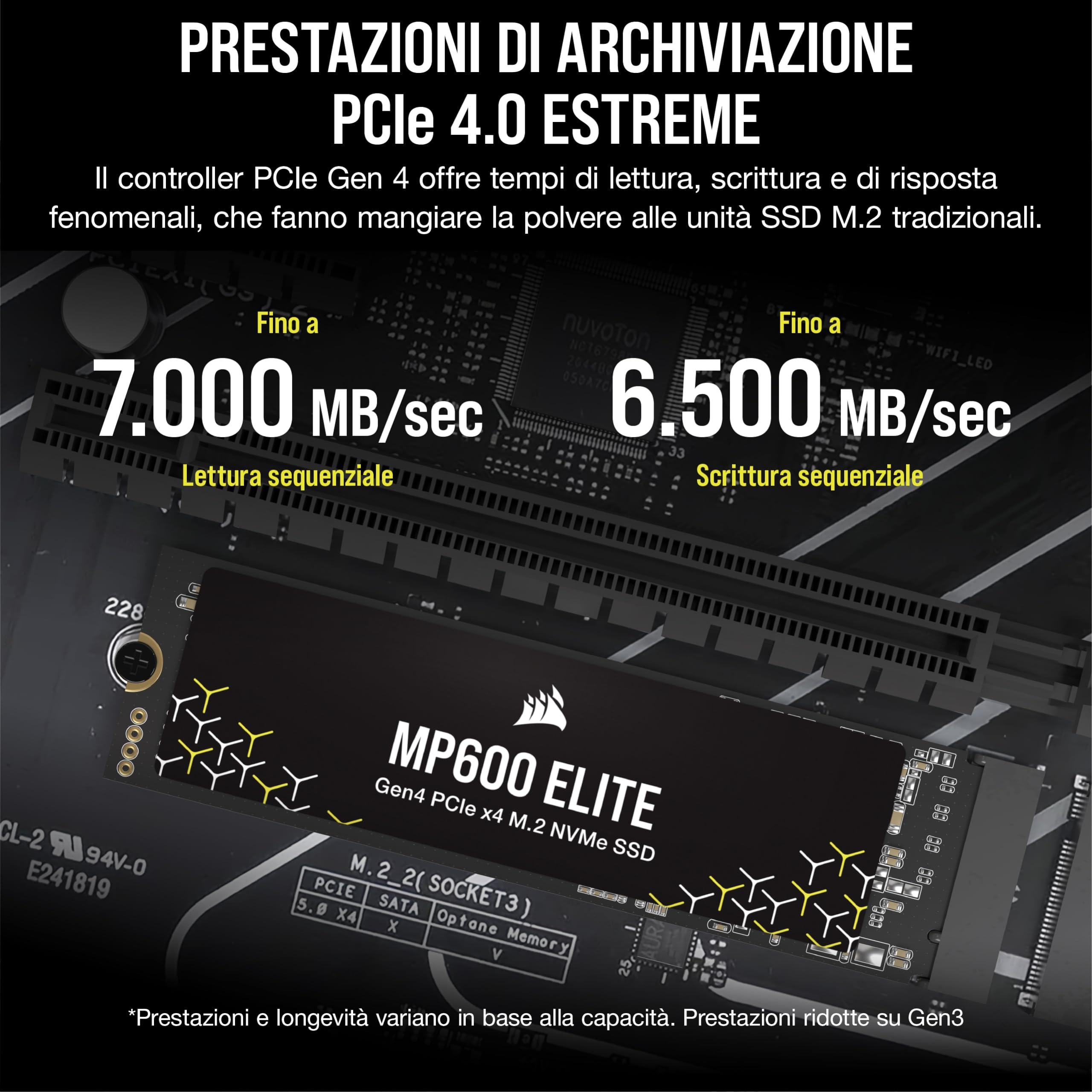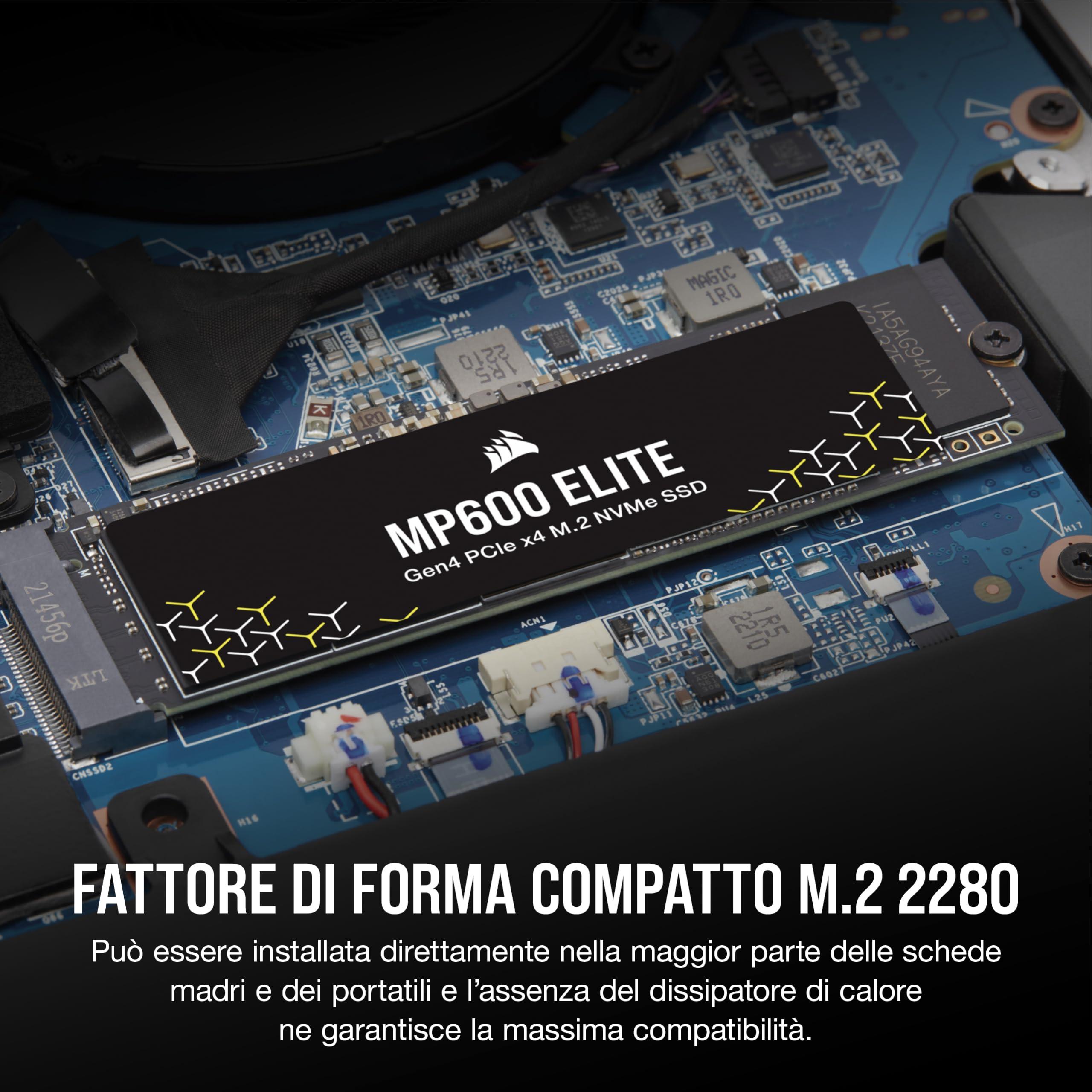 CORSAIR MP600 ELITE 4TB M.2 PCIe Gen4 x4 SSD NVMe – M.2 2280 – Fino a 7.000MB/sec in Lettura Sequenziale – NAND 3D TLC ad Alta Densità – Per Computer Fissi e Portatili – Nero