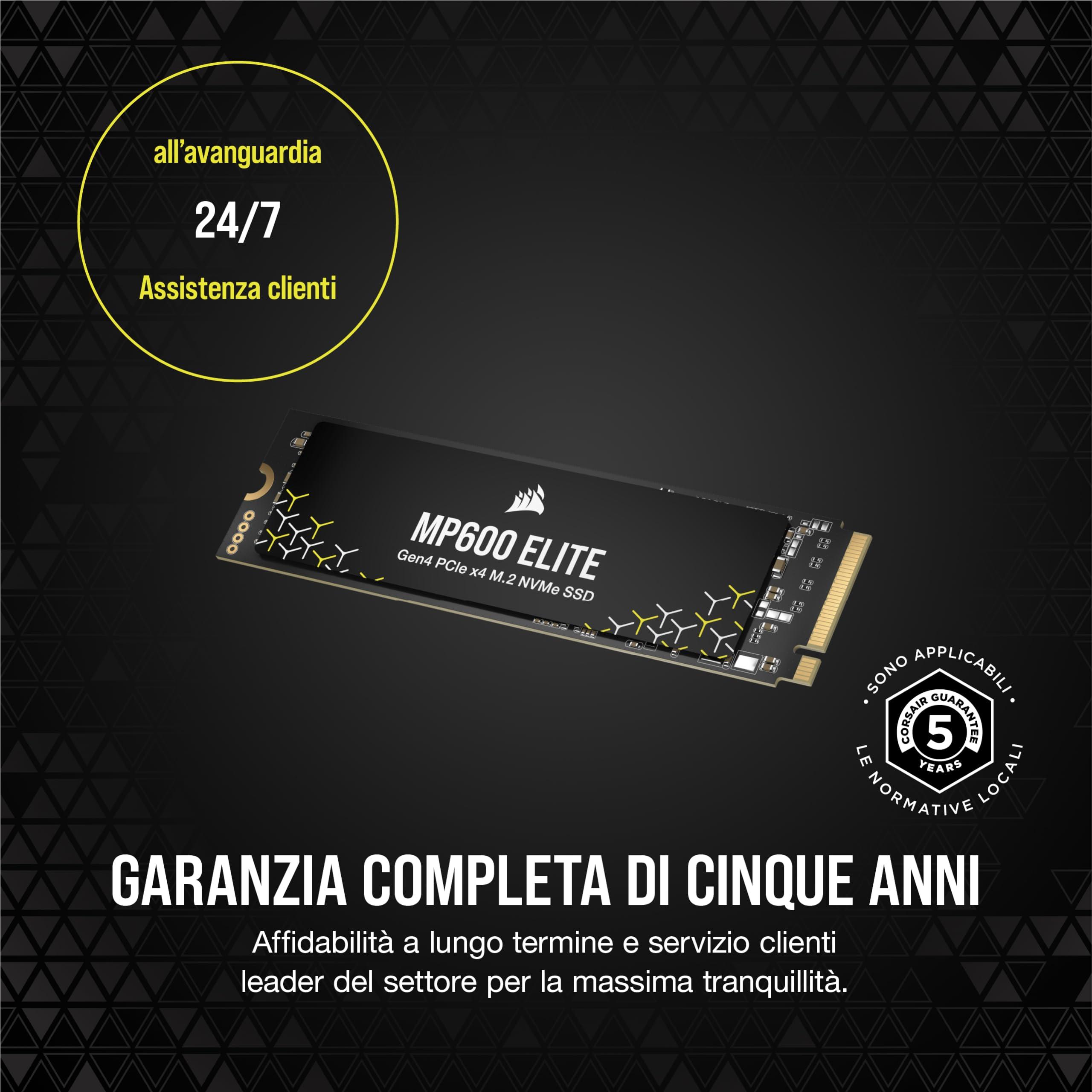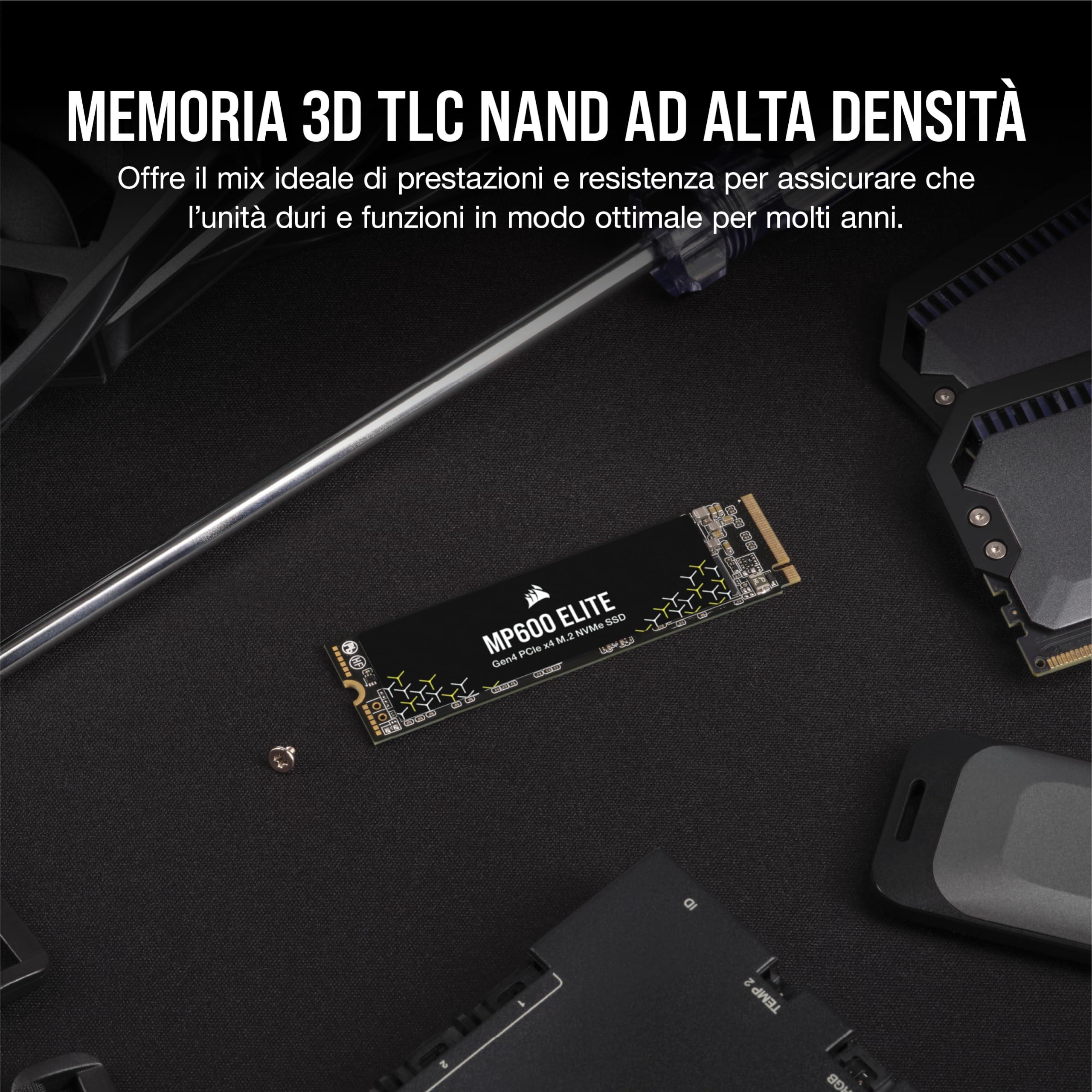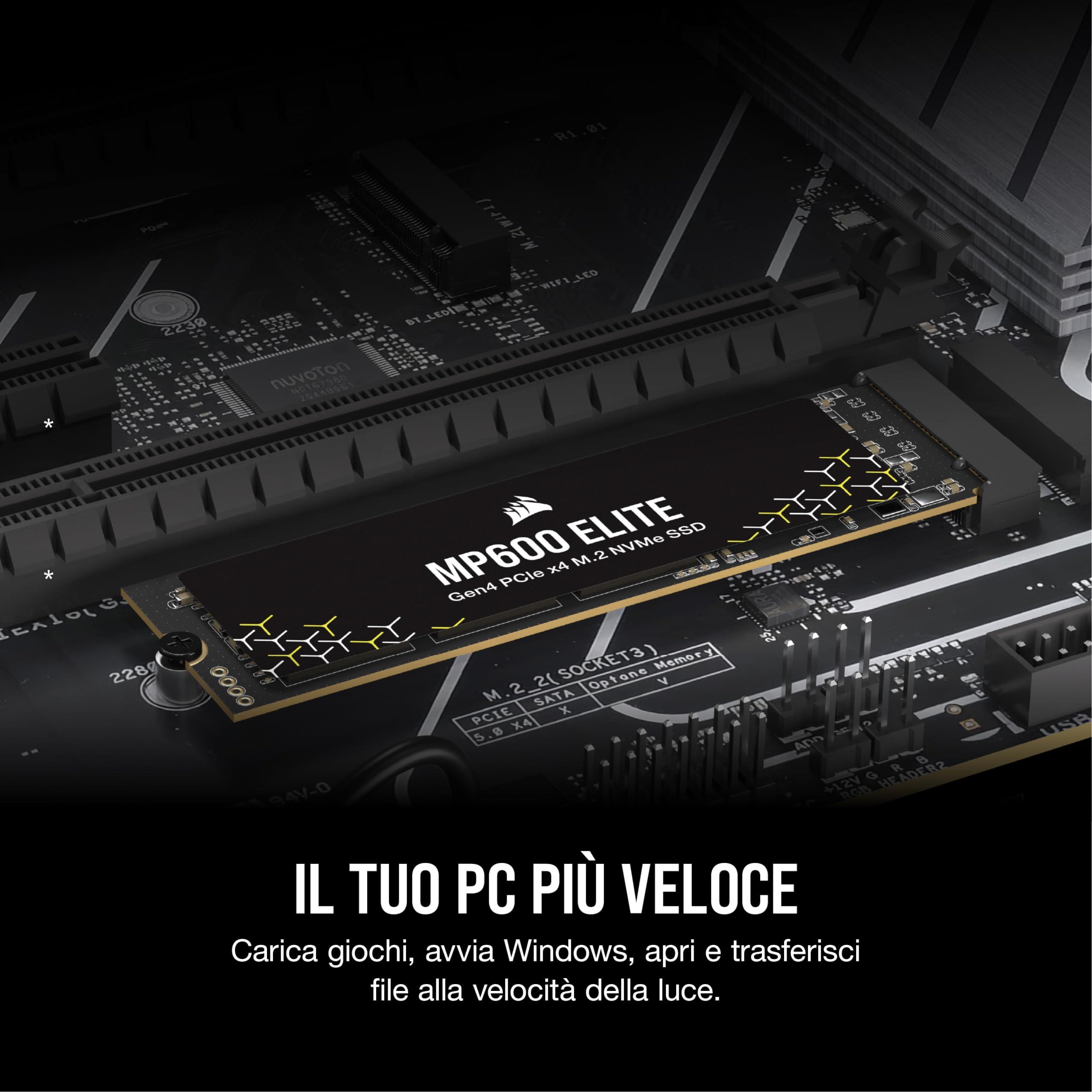 CORSAIR MP600 ELITE 4TB M.2 PCIe Gen4 x4 SSD NVMe – M.2 2280 – Fino a 7.000MB/sec in Lettura Sequenziale – NAND 3D TLC ad Alta Densità – Per Computer Fissi e Portatili – Nero