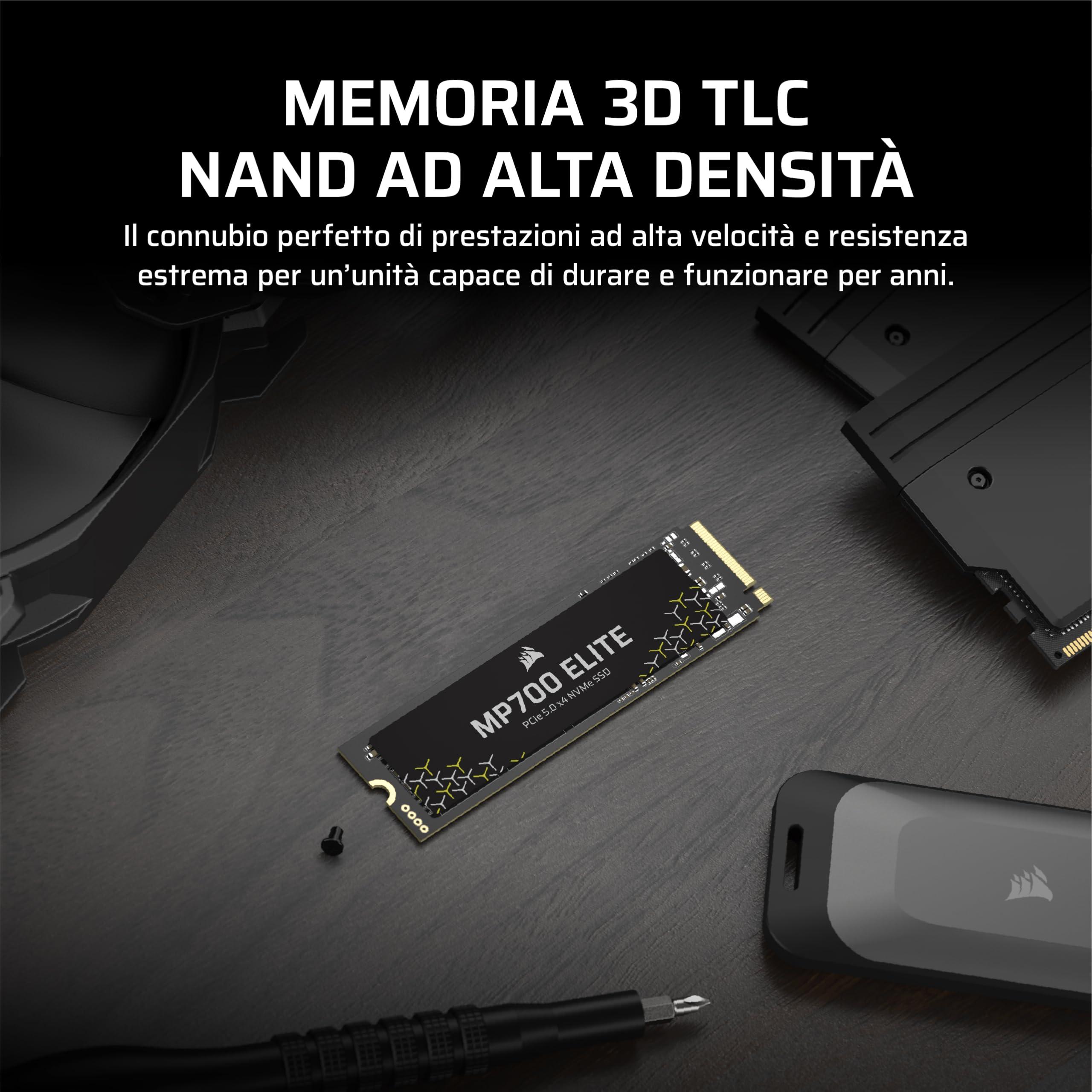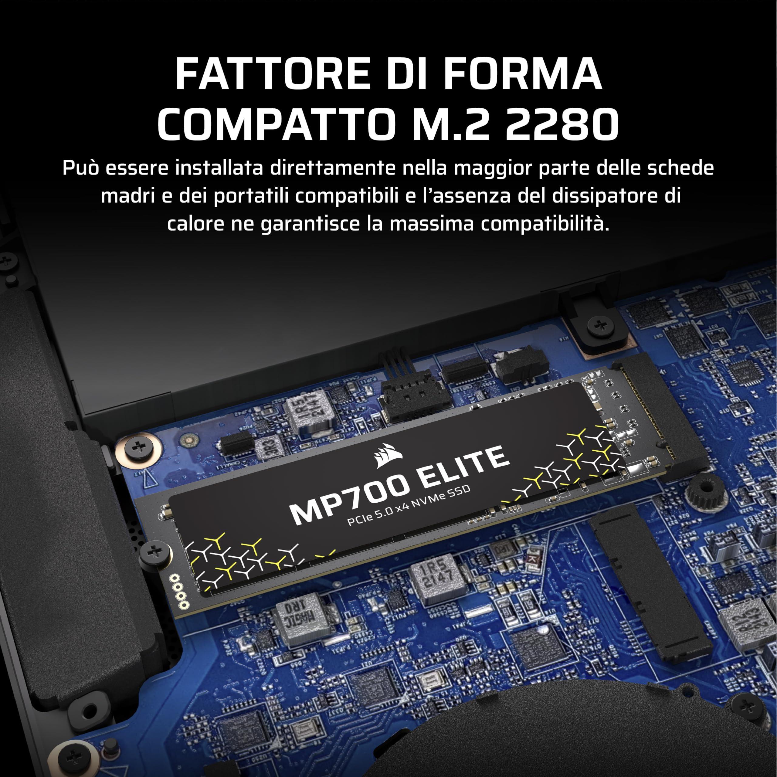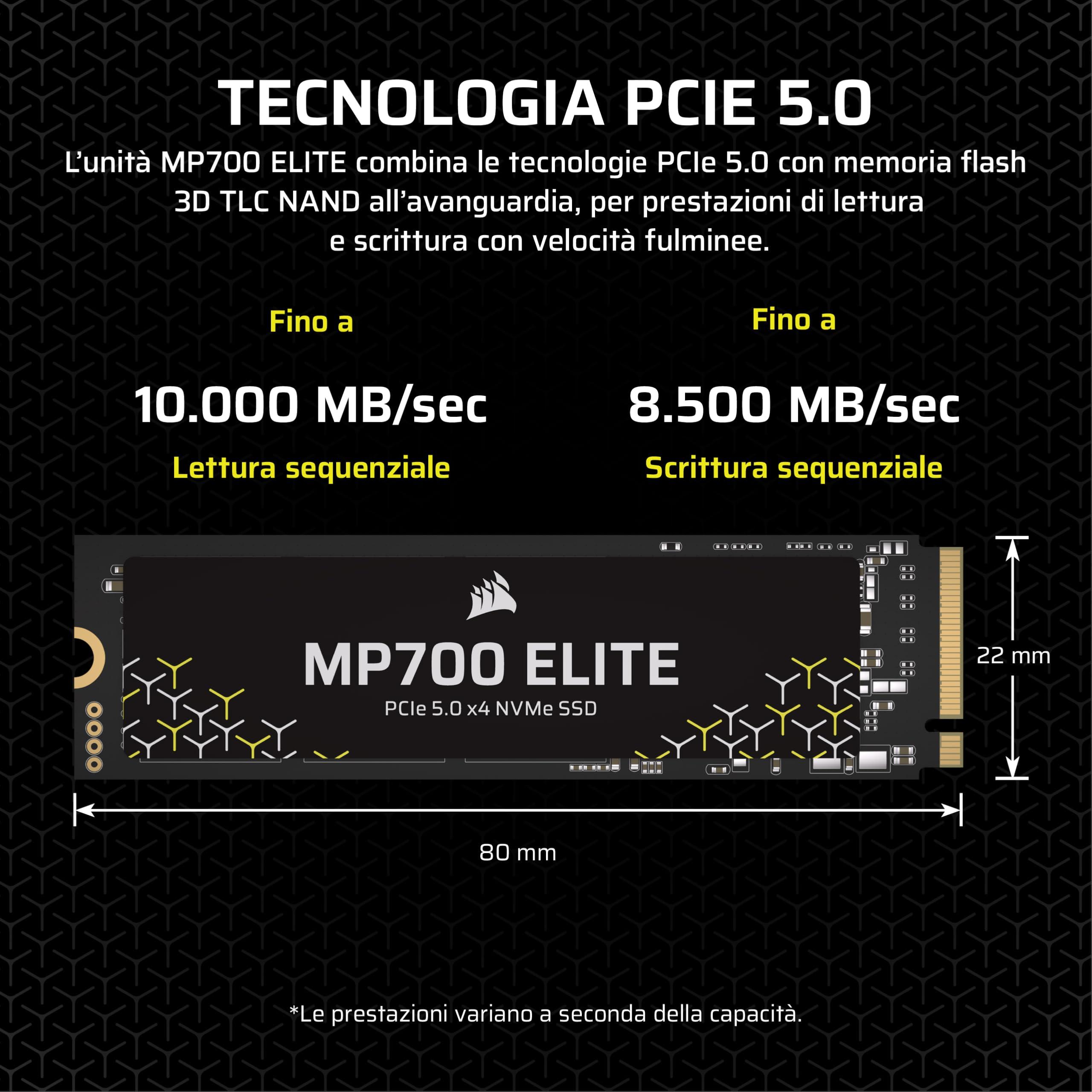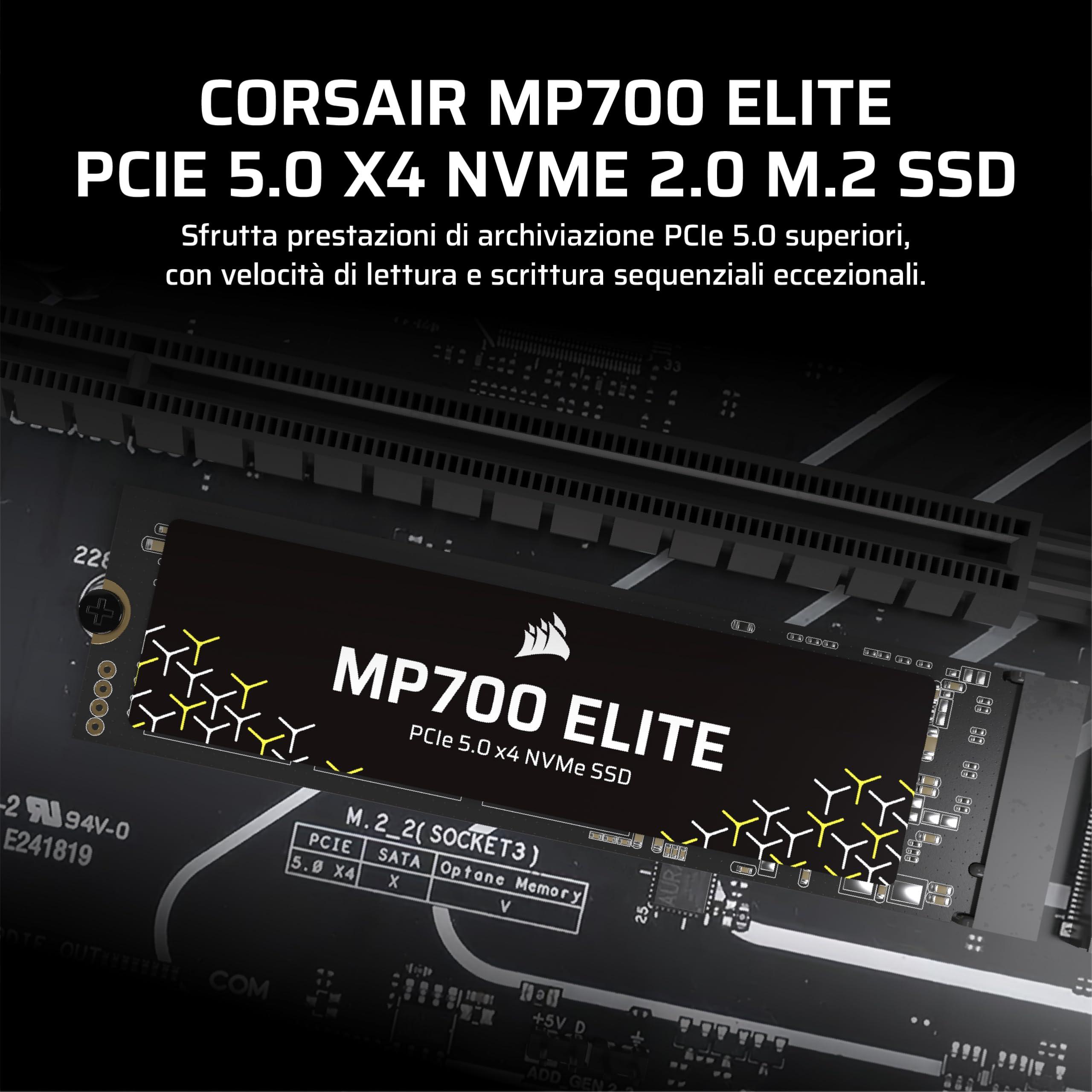 CORSAIR MP700 ELITE 1TB PCIe 5.0 x4 NVMe M.2 SSD – Fino a 10,000MB/sec – Alta Densità 3D TLC NAND – M.2 2280 - Compatibile con DirectStorage – Nero