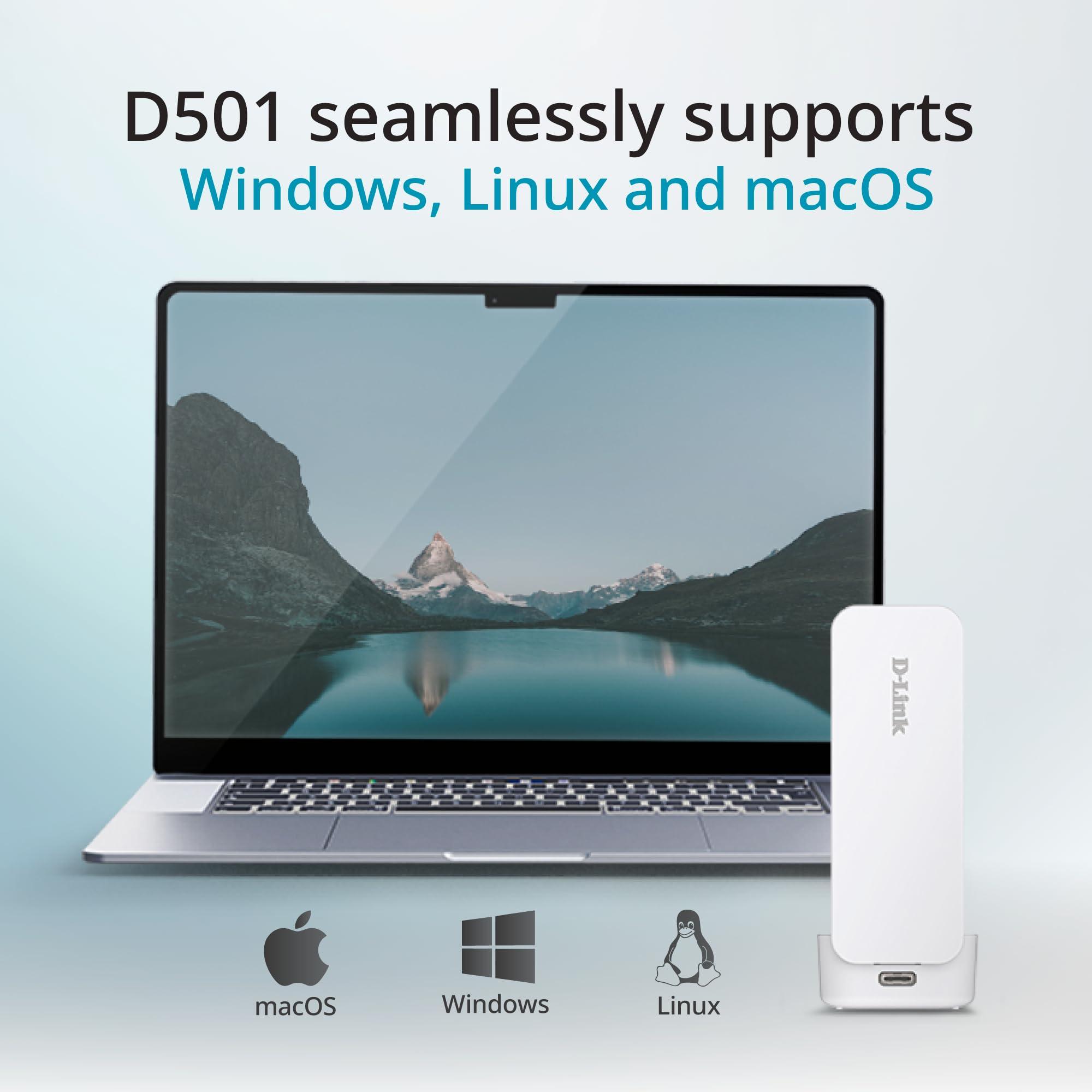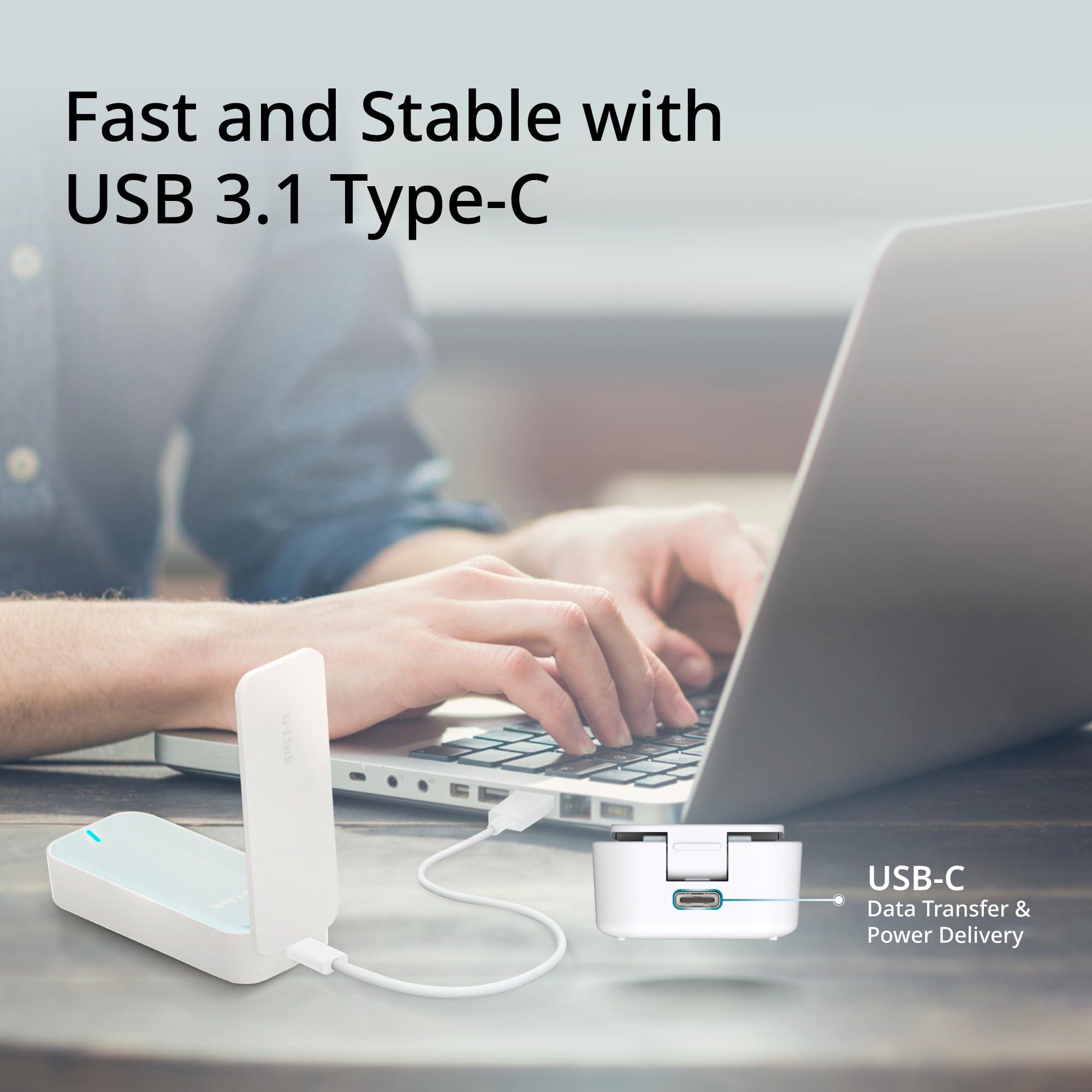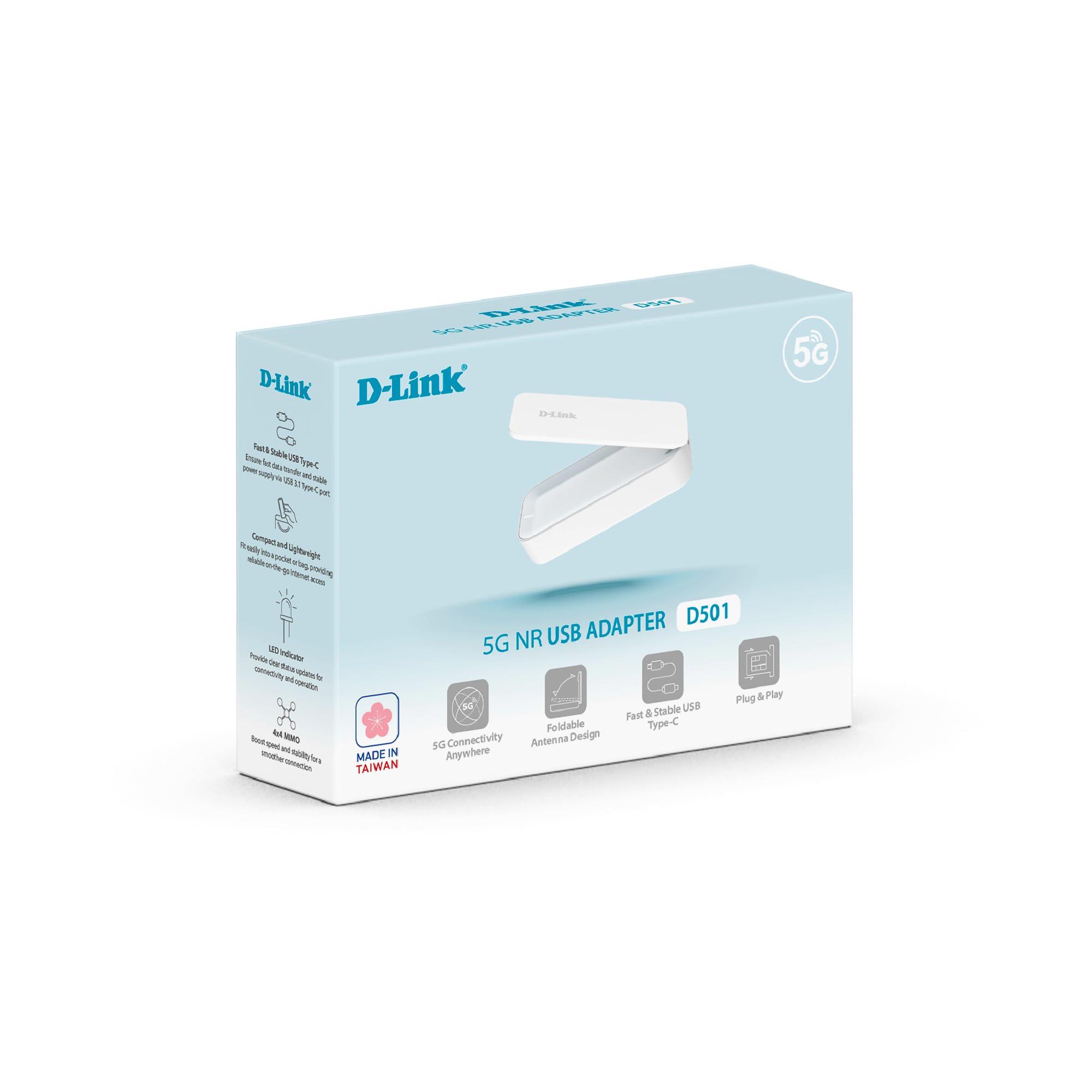 D-Link D501 Adattatore USB 5G NR – Internet mobile 5G/4G LTE ad alta velocità, Plug & Play, USB-C, Antenna pieghevole, Nano SIM, Windows/macOS/Linux