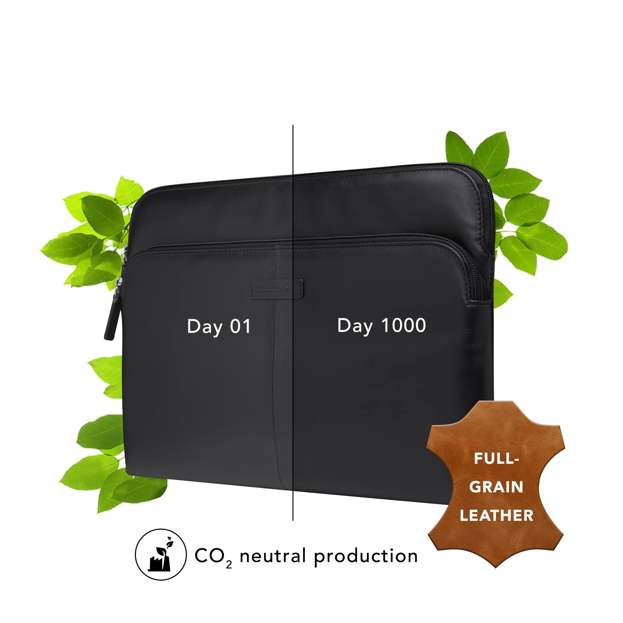 dbramante1928 Pro+ Borsa a Tracolla Donna e Uomo Messenger - Borsa Pelle Pieno Fiore - Borsa Pelle adatta per Laptop 14" Black (2nd Gen)