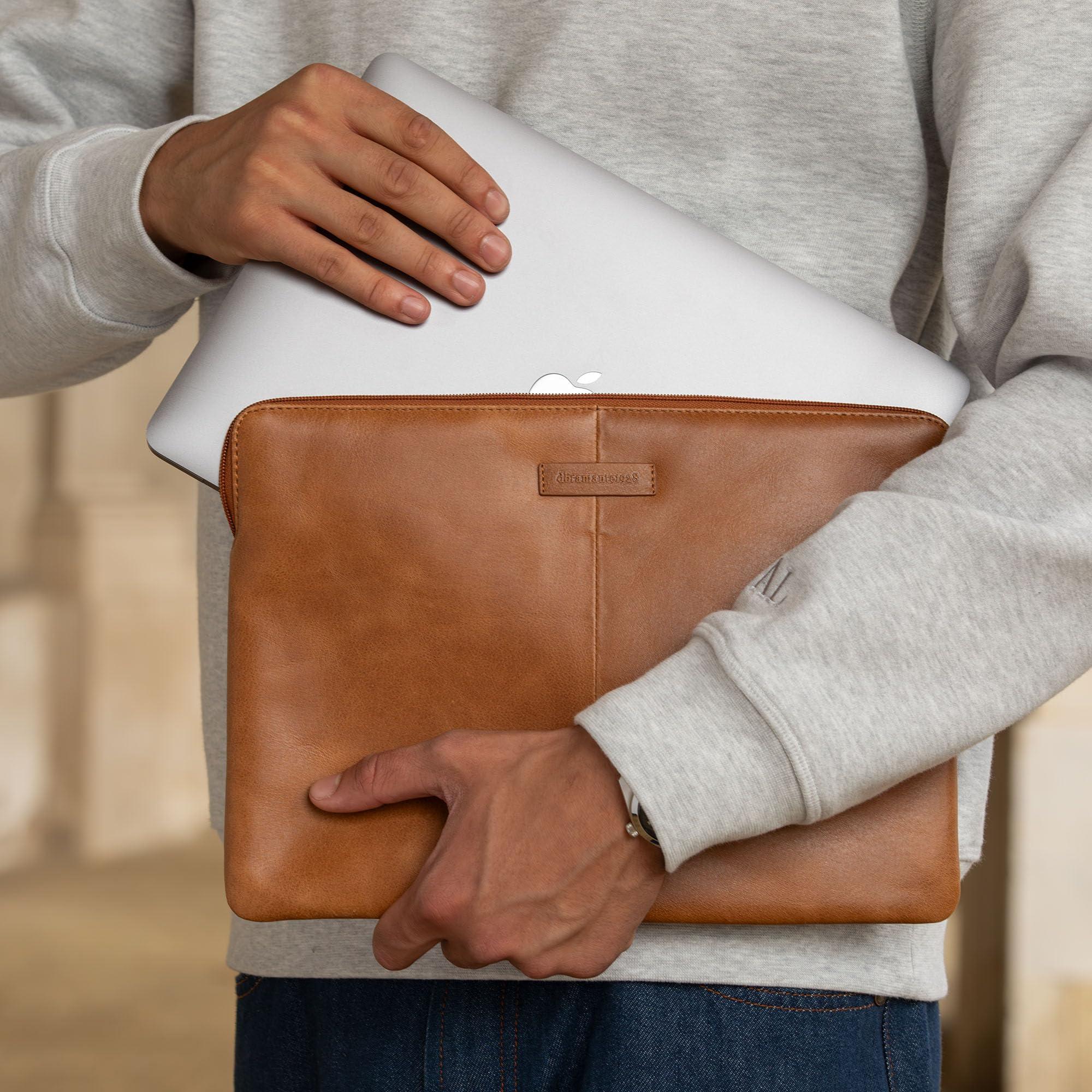 dbramante1928 Pro- MB Pro (2020)/Air(2020) 13" - Borsa a Tracolla Donna e Uomo Messenger - Borsa Pelle Pieno Fiore - Borsa Pelle adatta per Laptop 13" Tan (2nd Gen)