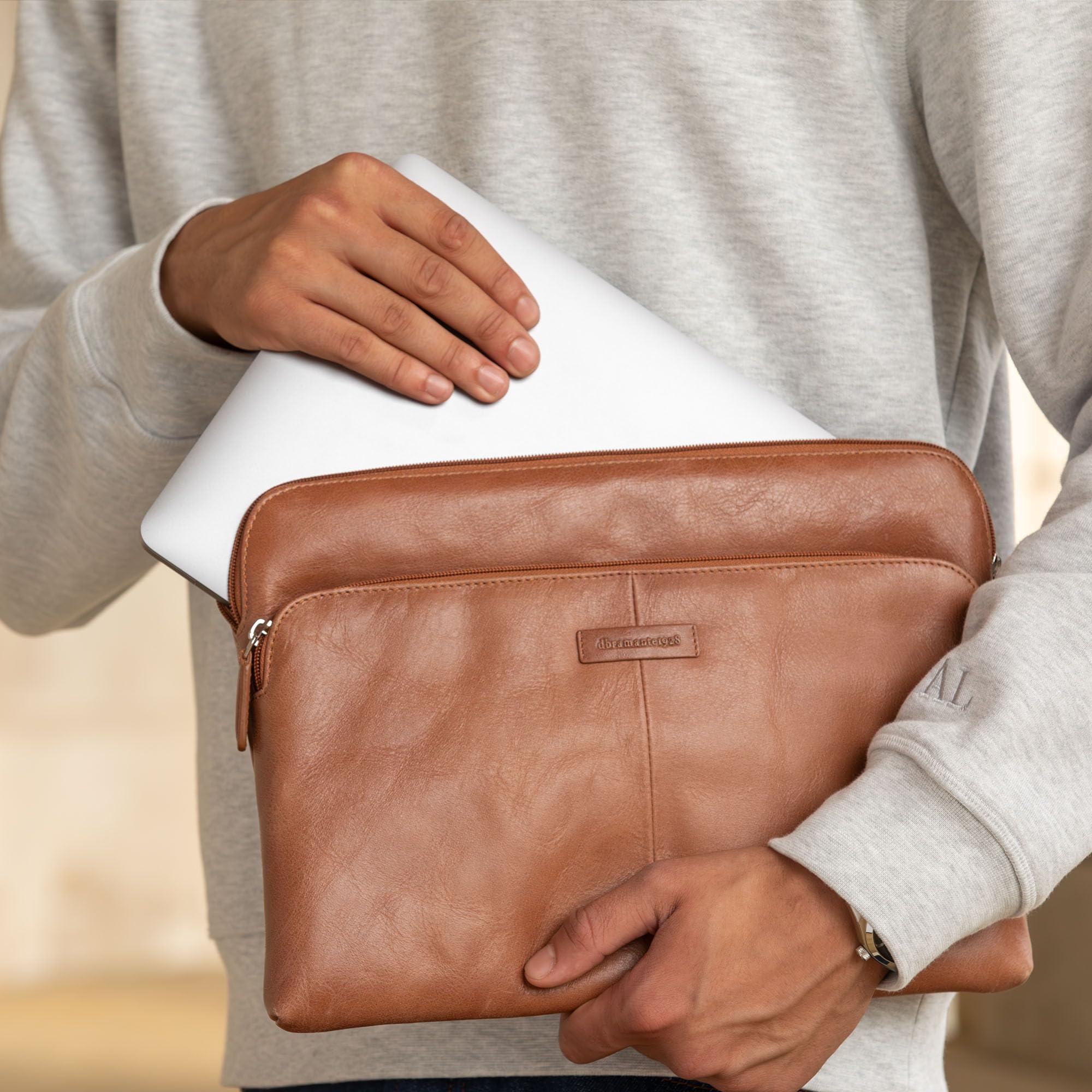 dbramante1928 Skagen Pro+ Borsa a Tracolla Donna e Uomo Messenger - Borsa Pelle Pieno Fiore - Borsa Pelle adatta per Laptop 14" Tan (2nd Gen)